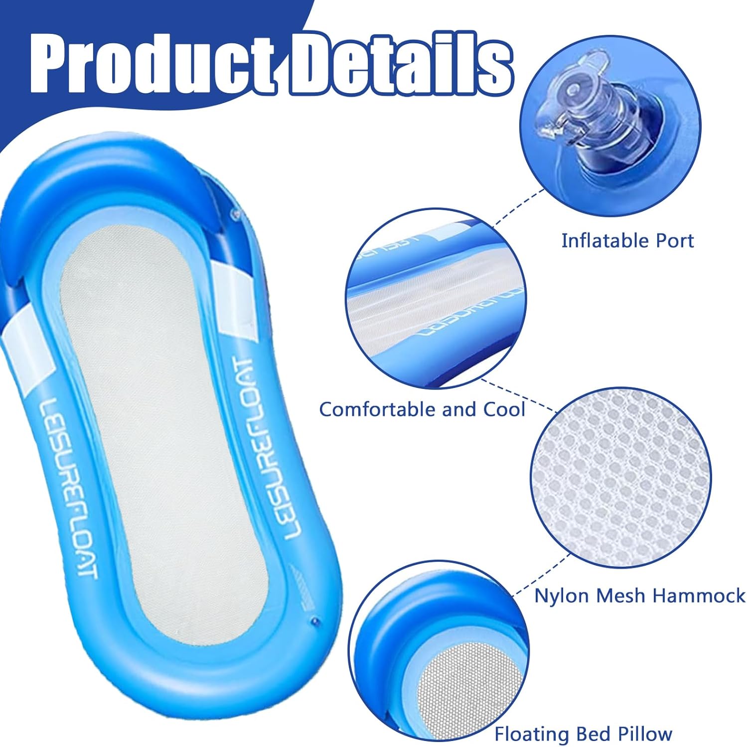 Facile da trasportare: dimensioni da gonfiato 78 x 150 cm, capacità di carico 80 kg; Il materiale plastico in PVC rende la poltrona reclinabile robusta e durevole, può essere appoggiata e piegata quando non viene utilizzata, è facile da trasportare. DESIGN INNOVATIVO DELLA PISCINA D'ARIA: L'amaca morbida e confortevole è realizzata in materiale a rete con un cuscino gonfiabile e la superficie di appoggio in rete ti consente di galleggiare comodamente come su un'amaca mentre ti godi la freschezza dell'acqua poco profonda. COMODO DA USARE: questo galleggiante per piscina abbronzante ha una morbida rete interna e due tubi esterni gonfiabili per mantenerti stabile ed equilibrato sull'acqua. Puoi rilassarti e prendere il sole senza preoccuparti di cadute o rischi per la sicurezza. UTILIZZO FLESSIBILE: Che tu voglia rilassarti su un'amaca sull'acqua, prendere il sole su una zattera in piscina o sguazzare in una piscina, i nostri lettini prendisole sono progettati per soddisfare le tue diverse esigenze. Una volta che inizierai a nuotare su questo comodo lettino galleggiante, la tua estate diventerà molto più rilassante e divertente! Porterà più sorpresa e gioia alla tua vita estiva!
