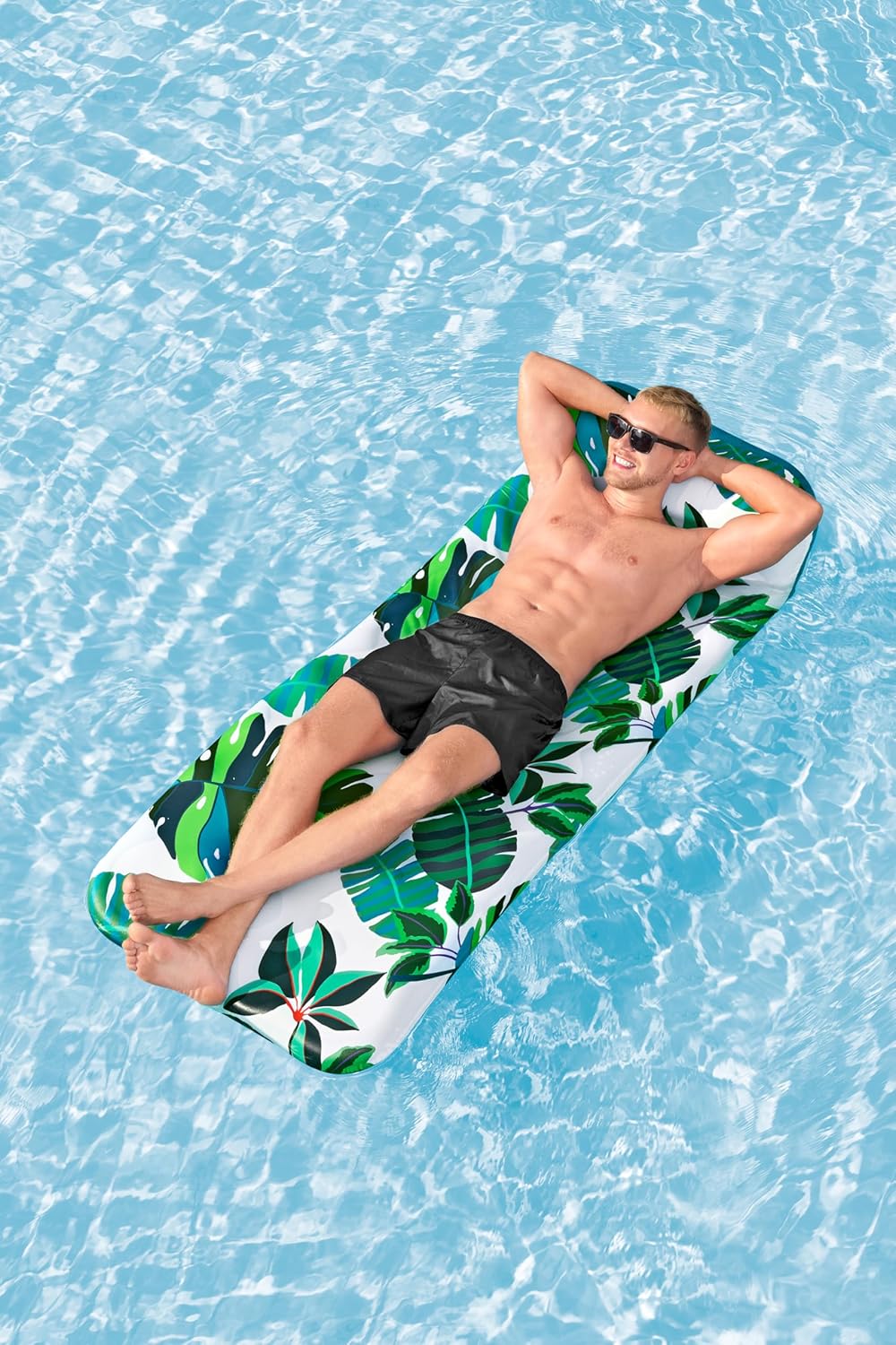 Dimensioni da gonfiato 171 x 65 x 25,5 cm, dimensione da sgonfio: 183 x 73 cm Realizzato in resistente PVC 2 camere d'aria, valvole a rilascio rapido Rivestimento in tessuto rimovibile e lavabile con protezione UV, cuscino per un maggiore comfort, passaggi consentono un raffreddamento naturale Contenuto: 1 salvagente, toppa di riparazione