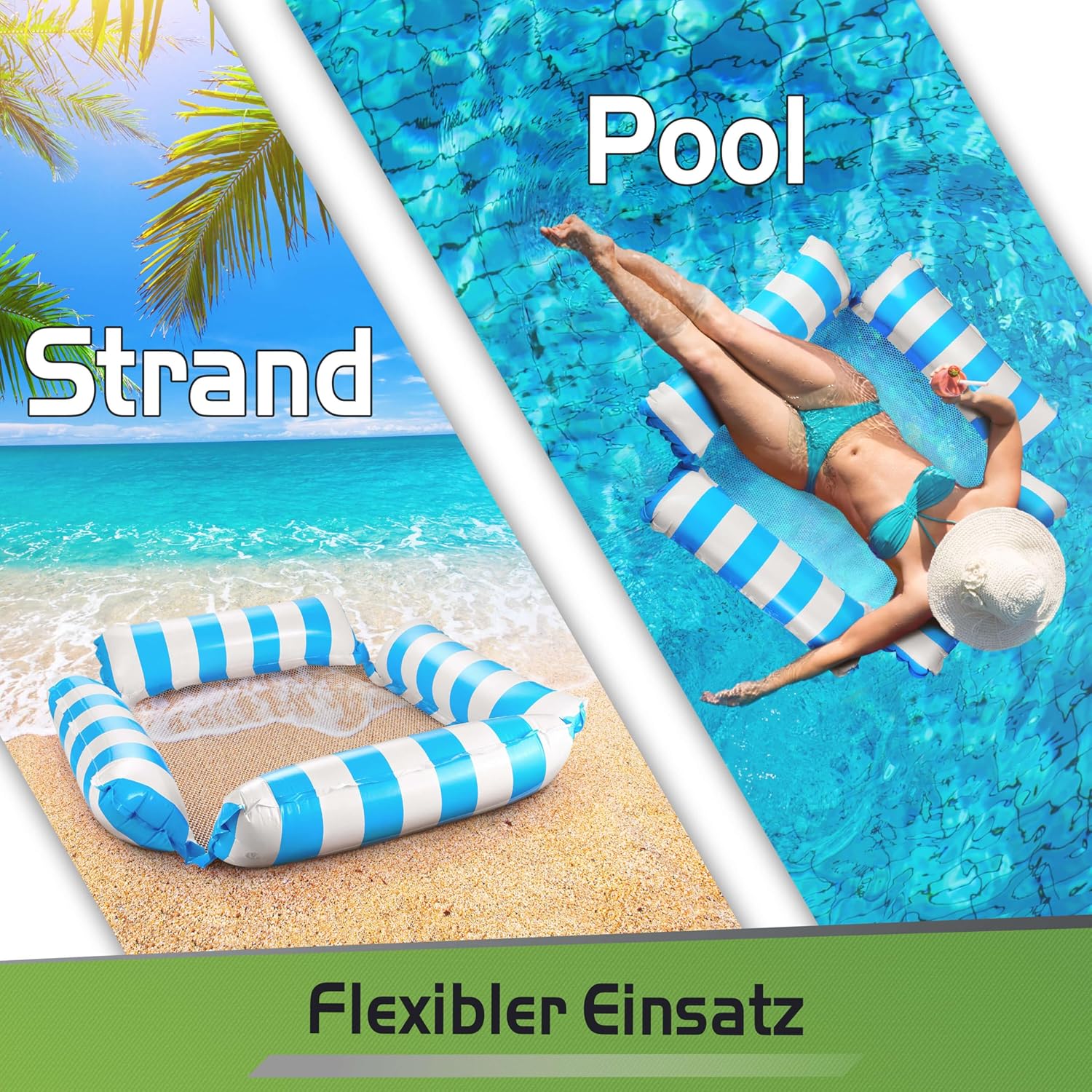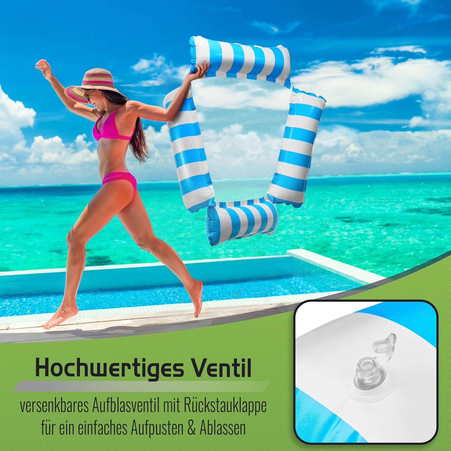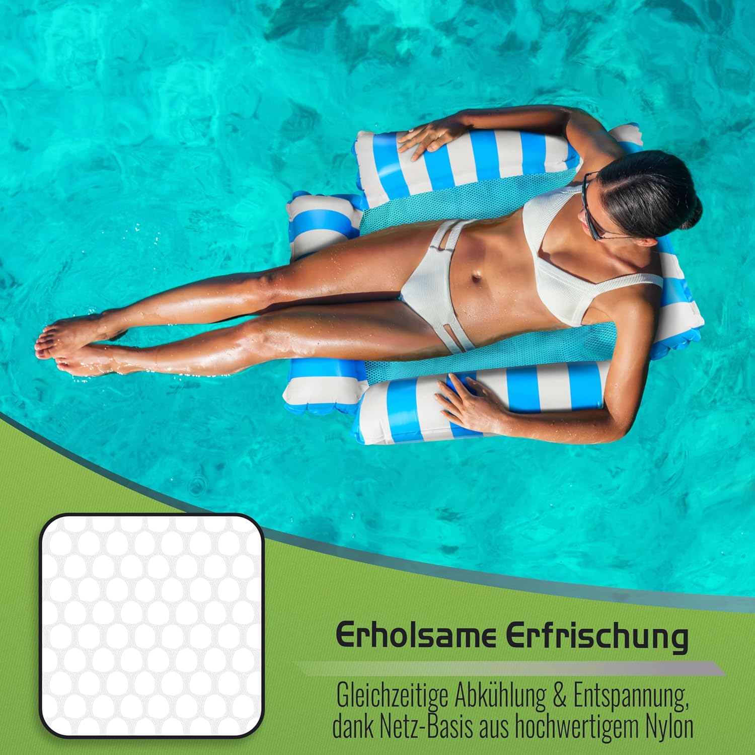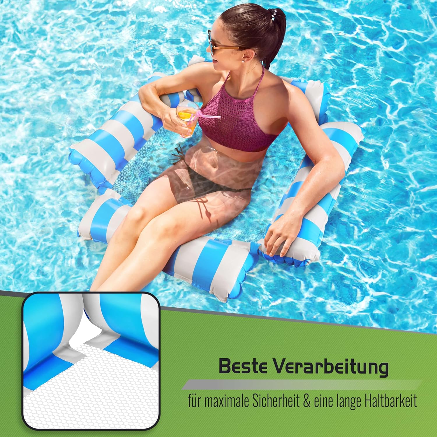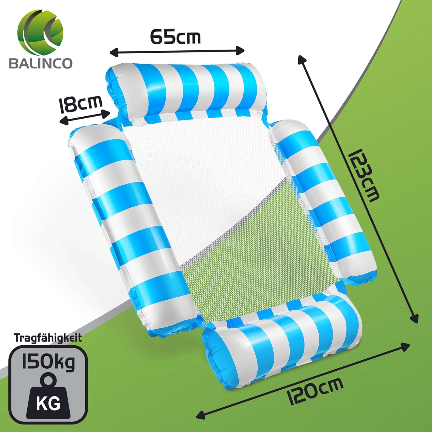 Puro relax: accomodatevi e lasciatevi trasportare dal dolce ondeggiare dell'acqua. Con il materasso gonfiabile ad acqua Balinco proverai una nuova sensazione di leggerezza. Le quattro camere d'aria migliorano la stabilità e la distribuzione del peso, garantendo un comfort ancora maggiore. La forma ergonomica sostiene la testa, le braccia e le gambe in modo ottimale, in modo da adottare automaticamente una posizione sdraiata naturale e rilassata. Questa combinazione crea la base ottimale per un relax assoluto. Versatile: la sedia galleggiante Balinco convince con il suo innovativo design 3 in 1. Ti offre la possibilità di sdraiarti comodamente, sederti o usarlo come un pratico salvagente. Ideale per momenti di relax in acqua quando hai bisogno di una breve pausa. Divertimento acquatico per grandi e piccini: che si tratti di rilassarsi, giocare o sfogarsi in acqua, la poltrona relax è la compagna ideale per ore di divertimento per tutta la famiglia. Con la sua superficie generosa e la comoda struttura a rete, offre spazio e comfort sufficienti per persone di diverse dimensioni. Leggera e compatta: l'amaca ad acqua Balinco è poco ingombrante e quindi ideale per viaggiare. Che sia nella propria piscina, al lago, in piscina o anche in vacanza, si adatta a qualsiasi borsa e si gonfia velocemente e facilmente. Alta qualità e robustezza: il lettino ad acqua convince grazie alle sue proprietà del materiale di alta qualità e allo stesso tempo robuste. Ti offre un piacevole comfort e mantiene la sua forma anche con un uso intensivo grazie alla sua capacità di carico massima di 150 kg. Ecco perché il nostro materasso gonfiabile per piscina offre una combinazione ideale di comfort, stabilità e durata.