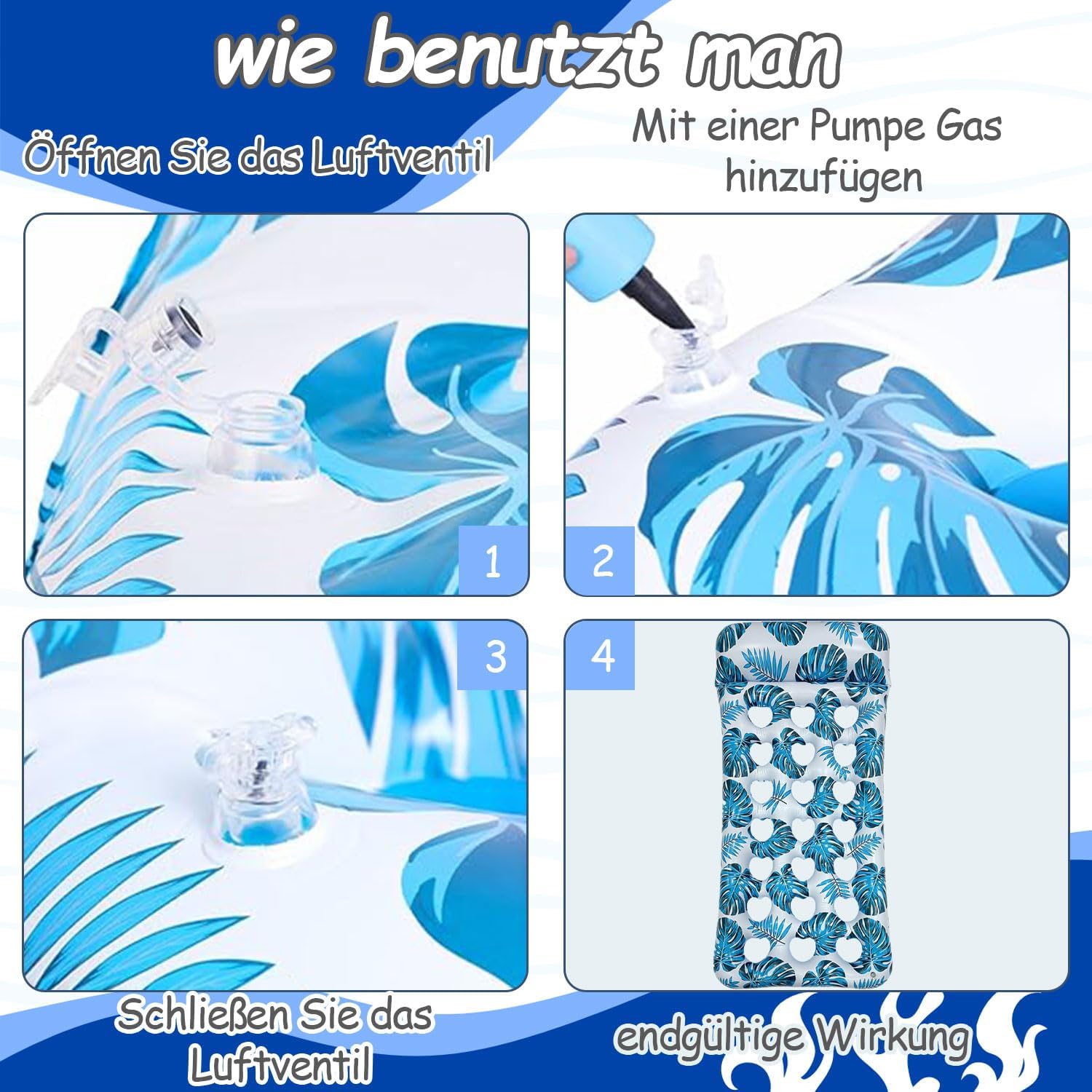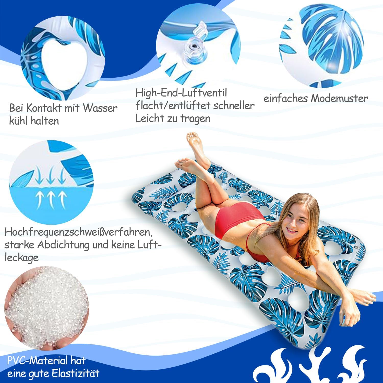 🌊 【Materasso per piscina galleggiante】 Il nostro materasso gonfiabile per piscina con un comodo poggiatesta ergonomico. I fori di raffreddamento sono a stretto contatto con l'acqua per mantenerti fresco. Il design simmetrico aiuta a mantenere l'equilibrio. 🌊 【Materiale sicuro ed ecologico】 Questa amaca gonfiabile portatile è realizzata in materiale vinilico di alta qualità, sicuro, ecologico, non tossico e non danneggerà la pelle. Fornisce supporto e comfort. Può essere utilizzato ripetutamente per lungo tempo e non si deforma facilmente. 🌊 【Grande tappetino da bagno gonfiabile】 Questo anello gonfiabile per piscina per adulti misura 180 x 85 x 40 cm, adatto alla maggior parte delle persone. Puoi prendere il sole comodamente in piscina e il suo design unico ti mantiene fresco e più comodo delle normali sedie a sdraio. 🌊【Elevata capacità di carico】L'amaca da nuoto ha un supporto eccellente e la migliore qualità, garantendo una buona esperienza in acqua. Il design a doppio foro d'aria del giocattolo gonfiabile per il nuoto significa che non devi preoccuparti di perdite d'aria. 🌊 【Divertente giocattolo da piscina, regalo estivo perfetto】 L'amaca gonfiabile per piscina 4 in 1 è perfetta per lettini da piscina, piscine sulla spiaggia, piscine solari, piscine sul lago, zattere oceaniche, adatta per feste in piscina all'aperto, spiagge, laghi, oceani e altro ancora. È anche un ottimo regalo per la famiglia e gli amici, puoi prendere il sole e rilassarti con il tuo bambino al resort sulla spiaggia.