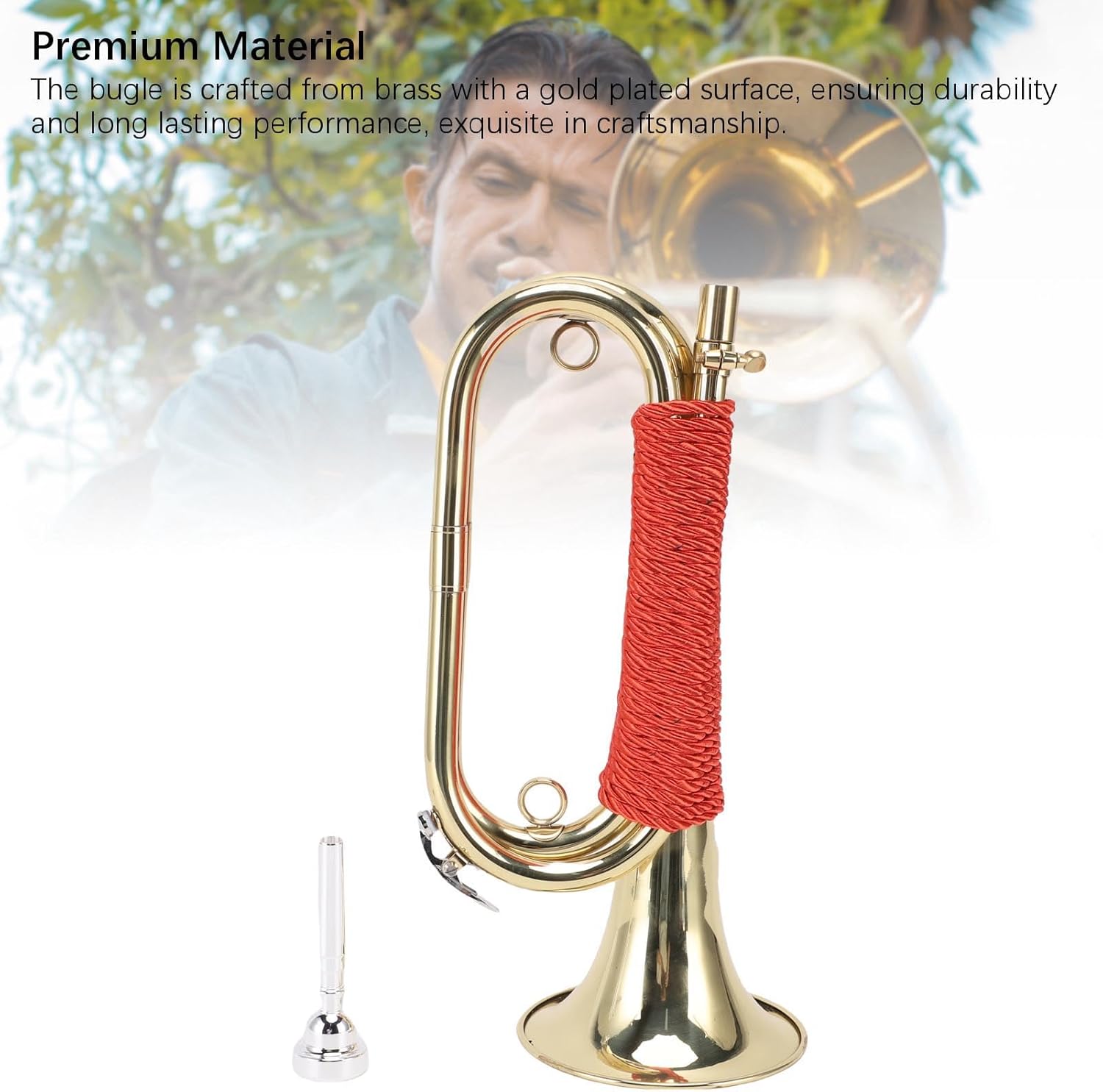 [Materiale premium] Realizzato in ottone con superficie oro placcata per durata e squisita artigianato. [Bright Sound] fornisce un suono chiaro e luminoso, ideale per migliorare qualsiasi ensemble musicale. [Design elegante] presenta un aspetto unico e una squisita artigianato per la gioia sia visiva che uditiva. [Applicazioni versatili] Adatto per campi estivi, guardie d'onore, band scolastiche e altro ancora. [Comodo stoccaggio] viene fornito con un sacco di stoccaggio per un facile trasporto, permettendoti di portare la tua bugle ovunque.
