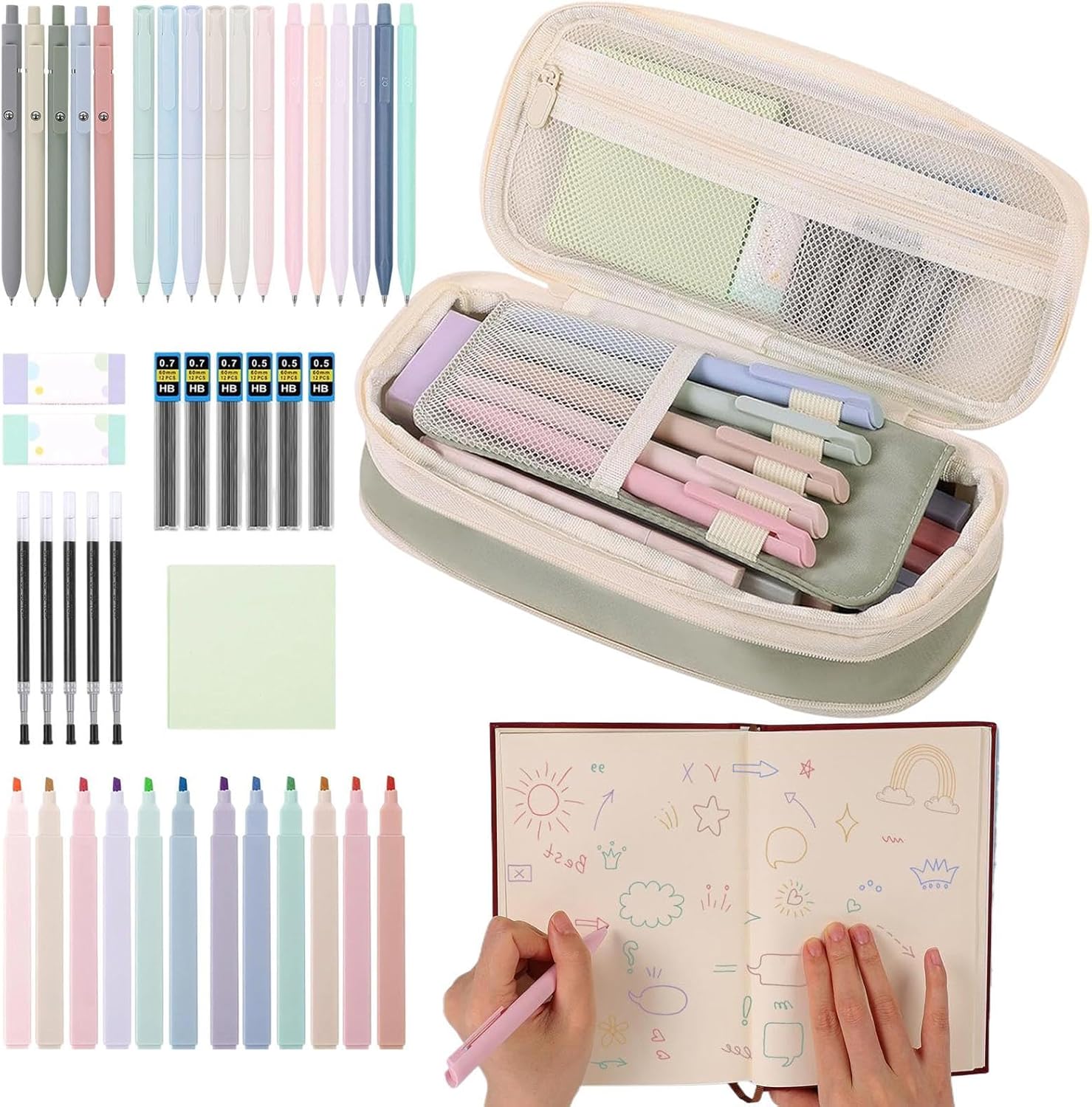 Organizzazione scrivania ottimizzata: Progettato con layout di archiviazione a livelli e scomparti con tasche in rete, questo portapenne completo garantisce il mantenimento di spazio di studio ordinato ospitando vari oggetti, creando una soluzione integrata che supporta la produttività durante esami o progetti creativi Strumenti di scrittura ricaricabili: Grazie ai componenti ricaricabili come mine per matite e refill per penne a , School Stuff for Girls garantisce una lunga durata, ideale per le attività in classe e i compiti senza interruzioni o costi aggiuntivi. Strumenti Vividi: I materiali scolastici aesthetic uniscono inchiostro gel anti sbavature ed evidenziatori brillanti per produrre appunti leggibili, aiutando gli studenti a organizzare pensieri in modo efficiente durante studio o discussioni con design accattivanti Regalo per studenti: L'astuccio estetico funge da set regalo per il ritorno a scuola, con design colorati che ispirano motivazione accademica, offrendo una selezione di cancelleria pratica per studenti che necessitano incoraggiamento durante il percorso di apprendimento con stile e funzionalità Organizzazione Studio Efficiente: Questo set di cancelleria estetico da 44 pezzi include strumenti per scrivere ed evidenziare ad per organizzare appunti, garantendo accesso immediato per massima efficienza e consentendo agli studenti di ottimizzare il flusso di lavoro mantenendo un ambiente di studio ordinato senza