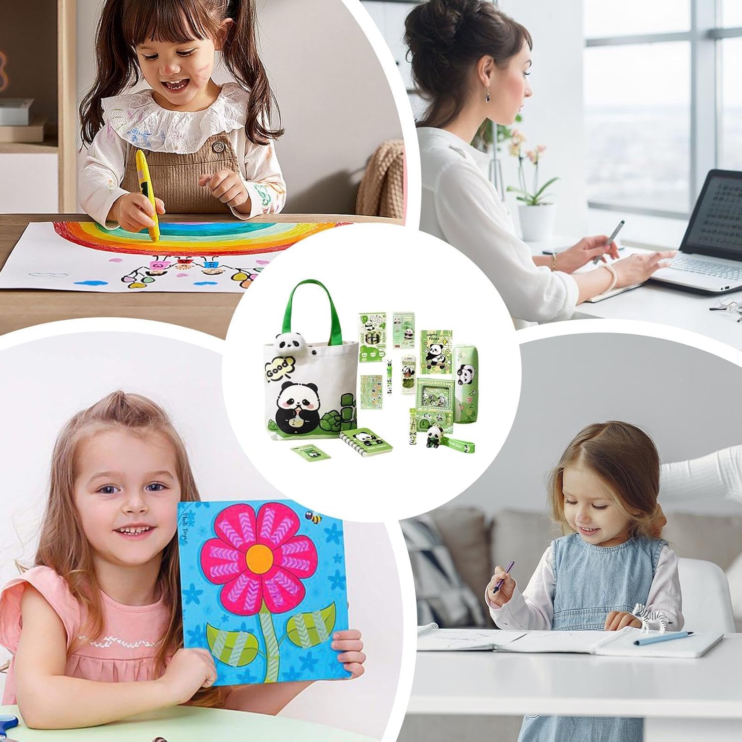 Incremento della Motivazione: I teneri pattern animali incoraggiano lo sviluppo di abitudini di studio rendendo l'organizzazione divertente, stimolando contemporaneamente l'interesse per l'apprendimento in utenti di tutte le età attraverso un'esperienza visivamente coinvolgente e piacevole Materiali Resistenti: Caratterizzato da materiali sicuri e delicati al contatto, questo set di cancelleria offre una durabilità di lunga durata resistendo efficacemente all'usura regolare grazie alla sua composizione robusta e affidabile Regalo Meraviglioso: Concentrandosi sulla cura premurosa, questo set di cancelleria porta gioia quotidiana ai bambini e si distingue come opzione pronta per compleanni o eventi, unendo funzionalità e idoneità come regalo in modo seamless Potenzia Capacità Gestionale: Eccellente per bambini di circa 6 anni, il set promuove indipendenza e sviluppo di competenze, con design adatto a mani piccole e si adatta senza sforzo a esigenze mutevoli Combo Completa: Progettato con adorabili motivi di panda, questo set di cancelleria assortito fornisce strumenti di apprendimento piacevoli adatti per attività scolastiche o domestiche, garantendo esperienze coinvolgenti grazie alla sua gamma diversificata di prodotti inclusi