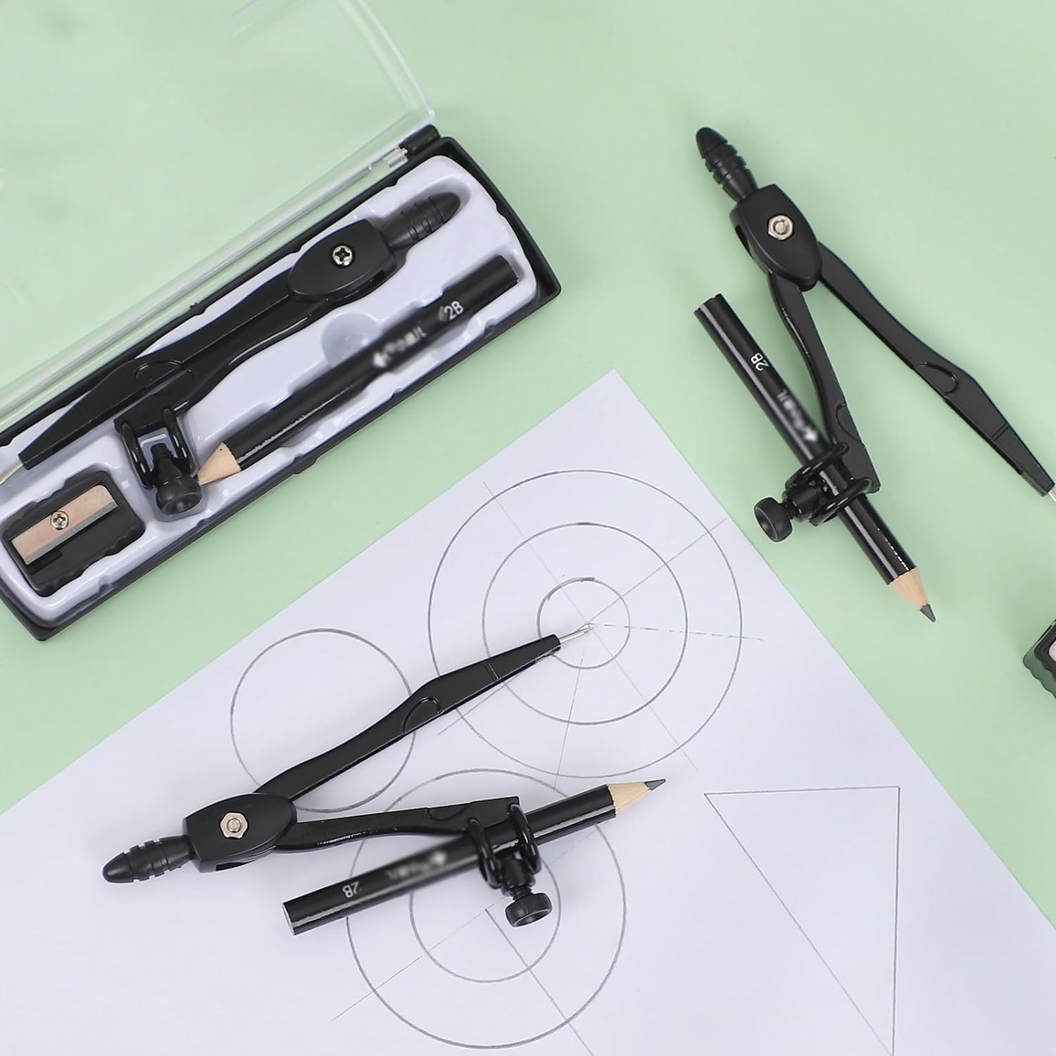 Il compasso matematico è facile da impugnare, con controllo superiore e facile da cambiare il raggio del cerchio e si blocca sempre in posizione per ottenere i cerchi desiderati. Ogni bussola viene fornita con una scatola trasparente, contiene 1 bussola geometrica, 1 matita 2B e 1 temperamatite. Adatto per la lavorazione del legno con geometrie scolastiche, carpenteria, lavorazione dei metalli, lavorazione della pelle, matematica, artigianato fai-da-te fatto a mano, ecc. La bussola matematica è realizzata in metallo, stabile nel funzionamento, durevole e pratica. La testa del compasso dal design ergonomico è comoda da tenere.