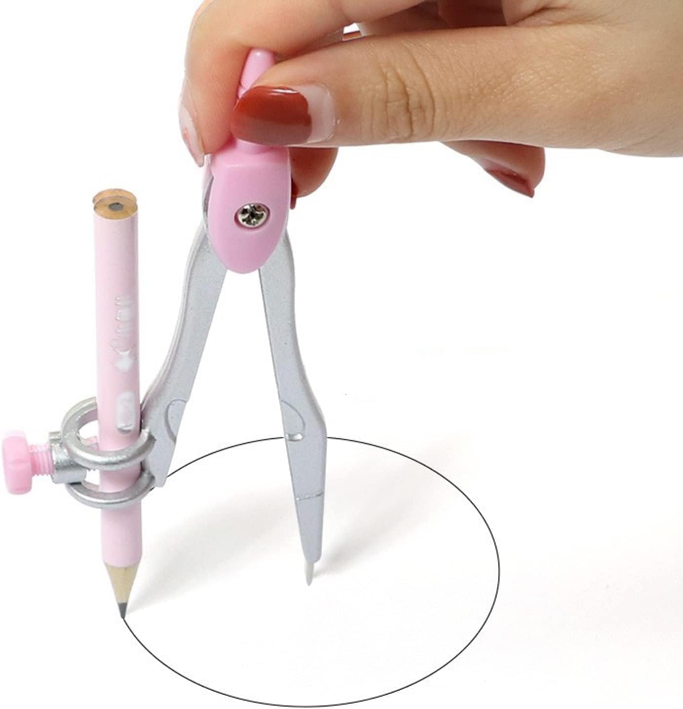Il compasso matematico è facile da impugnare, con controllo superiore e facile da cambiare il raggio del cerchio e si blocca sempre in posizione per ottenere i cerchi desiderati. Puoi facilmente mettere gli strumenti di misura in tasca e lo strumento ti tornerà utile non appena ne avrai bisogno. Il set di kit di geometria da 8 pezzi include: 1 compasso da studio in metallo, 2 triangoli (45° e 30°/60°), 1 righello, 1 goniometro, matita per compasso, temperamatite, gomma, ricarica di mina. Con una scatola portaoggetti in metallo, facile da trasportare e riporre. La testa del compasso dal design ergonomico è comoda da tenere.