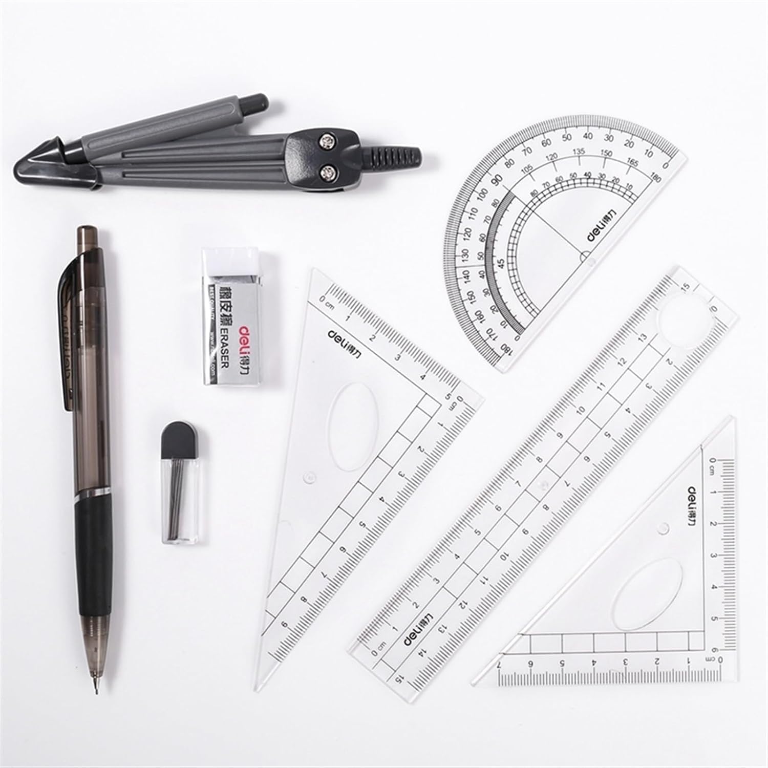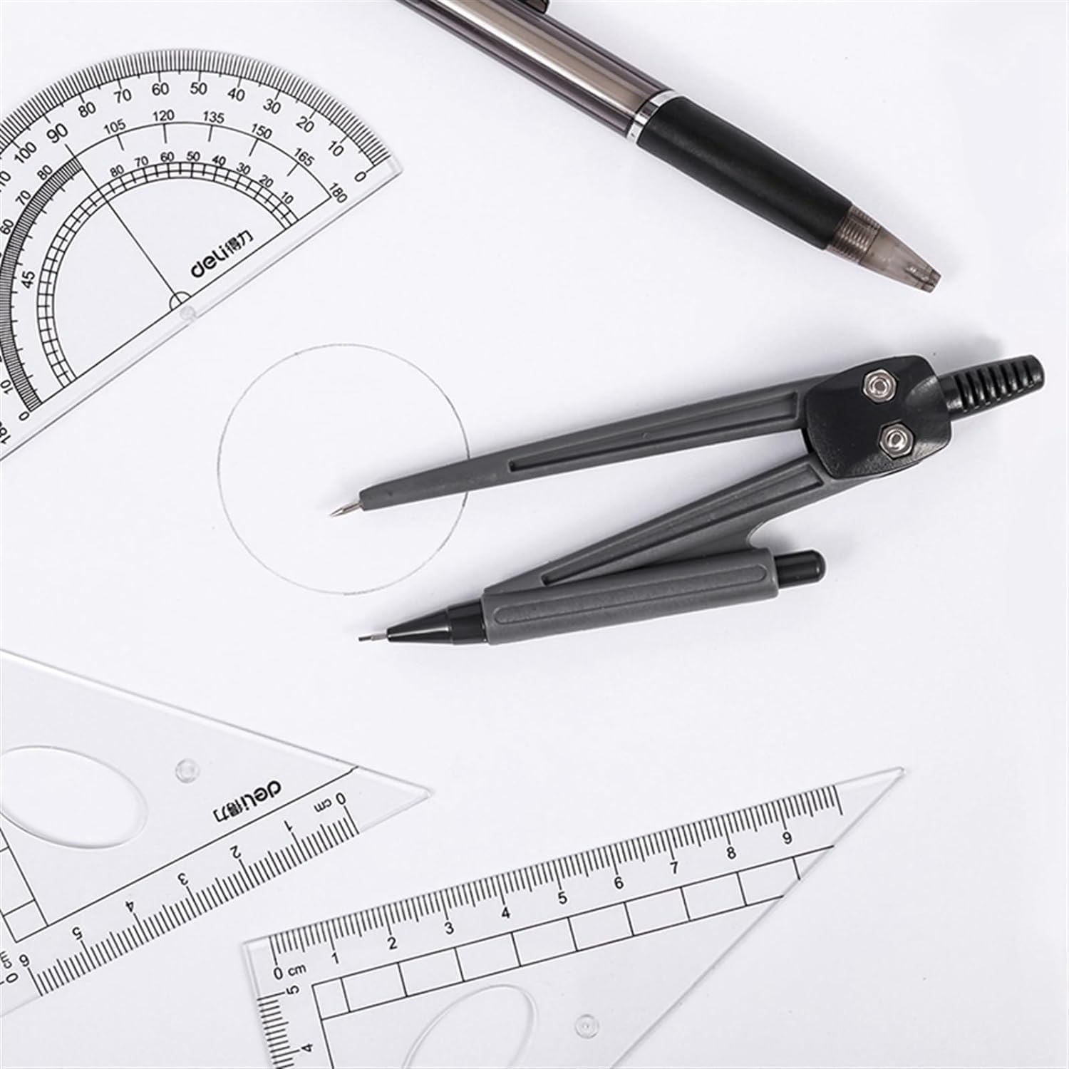 Il compasso matematico è facile da impugnare, con controllo superiore e facile da cambiare il raggio del cerchio e si blocca sempre in posizione per ottenere i cerchi desiderati. Di piccole dimensioni e leggero, facile da trasportare. Cancelleria in una custodia, facile da riporre. Esistono 4 diverse forme di righelli per soddisfare le diverse esigenze. La testa del compasso dal design ergonomico è comoda da tenere.