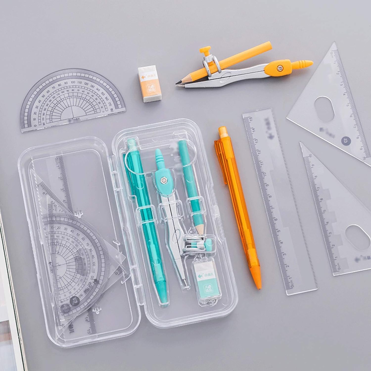 Il compasso matematico è facile da impugnare, con controllo superiore e facile da cambiare il raggio del cerchio e si blocca sempre in posizione per ottenere i cerchi desiderati. 8 kit da disegno includono: 2 righelli triangolari, goniometro, gomma, compasso, portamine, matita, righello, i prodotti sono ampiamente utilizzati. Le bussole di alta qualità sono realizzate in acciaio inossidabile. Nota: le bussole economiche non possono soddisfare i requisiti tecnici. La bussola di precisione dovrebbe avere una funzione di tracciamento. Facile da usare nei disegni, senza sbavature nei fori. La gomma può rimuovere gli errori sulla superficie del disegno. Possono disegnare cerchi da piccoli a grandi per soddisfare i requisiti di progettazione. La testa del compasso dal design ergonomico è comoda da tenere.