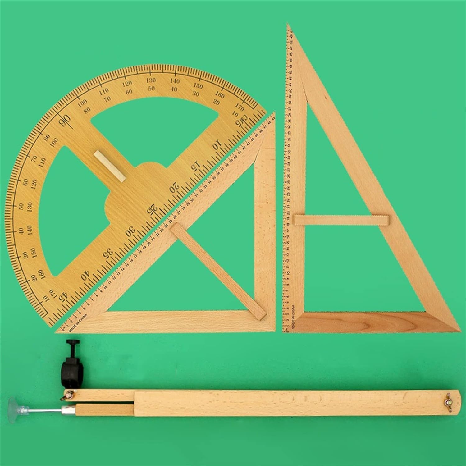 Il compasso matematico è facile da impugnare, con controllo superiore e facile da cambiare il raggio del cerchio e si blocca sempre in posizione per ottenere i cerchi desiderati. Le bussole in faggio sono bussole a doppio uso, che possono essere utilizzate con pennarelli per lavagna o gesso. Giunti mobili in metallo, resistenti all'usura e durevoli. Si può disegnare un cerchio con un diametro massimo di 120 cm. Il set di regole dello strumento didattico comprende un triangolo di 45 gradi, un triangolo di 60 gradi, un goniometro e una bussola didattica multiuso. La testa del compasso dal design ergonomico è comoda da tenere.