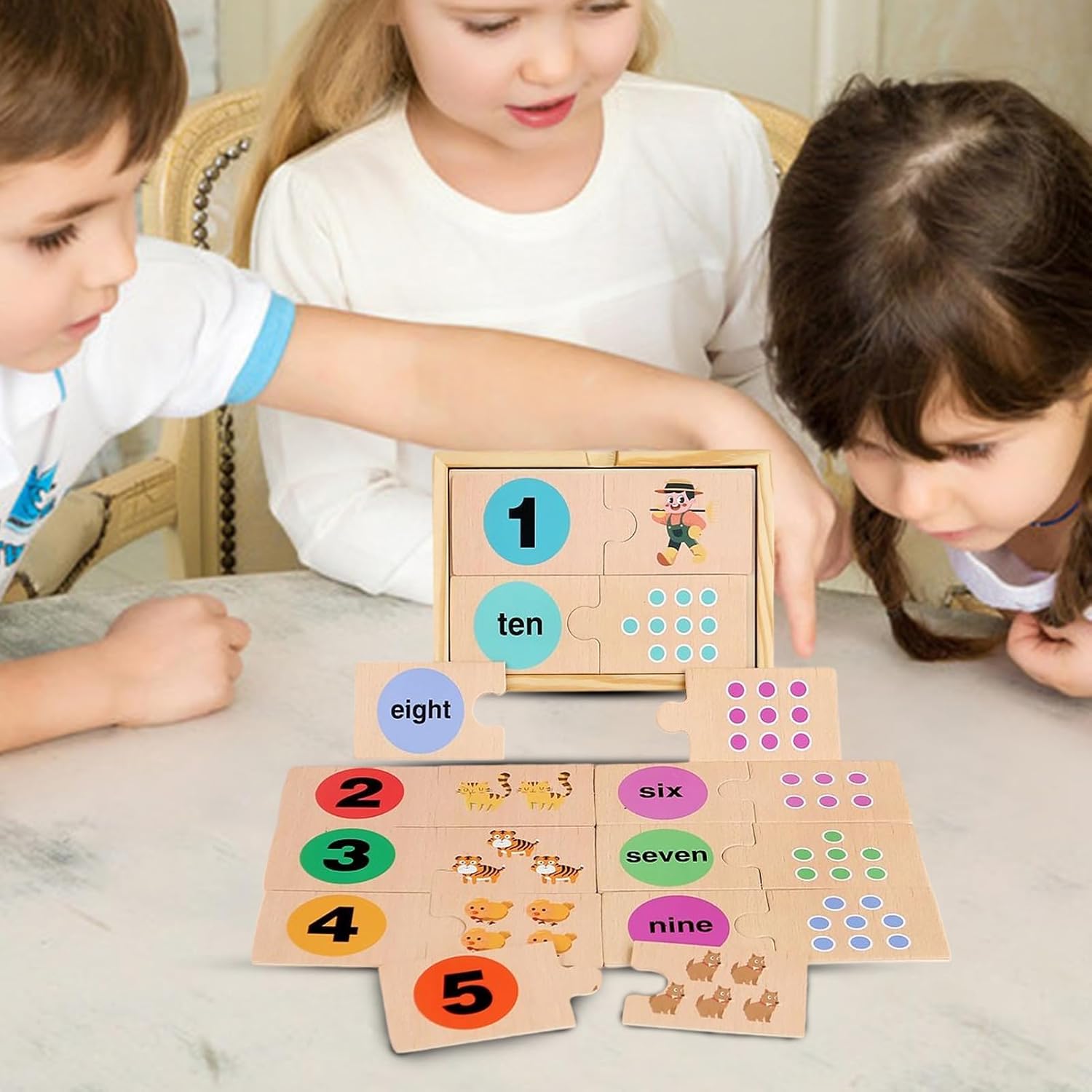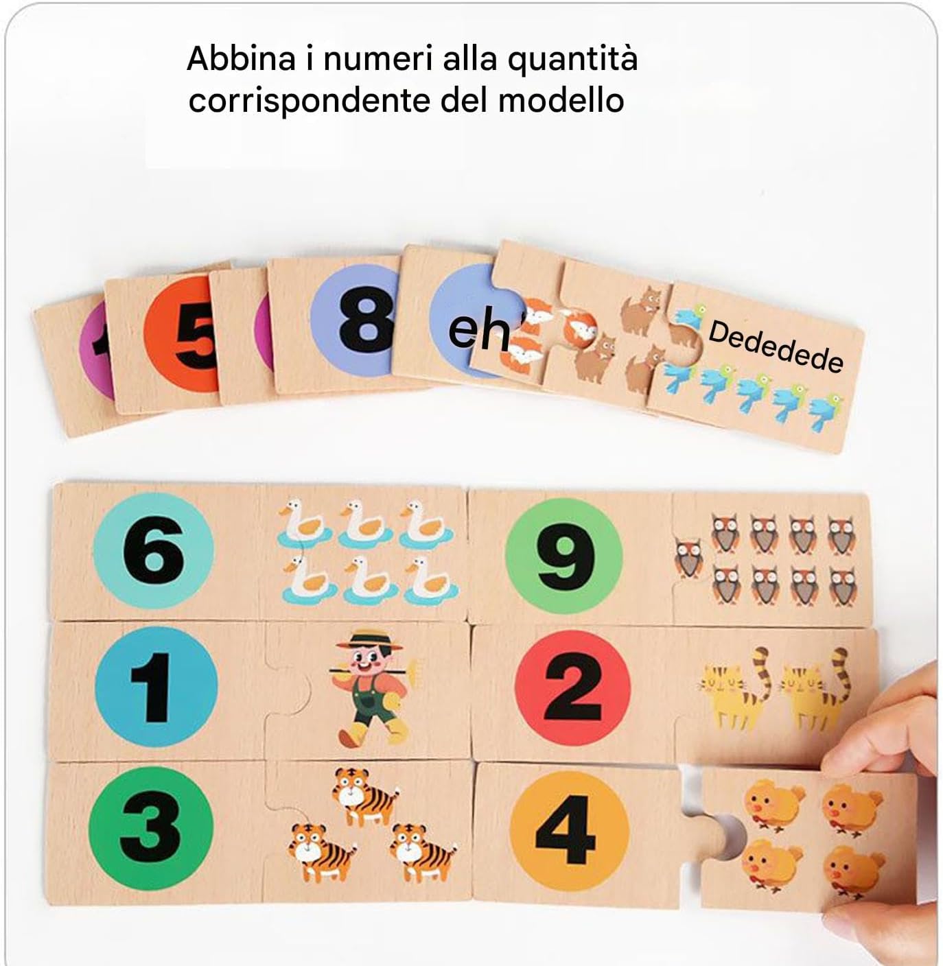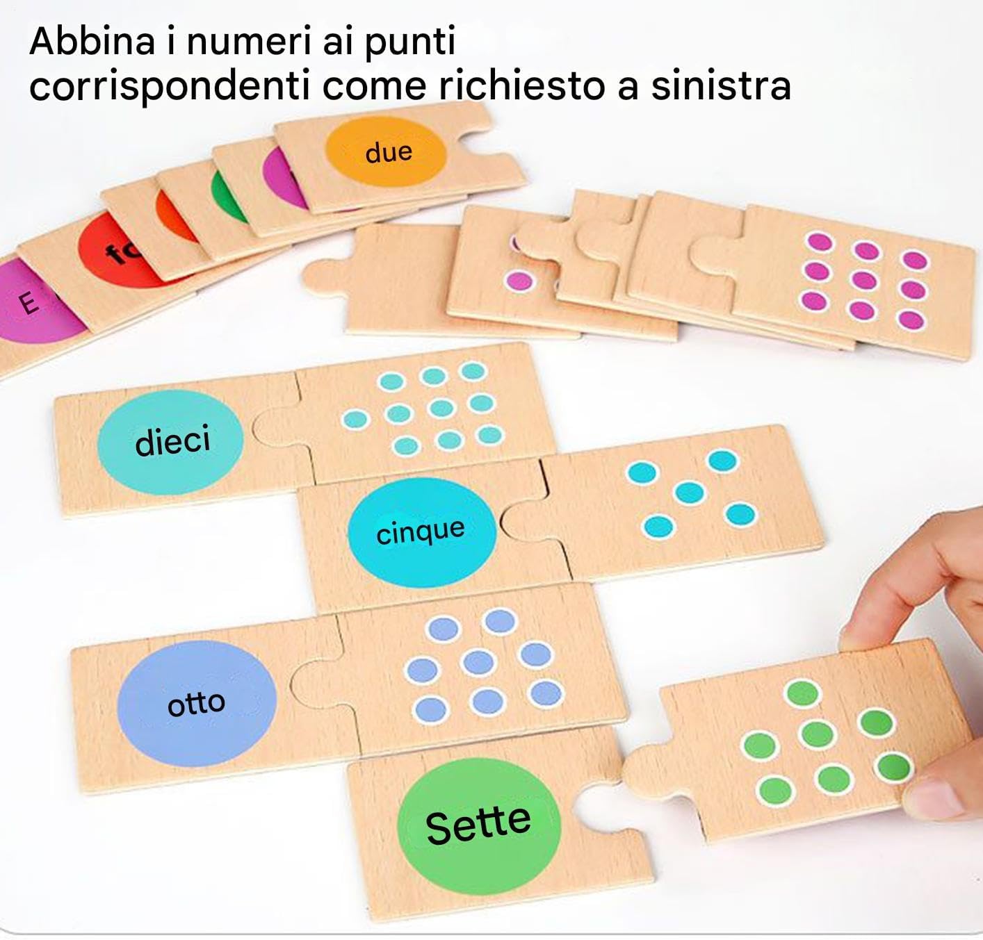 Migliorare l'familiare: questo puzzle ecologico e sicuro per bambini supporta le abilità matematiche, aiutando nel riconoscimento dei numeri e nella classificazione attraverso momenti di gioco collaborativo tra genitori e figli Attività di pensiero critico: Offre un'esperienza coinvolgente per il miglioramento della memoria e lo sviluppo del pensiero critico, sfidando i bambini con compiti di abbinamento incrociato che promuovono lo sviluppo cerebrale prescolare mentre coltivano abilità di problem solving attraverso esperienze di gioco dinamiche e interattive progettate per le fasi di apprendimento Strumento di apprendimento completo: Combina il riconoscimento di colori e forme con l'associazione di numeri e parole, offrendo un puzzle didattico double-face che funge da giocattolo educativo completo per l'esplorazione matematica precoce, stimolando multiple competenze in modo divertente e coinvolgente Giocattolo Educativo per Abitudini: Il design portatile con scatola in legno incoraggia routine di riordino, offrendo un modo pratico per organizzare puzzle durante viaggi o a casa, trasformando l'organizzazione in un'attività divertente Sviluppo motricità fine: Un innovativo gioco educativo a incastro, progettato per stimolare la logica e potenziare l'apprendimento cognitivo nei bambini, migliorando contemporaneamente la motricità fine attraverso attività di gioco interattive e coinvolgenti