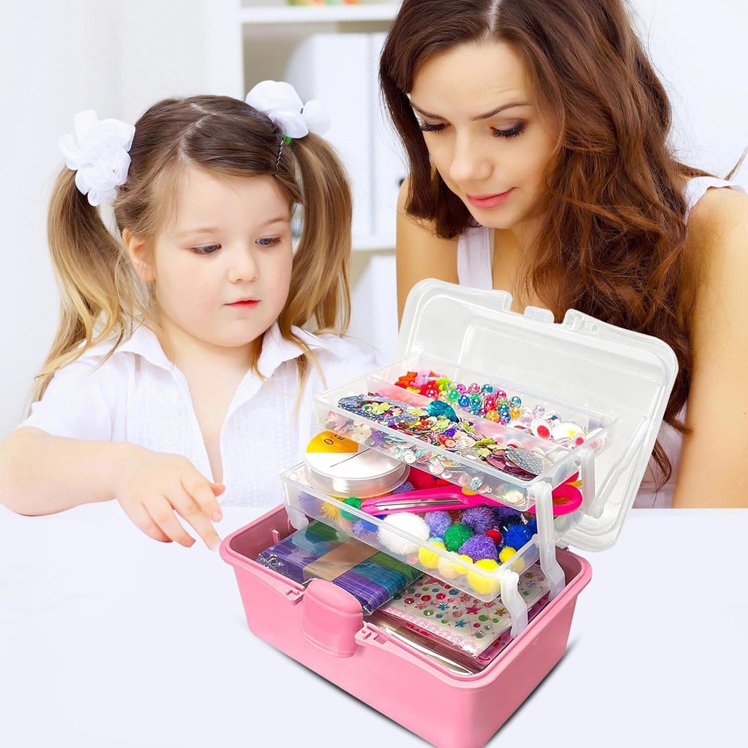 Sviluppo Abilità Artistiche: Stimola la crescita artistica unendo progetti di artigianato pratico a giochi educativi che rafforzano il riconoscimento dei colori, affinano le abilità motorie fini e nutrono efficacemente il senso estetico del bambino attraverso un apprendimento coinvolgente e naturale Esperienza di Gioco Sicura: Realizzato nel rispetto degli standard di sicurezza infantile, questo set di arte e artigianato assicura materiali sicuri per proteggere la crescita sana, offrendo creatività senza preoccupazioni e supportando naturalmente le attività di sviluppo Soluzione adattabile: Supporta spazi ordinati fornendo funzionalità di piegatura adattabile, progettata per organizzare materiali creativi di piccole dimensioni in diversi scenari d'uso Organizzazione Semplice: La scatola con maniglia massimizza l'efficienza spaziale e offre opzioni di trasporto pratiche, supportando naturalmente lo sviluppo di solide abitudini organizzative nei bambini Kit di Materiali Artistici Completo: Promuove creatività e immaginazione con diverse abilità di gioco, offrendo una vasta gamma di forniture artistiche per soddisfare efficacemente tutti i desideri creativi dei bambini