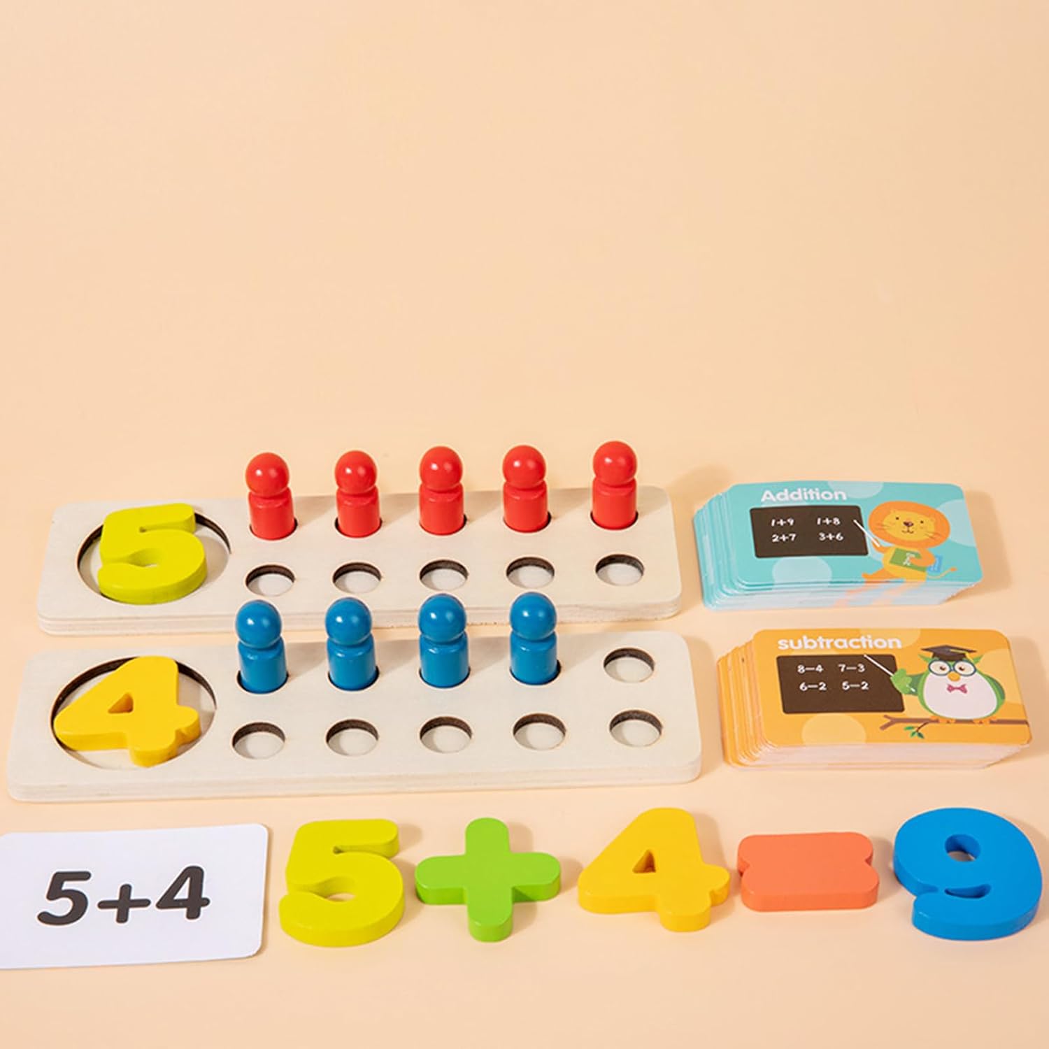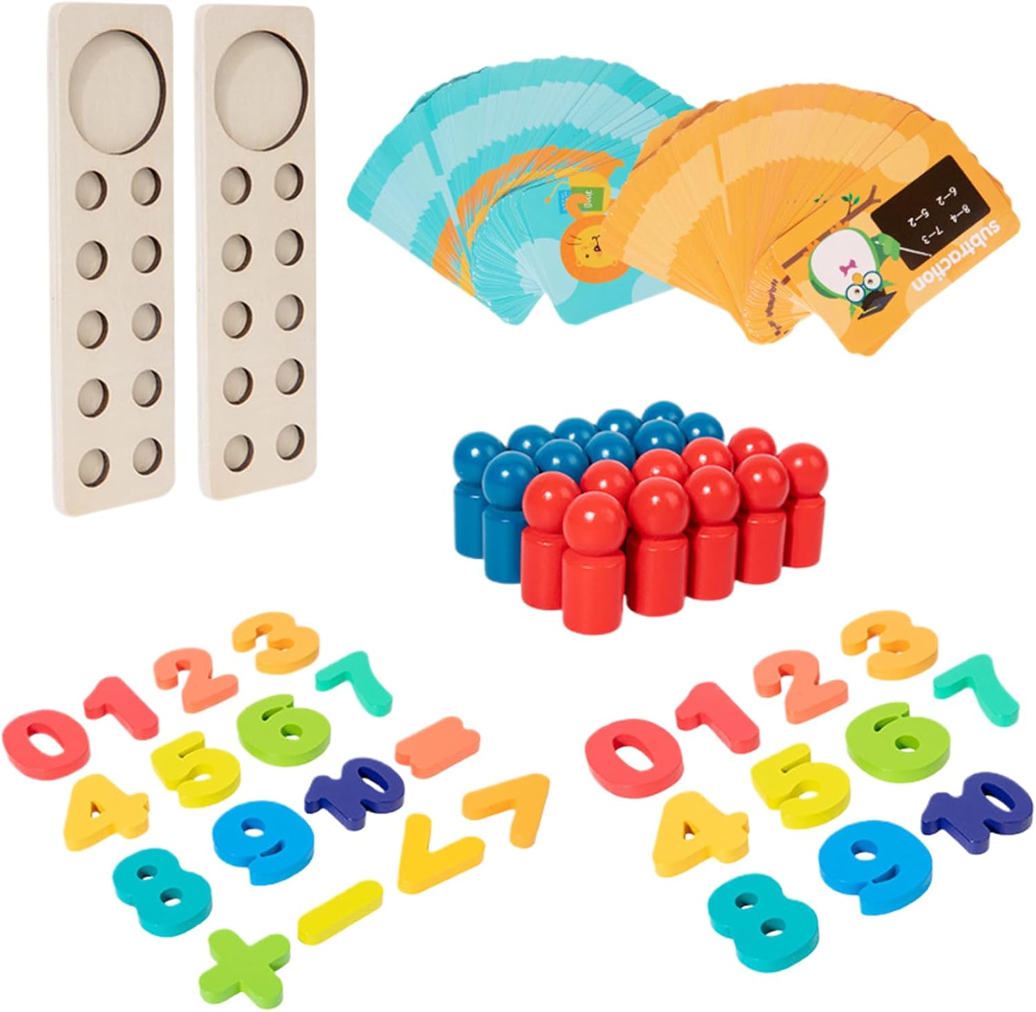 Interactive Learning Play: This wooden math game turns addition and subtraction into a fun, hands-on experience by using colorful number tiles and engaging puzzles that help kids build confidence while enjoying playful educational interaction Wooden Pieces: Crafted from high-quality natural wood and paints, this set includes smooth-edged pieces that are safe for children and built to withstand repeated use at home, school, or during playdates with friends Boosts Early Math: Encourages number recognition, logical thinking, and arithmetic skills through matching, sorting, and solving problems, making math concepts more accessible and enjoyable for kids ages 5 to 7 as part of their daily routine Perfect Group Activity: A great way to promote family bonding and , this game provides an entertaining and collaborative setting that turns learning into fun, ideal for holidays, game nights, or classroom group play Portable Educational Fun: Lightweight and compact for easy storage or travel, this learning toy can be brought along on trips, to classrooms, or grandparents’ homes, offering productive entertainment anytime and anywhere your child wants to play