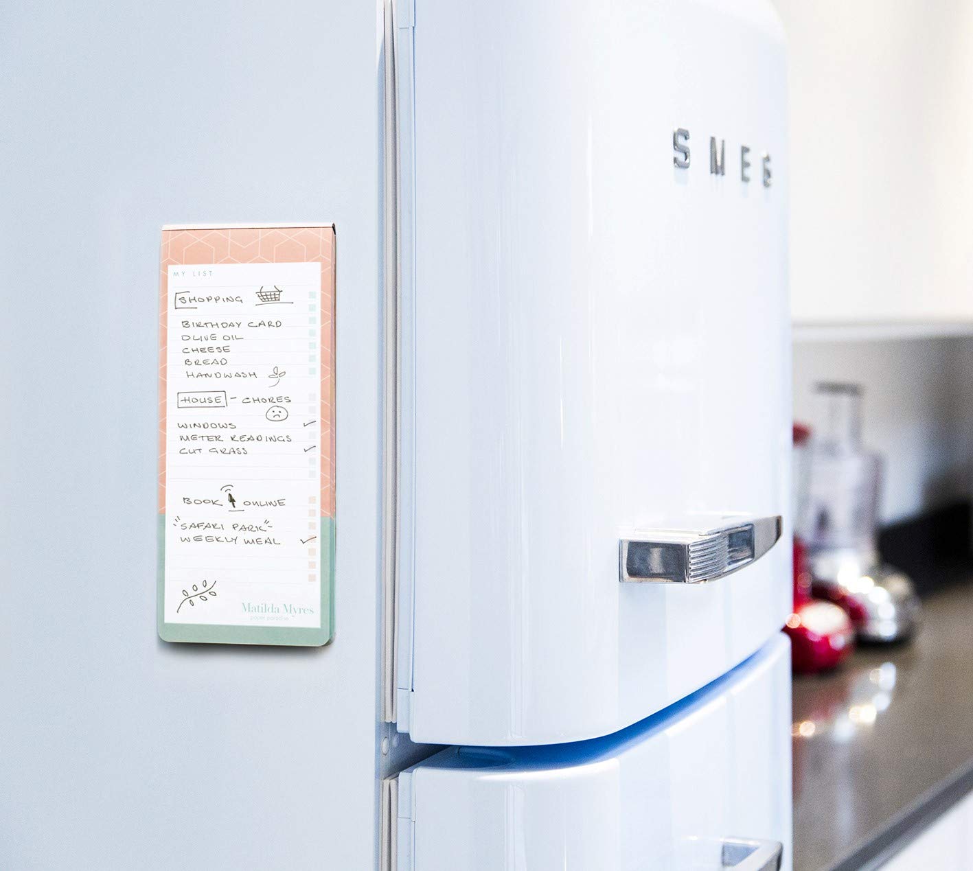 I bought this to put on my fridge and write down my lists for the grocery store. Works great and it’s cute!
