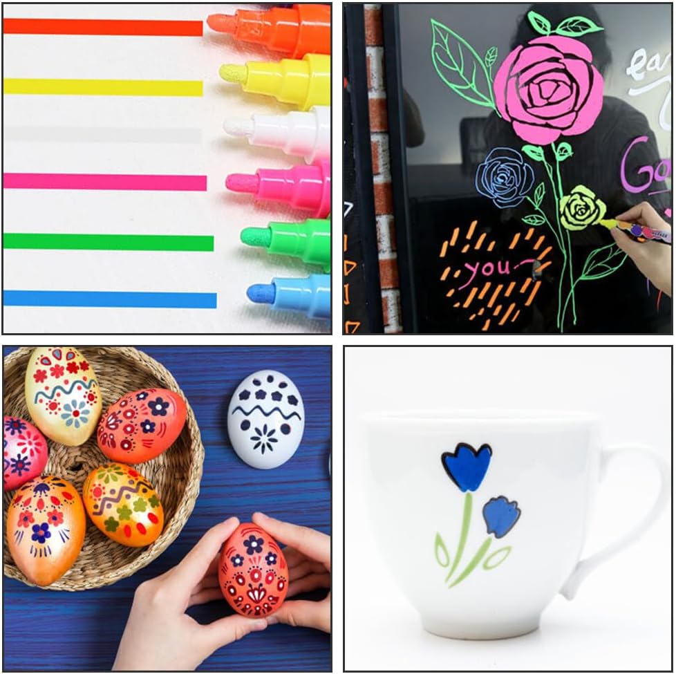 Adatto per bambini e adulti: tutti i pennarelli a gesso sono sicuri per la salute e adatti a bambini a partire dai 3 anni. L'inchiostro a base d'acqua è atossico, privo di acidi e solventi, inodore e soddisfa la norma di sicurezza europea EN71. Sono perfetti per progetti creativi e artigianali a scuola, a casa e al lavoro. Punta rotonda e scalpello reversibile: ogni pennarello a gesso liquido viene fornito con una punta rotonda e scalpello reversibile da 6 mm, che facilita la scrittura di lettere, linee, grafiche o ombre. La punta in fibra resistente può essere utilizzata più a lungo e funziona alla grande su tutte le superfici non porose tra cui lavagne, lavagne bianche, lavagne a LED, finestrini auto, specchi, adesivi, plastica o metallo e altro ancora Pennarelli a gesso cancellabili: i nostri pennarelli a gesso liquido sono migliori del gesso. Permettono di dipingere e scrivere senza polvere. Si possono pulire da tutte le superfici non porose in pochi secondi. Si consiglia di testare le penne su una piccola area poco visibile prima di ogni applicazione per assicurarsi che la superficie sia adatta e che l'inchiostro possa essere rimosso senza lasciare residui. Dimensioni e stile: la dimensione di questo pennarello liquido è di 140 mm x 18 mm. La quantità di penne in un set è di 8 pezzi. Diversi set tra cui scegliere. Soddisfa diverse esigenze di pittura. Il miglior regalo per bambini e adulti: perfetto per il fai da te per i tuoi progetti, regali unici per mamma, papà, fratelli, sorelle, amici, per compleanno, festa della mamma, festa del papà, Natale, Ringraziamento, Halloween, regali di Pasqua.