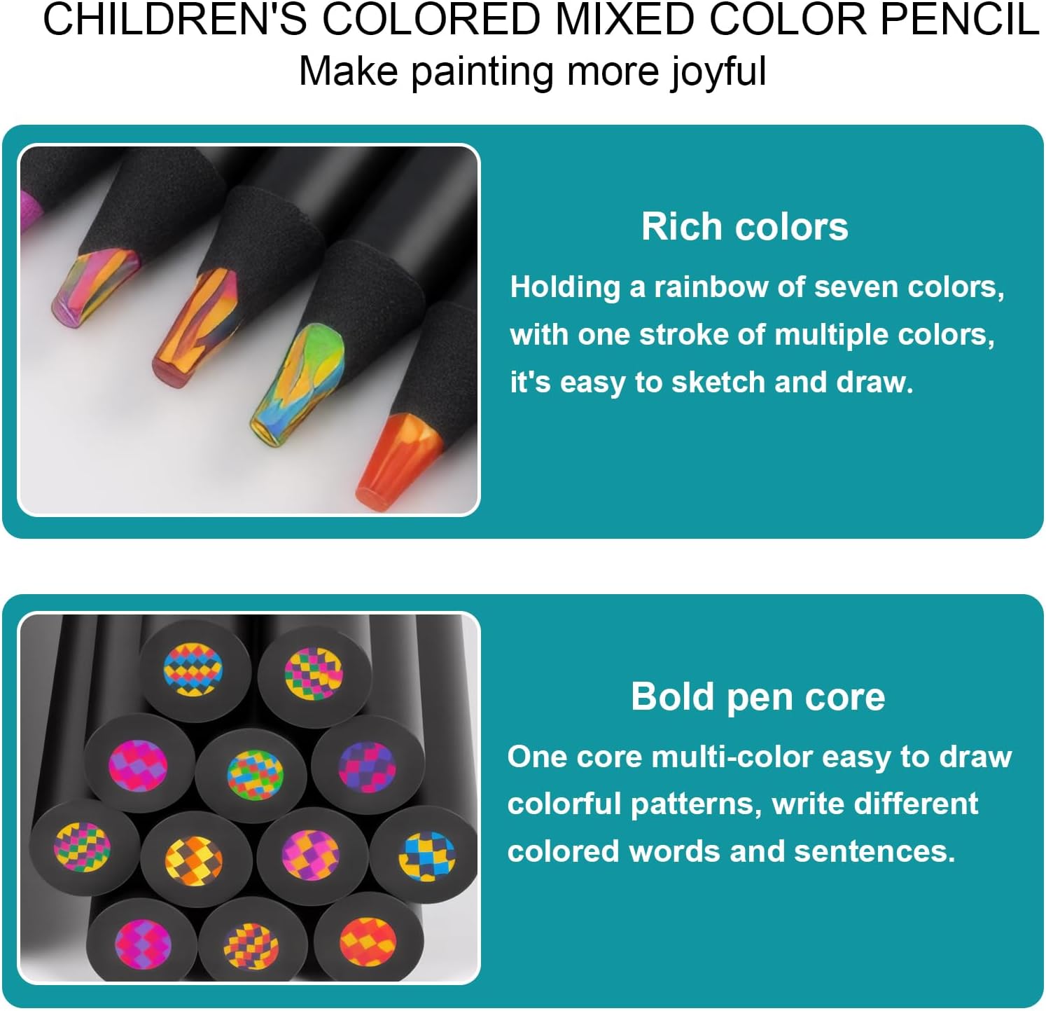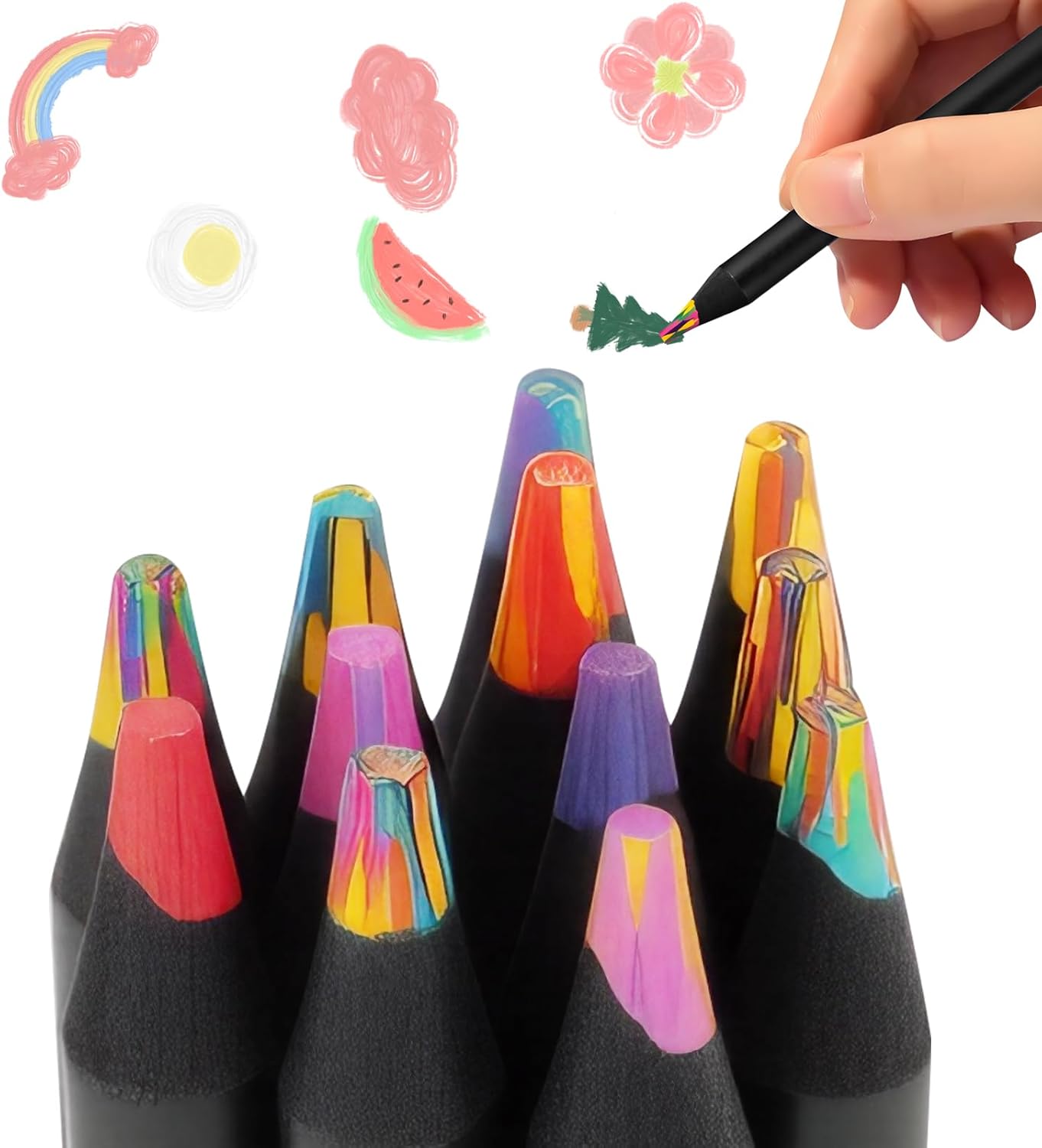 Regalo perfetto per bambini creativi: le matite arcobaleno sono il regalo ideale per bambini dai 6 anni in su. Perfetto come imbottitura per il cono scolastico, regali per l'inizio della scuola o per il compleanno dei bambini. Le penne garantiscono ore di divertimento e momenti creativi. Magici cambiamenti di colore: ogni matita contiene diverse sfumature che cambiano continuamente durante la pittura creando sfumature affascinanti. I bambini possono usarlo per creare opere d'arte uniche e vivere la loro creatività. 12 colori per ogni creazione: il set include 12 splendide matite arcobaleno con colori vivaci e vivaci. Ideale per progetti di artigianato, fai da te o schizzi creativi. Ogni penna combina 3-4 colori che si fondono insieme per creare effetti impressionanti. Lavorazione e durevolezza di alta qualità: le matite arcobaleno sono realizzate in legno robusto e una robusta mina per matite (diametro: 0,7 cm). Sono infrangibili e offrono una lunga durata. Le punte sono pronte all'uso e garantiscono una perfetta esperienza di pittura. Multiuso: queste matite arcobaleno sono adatte per diverse tecniche creative, dal disegno alla colorazione di libri da colorare. Sono perfetti per scarabocchiare, marcare e realizzare creazioni creative, sia su carta bianca che colorata.