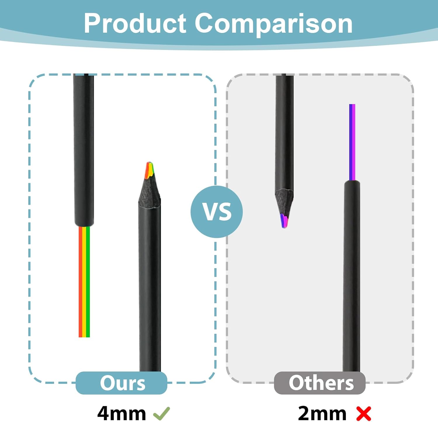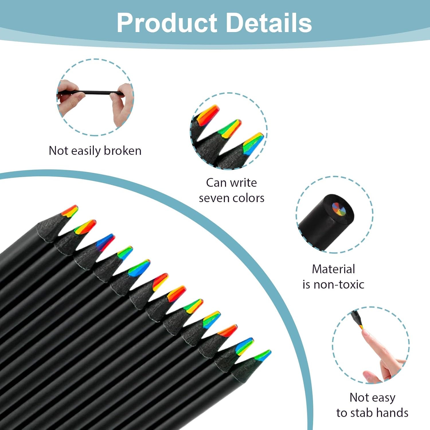 Matita arcobaleno 7 in 1: le nostre matite arcobaleno per bambini offrono 7 colori in una sola miniera, perfette per disegni creativi e miscele di colori. Queste matite colorate spesse sono perfette per schizzi, colorare e ombreggiare. La presa comoda li rende comodi anche in uso prolungato; un must per qualsiasi artista! Matite arcobaleno di alta qualità e sicure: realizzate in robusto legno nero, queste matite arcobaleno sono durevoli e sicure per i bambini. Questo materiale atossico soddisfa tutti gli standard di sicurezza, rendendolo un regalo ideale per i compleanni dei bambini. Perfetto per compleanni e regali per bambini:Queste matite arcobaleno non sono solo colorate, ma anche pratiche e versatili. Sono un ottimo regalo di compleanno o una ricompensa per gli studenti. Con queste matite colorate fluorescenti, i bambini possono dare sfogo alla loro immaginazione e creare opere d'arte creative. Il regalo ideale per bambini e adulti: che si tratti di compleanni, feste o sorprese, queste matite colorate spesse sono un'ottima scelta. Grazie al loro formato compatto, si possono portare ovunque, perfetti per i tuoi progetti artistici in movimento. Per le menti creative, principianti e professionisti: se sei un dilettante o un artista esperto, le nostre matite arcobaleno per bambini sono versatili. Stimolano la creatività e ti permettono di creare opere d'arte uniche con ogni matita arcobaleno.