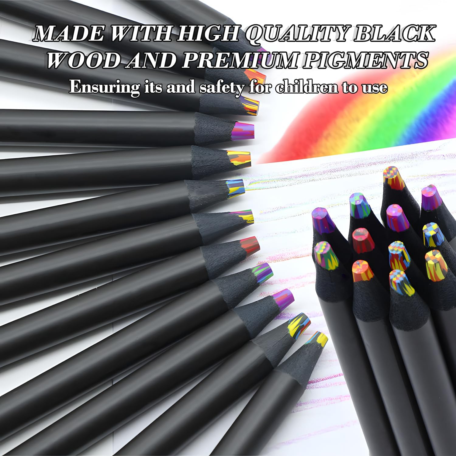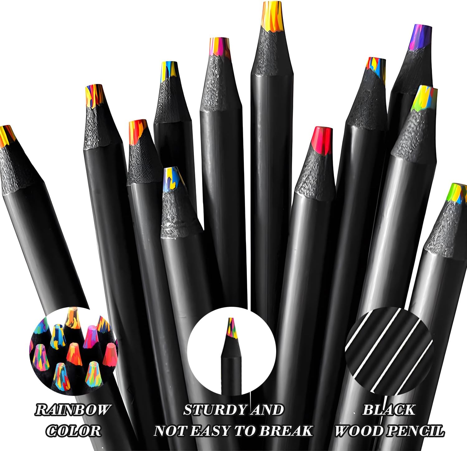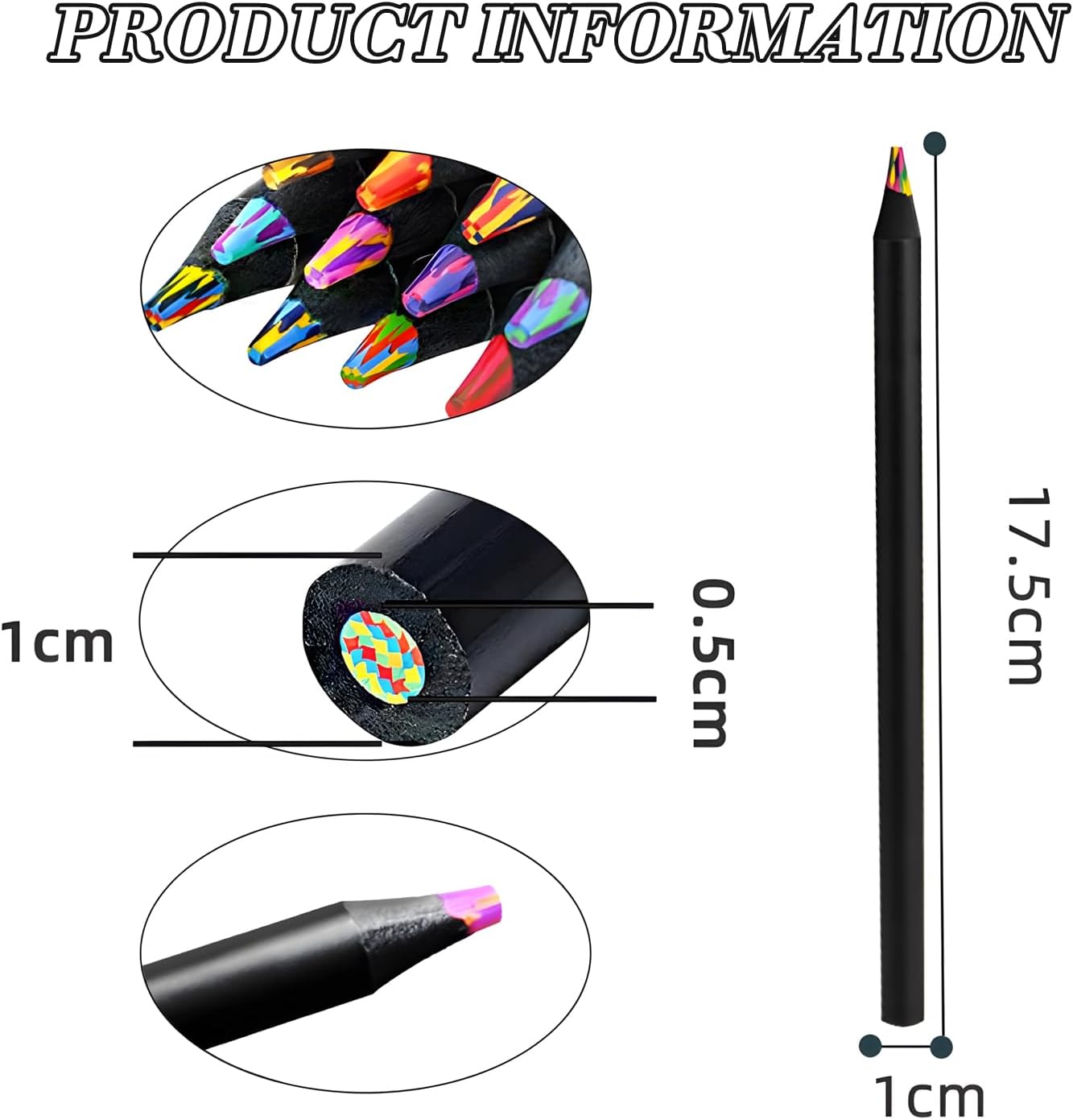 Matite colorate: l'idea regalo perfetta per i bambini. Queste matite colorate di alta qualità per bambini entusiasmano i piccoli artisti e sono ideali per Pasqua, festa dei bambini, inizio della scuola, Natale o come riempimento per la scuola. Con queste matite colorate si creano opere d'arte uniche che i bambini presenteranno con orgoglio. Un regalo creativo e duraturo che porterà sempre gioia! Gradienti di colore unici: le matite colorate sorprendono con le mine multicolori che consentono sfumature e sfumature affascinanti. Perfetto per effetti artistici e disegni vivaci. Che si tratti di transizioni fluide o contrasti intensi, con questi crayons ogni immagine diventa un punto culminante! 12 colori arcobaleno: il set contiene 12 matite colorate vivaci in vivaci tonalità arcobaleno. La combinazione di colori armoniosa facilita la creazione creativa ed è perfetta per progetti fai da te, schizzi o dipinti ricchi di dettagli. Ideale per la scuola, il tempo libero e lo sviluppo artistico Versatile: queste matite colorate per bambini sono perfette per colorare libri, schizzi, evidenziare o per progetti artistici creativi. La mina girevole consente un rapido cambio di colore e garantisce risultati vari. Un must have per artisti giovani ed esperti! Sicuro e durevole: realizzato in legno di alta qualità e mina pigmentata, queste matite colorate convincono grazie alla resistenza alla rottura e all'intenso effetto colorante. Con mina spessa 0,5 cm e punta pretagliata, sono subito pronte per l'uso – un compagno affidabile per ore di divertimento