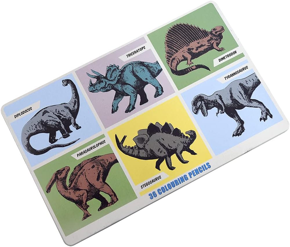 Aggiungi un tocco di colore al tuo disegno con questo divertente set di 36 matite colorate Con la nostra collezione Dinosauri Queste matite sono disponibili in una gamma di colori vivaci e in una scatola di latta Perfette per essere creativi con tutti i colori dell'arcobaleno Ideali come regalo per la scuola o come riempitivo per le borse delle feste