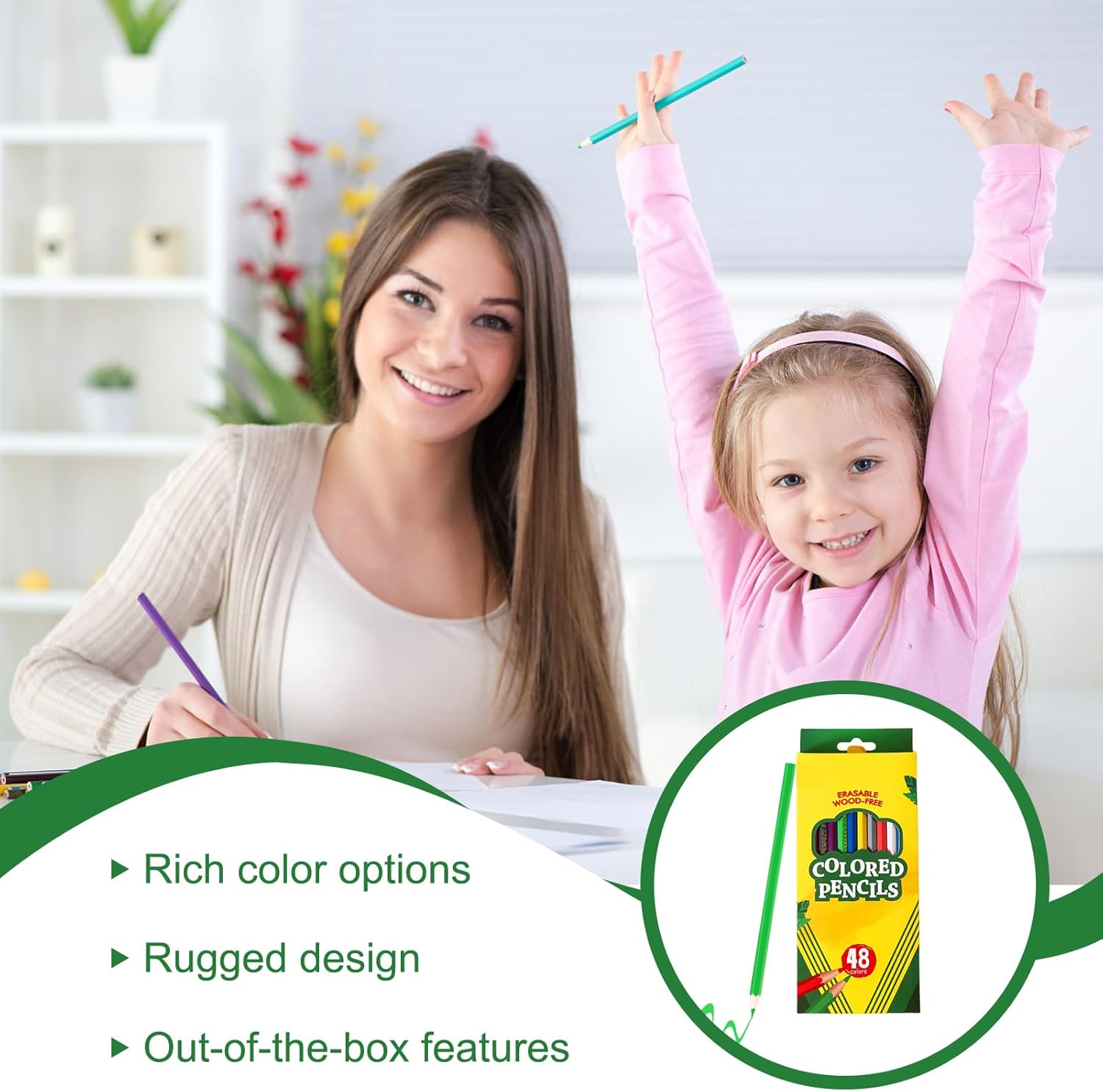 Esperienza di Disegno Senza : I bambini possono creare liberamente con matite colorate pronte all'uso, senza necessità di temperatura, con mina morbida per fluide e transizioni cromatiche uniformi Adattabilità:Strumento versatile per disegnare e creare scarabocchi, per l'uso domestico, scolastico o all'aperto. Garantisce coinvolgimento per bambini dai 3 anni in su grazie alla praticità d'uso ovunque. Nucleo Fluido e Sicuro: Mina spessa da 2.8mm antirottura previene la rottura della mina, garantendo coloritura scorrevole e applicazione omogenea per la creatività di bambini di ogni livello. Origine Sostenibile: Progettate con legno sicuro per bambini e facile presa per manine, queste matite ecologiche provengono da fonti rinnovabili, assicurando un'esplorazione artistica affidabile che promuove il rispetto per l'ambiente Colori Brillanti e Versatili: Con 48 matite già temperate in tinte vivaci, questa collezione sostiene l'espressione creativa dei bambini ed è adatta a tutti gli stili di disegno, offrendo un'esperienza coinvolgente per ogni progetto artistico.