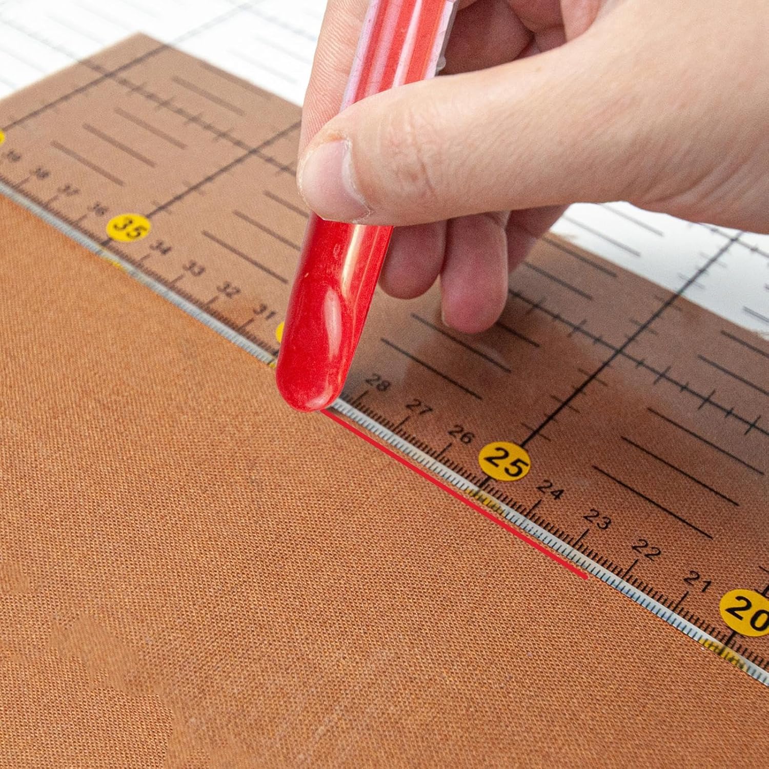 Creazione di marcatori temporanei: se hai bisogno di contrassegnare il tessuto per cucire, trapuntare o mestieri, il nostro raccoglitore di tessuti può aiutarti a creare linee chiare e precise. Le strisce di gesso si puliscono facilmente con le mani o con un panno umido senza lasciare macchie ostinate sul tessuto. Progettato con tecnologia a ruote dosatrici: questo gesso in tessuto viene fornito con una ruota dosatrice di gesso che si adatta a qualsiasi tessuto. Ti aiuta a disegnare linee o curve precise per orli, cuciture, cuciture di figura o motivi. Il design unico rende la marcatura dei tessuti semplice e precisa. Colori multipli: il nostro gesso in tessuto è uno strumento indispensabile per ogni amante del cucito o della trapunta. Puoi usarlo per evidenziare i tuoi modelli, dimensioni o disegni su qualsiasi tessuto. Il gesso è disponibile in tre colori: rosso, giallo e bianco, in modo da poter vedere chiaramente i segni su ogni sfondo. Pennarello per tutti i tessuti: che tu stia cucendo, trapunta o ricamando, il nostro raccoglitore di tessuti può aiutarti a evidenziare i tuoi disegni su qualsiasi tessuto. Funziona su maglieria, cotone, pelle, jersey e altro ancora. Scivola dolcemente sul tessuto lasciando una macchia visibile che può essere facilmente lavata via. Applicazione di fattori ergonomici: con una canna circolare e una piccola ruota, questo gesso in tessuto ti dà la flessibilità di disegnare linee rette, curve o dettagliate su qualsiasi tessuto senza scivolare o rompersi.