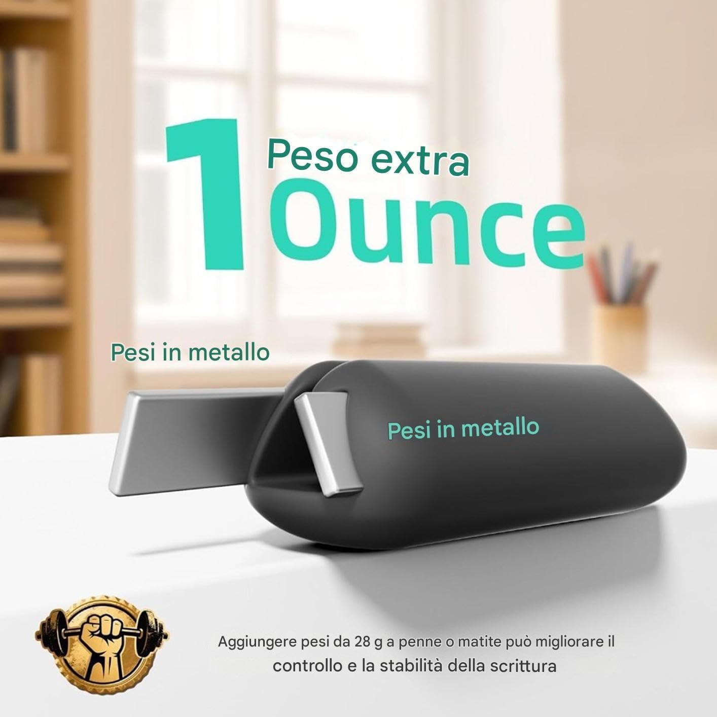 Formazione Educativa: Migliora la coordinazione mano-occhio, promuove metodi standardizzati e potenzia l'efficacia degli allenamenti di apprendimento didattico per studenti e principianti. Scrittura Senza Sforzo: Progettata per ridurre la fatica della mano, offre un supporto alla scrittura e sostiene con facilità il perfezionamento delle abilità motorie fini. Compatibilità Estesa: ponderata con apertura triangolare elastica per adattarsi regolarmente a penne diverse, garantendo una presa sicura e personalizzabile grazie al design flessibile Regolazione Semplice: Focalizzata sull'usabilità immediata, consente personalizzazione del bilanciamento rapida. Supporto efficace per esercizi giornalieri e formazione professionale per affinare progressivamente le tecniche di scrittura con risultati coerenti Silicone Robusto: Silicone elastico e design ergonomico riducono la fatica, offrendo attrito per un controllo ottimale e garantendo una piacevole esperienza di scrittura duratura