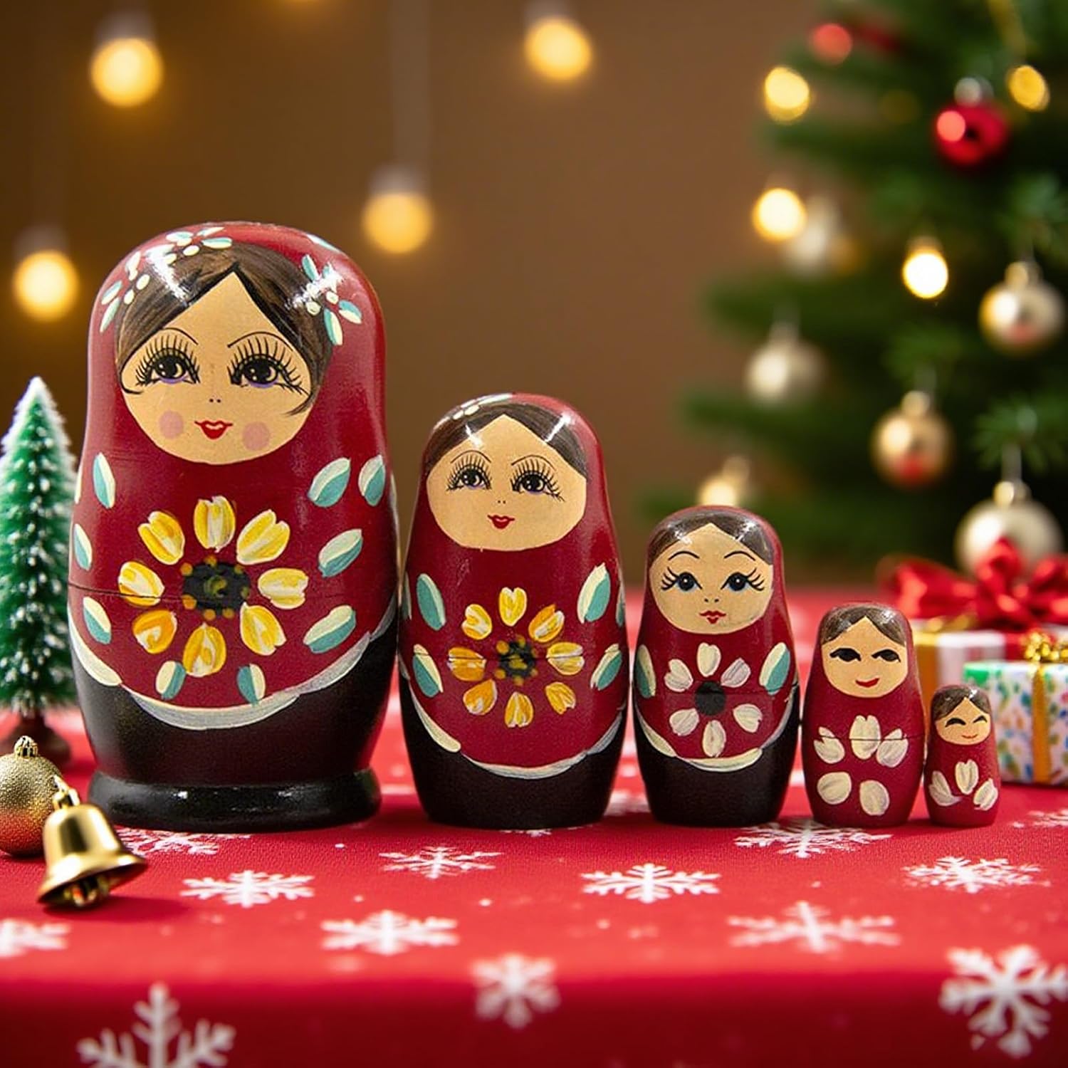 Opzioni espositive adattabili: Si abbinano con eleganza a zone come la cameretta, la camera adulti, l'ingresso, il salone, il centrotavola delle feste, il o le mensole decorative, donando carattere a ogni spazio Ispirazione dall'Arte Folk: Motivi intricati adornano ogni bambola, mettendo in risalto un'estetica classica ispirata alla tradizione popolare, perfetta per appassionati di strutture annidate e decorazioni per la casa Arte collezionabile dettagliata: Motivi intricati e brillanti, esaltati da una lucentezza uniforme e stratificazioni di lacca, trasformano queste matriosche in pezzi artistici perfetti per aggiungere carattere agli spazi e conservare valore nel Soluzione di condivisione facile: unisce bellezza e praticità con un design multistrato compatto, garantendo portabilità senza sforzo e una configurazione organizzata che migliora l'esperienza di condividere le matriosche ovunque Potenziamento pensiero logico: Stimola curiosità e scoperta attraverso gli strati intricati delle matriosche russe, supportando la crescita evolutiva unendo pensiero logico e coordinazione occhio-mano in un'attività condivisa