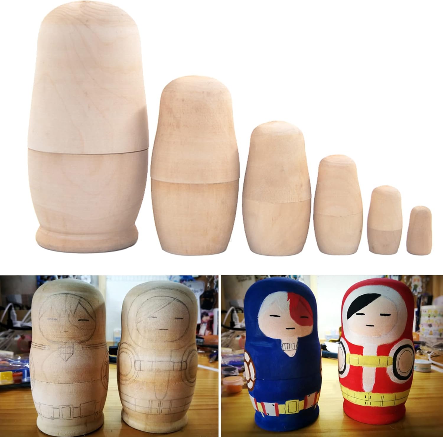 【Materiale Premium】 Le bambole russe nidificanti sono realizzate in legno duro. In legno, fatto a mano e dipinto a mano. Rispettoso dell'ambiente, nessun odore pungente, sicuro per i giocatori. È una decorazione eccellente per i festival. Suggerimento: il legno naturale avrà dei piccoli difetti. 【Bambole russe nidificanti vuote】 Bambole di legno vuote per l'artigianato, puoi creare il tuo set di matrioska unico, progettare o aggiungere un motivo diverso a ogni bambola; Lascia correre la tua immaginazione e divertiti a disegnare e dipingere il tuo set di bambole russe nidificanti. 【Bambole impilabili a 6 strati】 6 bambole in un unico pacchetto. Ogni dimensione è diversa e quella più piccola è inserita in quella più grande. La taglia più grande: 7 cm x 14,5 cm. La seconda dimensione: 5,5 cm x 11 cm. La terza dimensione: 4,3 cm x 8 cm. La quarta taglia: 3 cm x 6,3 cm. La quinta dimensione: 2,2 cm x 4 cm. E la taglia più piccola: 1,4 cm x 2,8 cm. 【Multiuso】Può essere dipinto, macchiato o abbellito come vuoi e creare una bellissima bambola di legno. Può anche lavorare per progetti artistici e lezioni fatte a mano e così via. 【Miglior regalo】 Il corpo della bambola in legno non finito ti consente di usare pastelli, pennarelli, glitter e colla per creare e dipingere facce e vestiti carini su queste piccole persone in legno. Le bambole russe nidificanti sono un regalo fantastico e vengono tradizionalmente date in molti tipi di occasioni speciali.