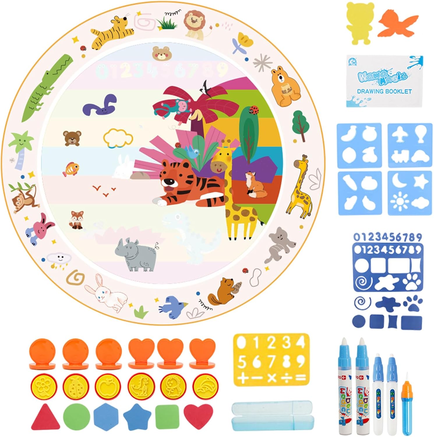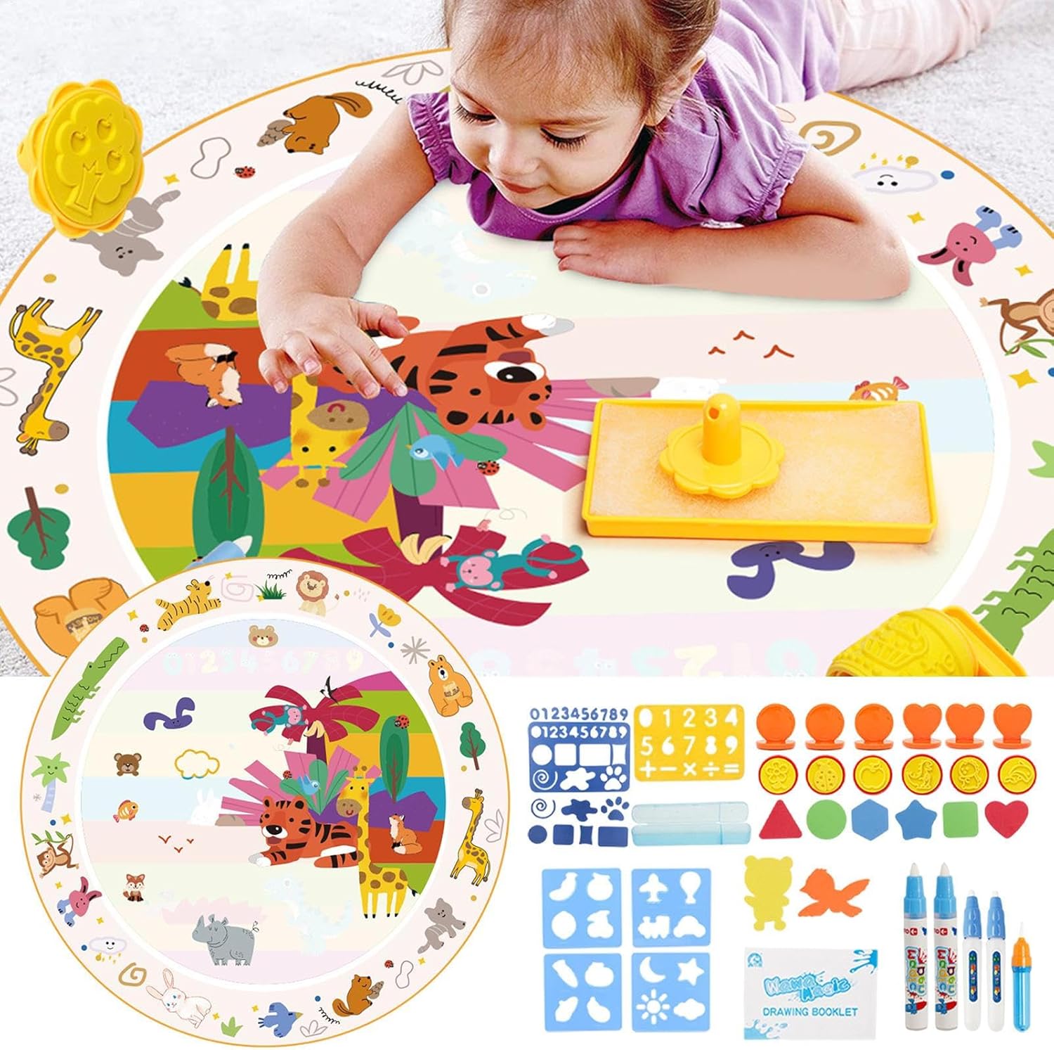 Capo scintillanti svelati: Utilizzo di tecnologie innovative, ogni bussare rivela un colore vibrante che si disturba mentre l'acqua evapora, rendendo la tela moralmente riutilizzabile per il divertimento creativo Spark Creativity & Joy: i bambini vengono coinvolti nel gioco interattivo su questo tappetino, promuovendo la creatività e le abilità mentre faccio il coordinamento occhio-mano, le capacità motorie e la pazienza Promuove la salute e la sicurezza: gli angoli arrotondati del tappetino d'acqua e il materiale in tessuto innocuo + addominali sono sicuri per la sicurezza dei bambini, prevenendo potenziali rischi per la salute supponendo che la penna 'acqua sia accidentalmente inghiottita: non mantenendo i genitori non si preoccupano Festeggia le pietre miliari con amore: espresse amore e cura con questo accattivante tappetino da scarno d'acqua, ideale per compleanni, festival, Natale e anno, rendendolo un regalo caro per i bambini Conveniente per l'aperto: non importa supposizione a casa, a scuola, asilo o durante i viaggi, questo tappetino da scarabocchi è adatto per una vasta gamma di attività interne ed esterne