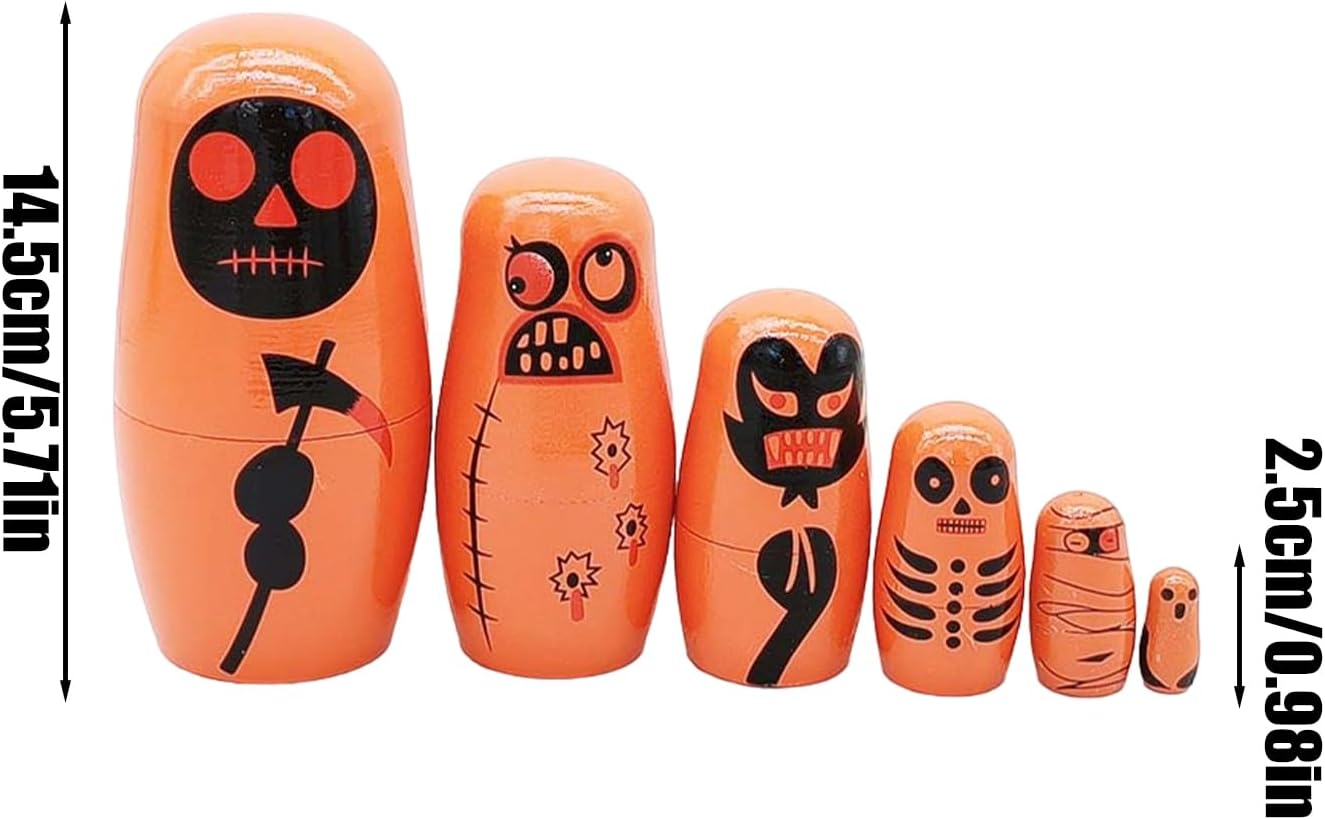 Guida alla cura dei collezionisti: Come oggetto da collezione, le tue bambole matrioska meritano un'attenzione speciale. Conservare lontano dalla luce del sole e pulire sempre solo con un panno asciutto. Queste comprovate fasi di cura mantengono il fascino delle statuette in legno. Bambole da esposizione di più dimensioni: come set di bambole impilabili con personaggi da collezione, offrono opzioni di decorazione flessibili per diversi ambienti che fungono da accattivante e oggetto decorativo interattivo Decorazione unica per Halloween: matrioska affascinanti con facce horror ricche di dettagli. Speciali collezioni di auguri e straordinari accessori per la vostra casa. Robusti e durevoli: bambole matrioska realizzate a mano in legno massello con superficie liscia lucida e dettagliata dipinta a mano. La struttura stabile garantisce lunga durata nei dettagli artistici di questa intramontabile arte del legno. Gioia di famiglia: le bambole Matrioska fatte a mano sono un ricordo festivo e un regalo speciale, ideali per sorprendere i tuoi cari con la tradizione artigianale e il fascino senza tempo durante le vacanze.