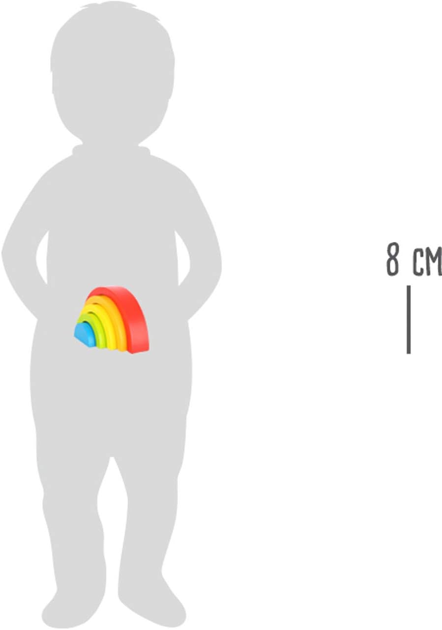Dipinte con colori arcobaleno a base d'acqua e resistenti alla saliva, le parti possono essere integrate in mondi di costruzioni come una culla, un ponte, un garage, un tunnel, ecc. Rafforza la teoria dei colori, la percezione spaziale, la destrezza e la coordinazione occhio-mano. Promuove la creatività, poiché con essi è possibile rappresentare anche figure complesse. Questi mattoncini in legno allenano in modo giocoso la motricità fine delle mani!