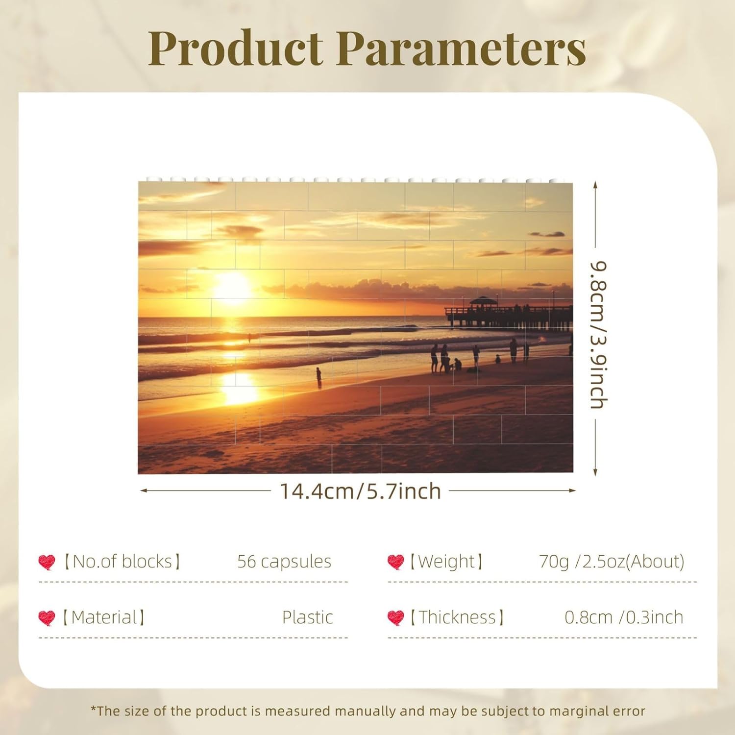 Design umanizzato: blocchi da costruzione Sunset Beach per adulti - Forma adorabile, ben assemblati, bordi lisci, robusti e resistenti alla caduta. Design umanizzato per più divertimento e tranquillità. Kit di mattoni da costruzione squisita fattura e rigorosa selezione di accessori. Alta qualità: i mini mattoncini da costruzione sono realizzati in plastica ABS di alta qualità, con bordi lisci, non preoccuparti di ferirti le mani. I mini mattoncini sono abbastanza resistenti da poter stare su un altro mattoncino, ma abbastanza facili da poter essere smontati da un adulto. Atmosfera rilassante: questi mini mattoncini offrono un'esperienza di costruzione superiore con più sfide, sofisticatezza e dettagli rispetto a qualsiasi altro set di edifici. Mini blocchi rettangolari puoi goderti la tua creazione e la tua felicità in un'atmosfera semplice e rilassante. Enorme sfida: adorabili puzzle rettangolari costruiscono modelli con dettagli incredibili, straordinaria autenticità e realismo senza precedenti. Questo kit di mattoncini 3D può anche aggiungere un design moderno e colori brillanti all'arredamento della tua casa. Decorazioni per la casa: vale la pena collezionare questo set di set da costruzione carini e raffinati e può anche essere utilizzato come decorazione per scrivanie, biblioteche, camere da letto, automobili, ecc. O ovunque tu voglia, puzzle di mattoni rettangolari di dimensioni mini e non occupa molto spazio.