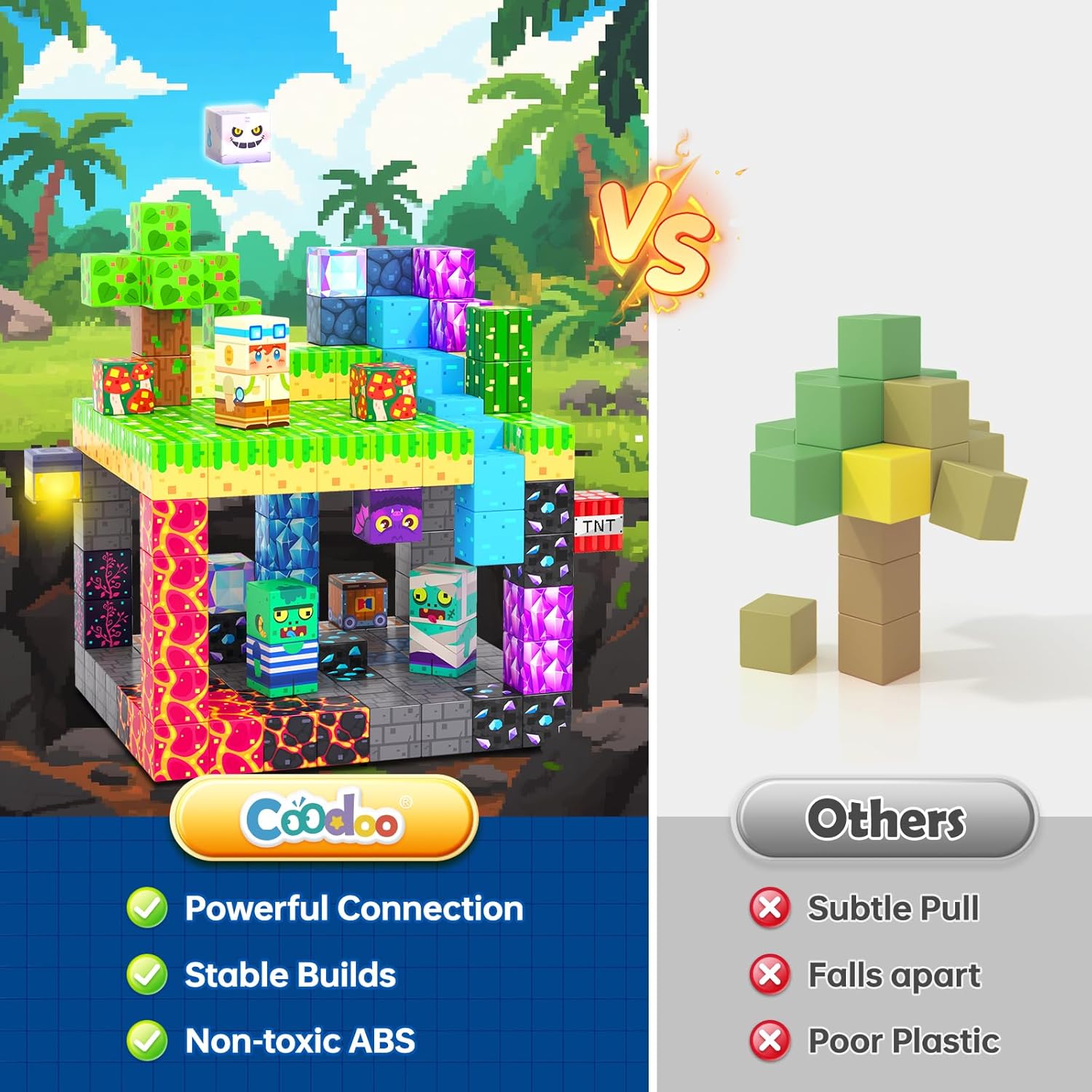 Emozionante caccia al tesoro nella foresta pluviale: inizia un emozionante viaggio avventuroso con i nostri blocchi magnetici da 150 pezzi! Per tradizione, molte gemme sono nascoste sotto la foresta pluviale, ma il terreno sotterraneo è pericoloso, con molti zombi che vagano sotto! Supera inondazioni di lava e sciami di zombi per esplorare il magico mistero del mondo della pioggia. Sei pronto per la caccia al tesoro definitiva? Sicurezza e durata: le nostre torri magnetiche sono realizzate con potenti magneti e plastica ABS di alta qualità: rimangono stabili anche in caso di costruzioni creative rischiose! I bambini possono costruire gigantesche foreste pluviali, vulcani in fiore o grotte misteriose, perfette per i bambini di 5-10 anni. Il design robusto garantisce un divertimento senza fine. Giocattoli educativi e STEM: questi giocattoli magnetici senza schermo affascinano i bambini per ore promuovendo la logica, l'immaginazione spaziale e la concentrazione. Mentre i bambini costruiscono e progettano, apprendono i principi della teoria magnetica e migliorano le loro capacità di risoluzione dei problemi, perfetti come strumento STEM Montessori per l'apprendimento pratico. Libera la creatività: con blocchi magnetici colorati, i bambini costruiscono paesaggi lavici o lussureggianti foreste pluviali, ogni pezzo suscita nuove idee! Il design ergonomico si adatta perfettamente alle mani dei più piccoli e promuove la pazienza, la creatività e le capacità motorie. Le istruzioni contengono esempi di progettazione di alcuni modelli e garantiscono successo e divertimento di costruzione per bambini dai 3 anni in su. Emozionante caccia al tesoro nella foresta pluviale: inizia un emozionante viaggio avventuroso con i nostri blocchi magnetici da 150 pezzi! Per tradizione, molte gemme sono nascoste sotto la foresta pluviale, ma il terreno sotterraneo è pericoloso, con molti zombi che vagano sotto! Supera inondazioni di lava e sciami di zombi per esplorare il magico mistero del mondo della pioggia.