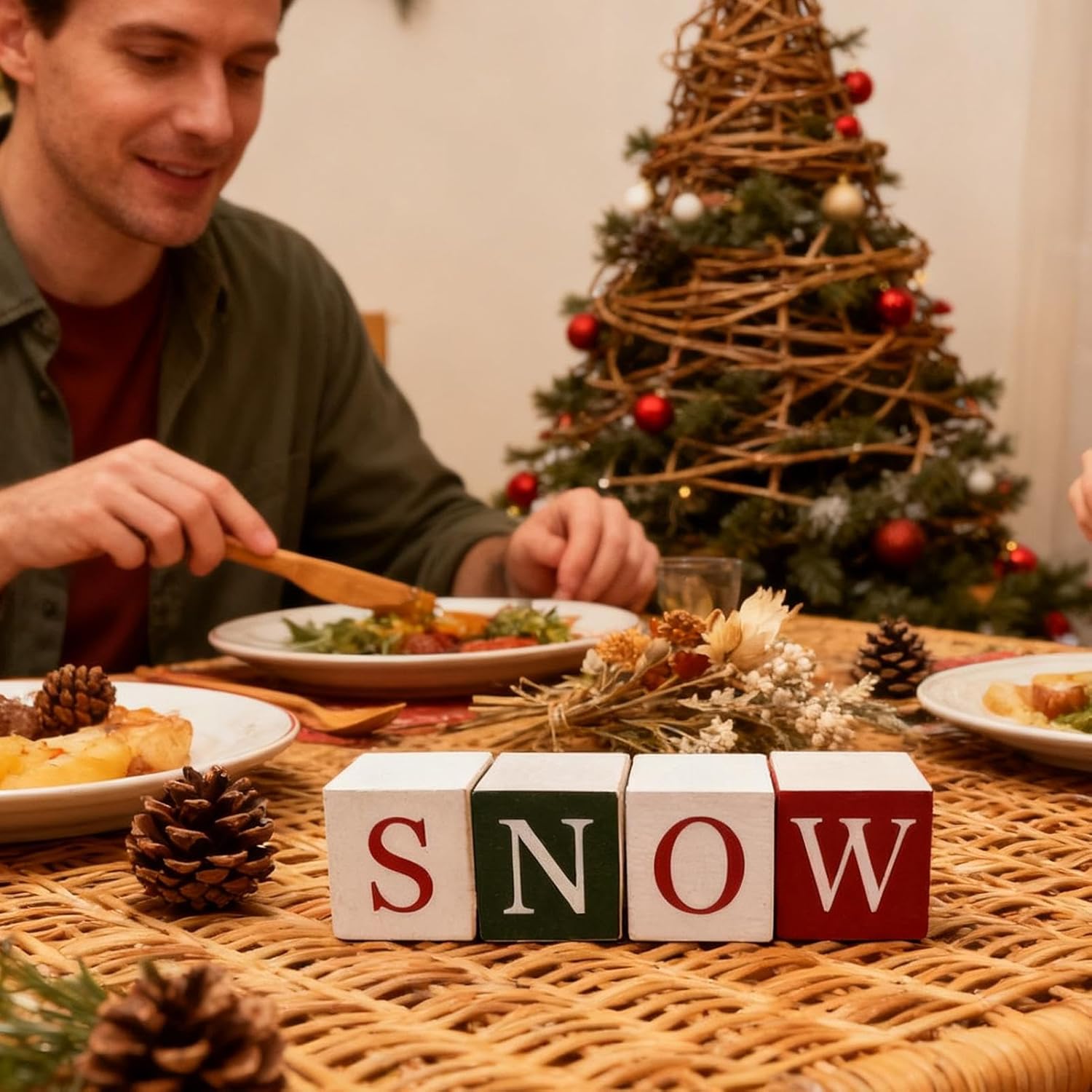 Ampiamente utilizzabile: questi blocchi di stazioni natalizie fungono da elementi decorativi funzionali per il camino, l'ingresso, la scrivania e il soggiorno. Danno un fascino stagionale e garantiscono un'ampia possibilità di utilizzo in diverse zone abitative. Il loro utilizzo versatile li rende una scelta pratica per il design festivo, che si adatta idealmente a vari ambienti interni e diffonde lo spirito natalizio. Opzioni di visualizzazione versatili: il cubo di Natale è dotato di incisione su due lati e di una funzione di rotazione di 360 gradi, che consente di visualizzare in modo ottimale i motivi festivi da più angolazioni. Questa caratteristica consente un posizionamento flessibile su tavoli, scaffali o panche da caminetto durante le vacanze di Natale, permettendone l'utilizzo in luoghi diversi e migliorando l'atmosfera festosa. REGALO PERFETTO: i blocchi di legno di Natale sono un ottimo regalo per compleanni e festività. Arricchiscono le riunioni di famiglia e gli incontri con gli amici aggiungendo fascino festoso a qualsiasi evento. Il design senza tempo rende le celebrazioni più memorabili e sentite. Questa decorazione in legno è ideale come regalo di Natale o per altre occasioni festive e diffonde un'atmosfera accogliente in ogni casa per celebrare momenti speciali con i propri cari. Creare gioia stagionale: con il suo design a tema natalizio, questa decorazione natalizia aggiunge un autentico tocco festivo all'ambiente, promuove un'atmosfera allegra e accogliente ed è adatta per feste festive, feste al chiuso o celebrazioni memorabili. Questo diffonde un'atmosfera festosa e favorisce incontri intimi per arricchire di gioia e fascino il periodo natalizio in ogni ambiente e per rendere indimenticabili le occasioni speciali. Eleganza naturale festosa: progettato con materiali naturali e dettagli sapientemente realizzati a mano, questo ceppo di Natale incarna un carattere rustico ma elegante. Porta calore e stile duraturi agli ambienti festivi tradizionali e moderni. La bellezza naturale e la precisione artigianale garantiscono un look contemporaneo che valorizza ogni stanza. L'eleganza festosa e il tocco rustico lo rendono molto