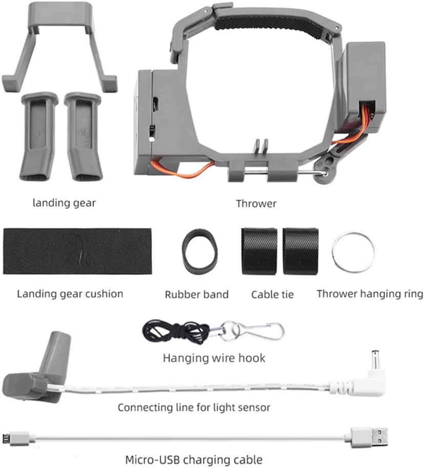 1. Il sistema Thrower Airdrop è adatto per i droni Mavic Pro. 2. può essere spedito a distanza per la pubblicità, lanciare esche di pesce, gettare regali, consegnare i pasti, fornire fedi nuziali, ecc. 3. Ricarica USB, sgancio rapido e controllo One Touch tramite telecomando. 4. leggero e sicuro, nessun carico aggiuntivo sul drone e nessun danno, facile da installare e rimuovere. 5. supporto montato in basso, non influisce sull'elica e sui sensori!