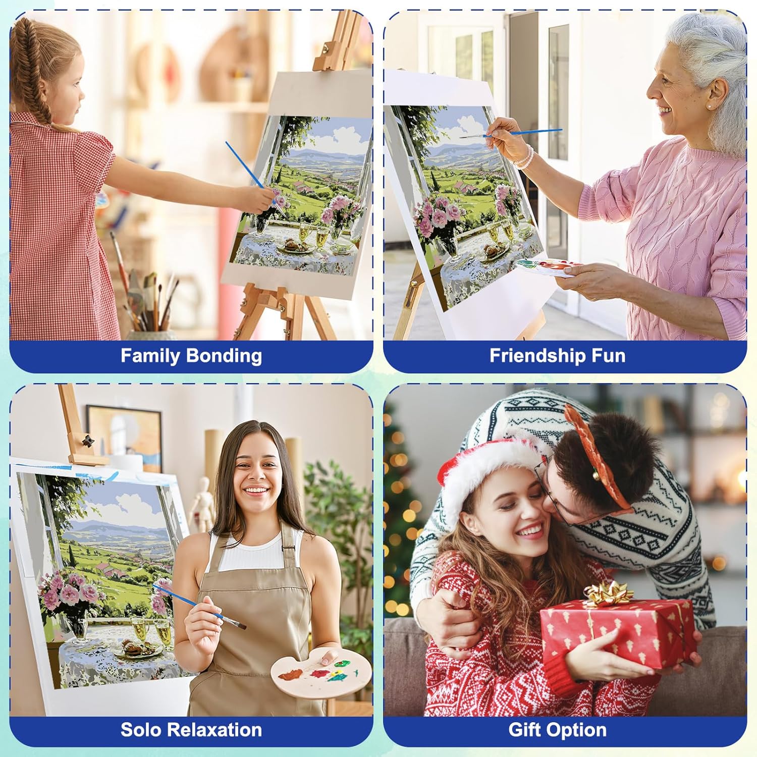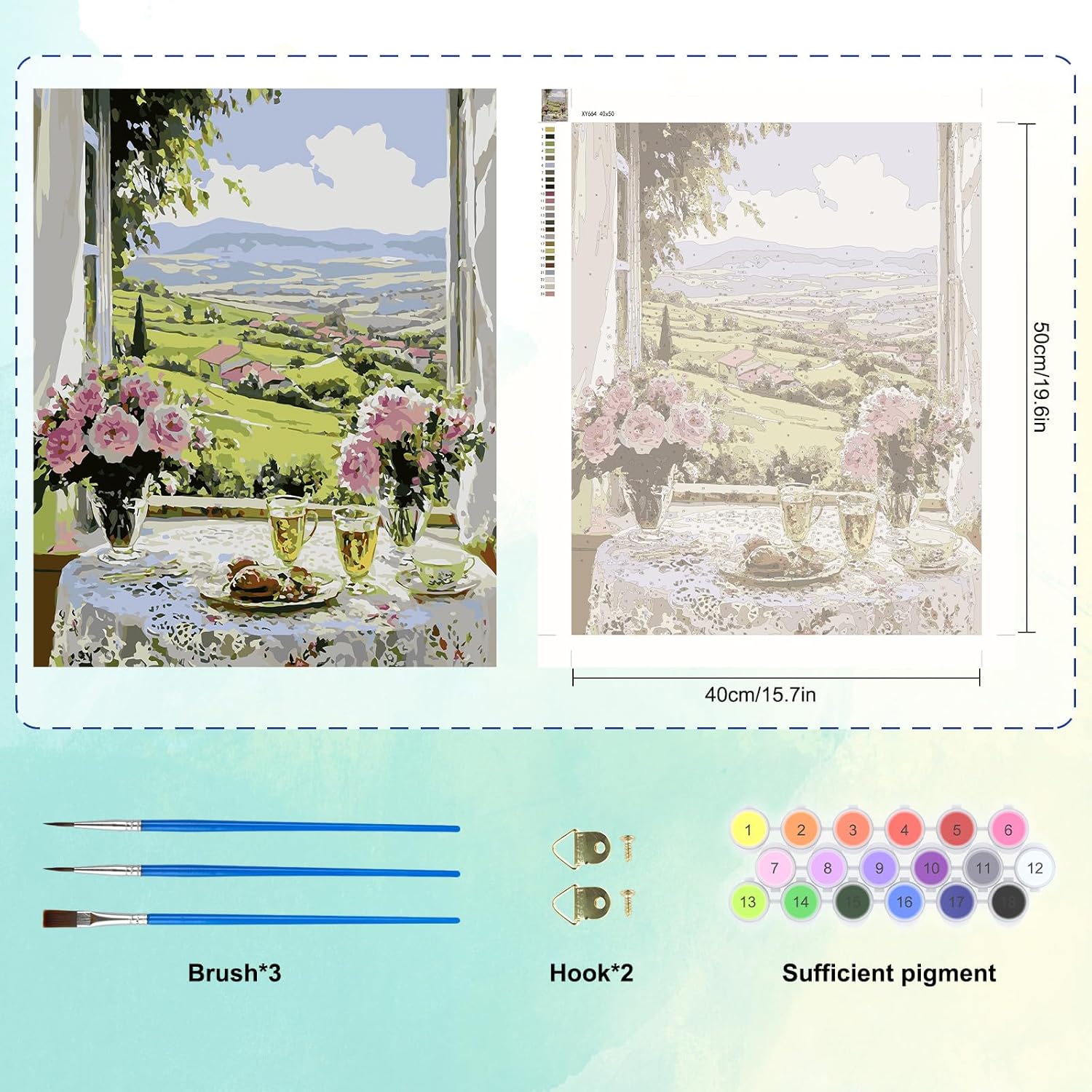 Ideale per i principianti e per godersi il tempo libero. Questo kit di pittura con i numeri è perfetto per i principianti adulti senza esperienza di pittura e fornisce istruzioni facili da seguire. Dipinto a olio con numeri completi con sezioni numerate intuitive. Godetevi una rilassante arteterapia mentre create preziose opere d'arte. Quindi chiunque può diventare un artista eccezionale. Tela di alta qualità e codifica a colori chiara La pittura a colori utilizza tela con riproduzione del colore ad alta definizione con numeri incisi al laser per una chiara visibilità. Il resistente tessuto in tela mantiene la vernice acrilica uniforme e senza colare, garantendo un processo di verniciatura fluido. Divertente e facile da iniziare Non è necessario mescolare i colori quando si dipinge a olio con i numeri. Ogni vernice acrilica è etichettata con numeri e pronta per l'uso. Ogni bicchiere numerato corrisponde alla corrispondente area della tela per dipingere facilmente e senza preoccupazioni. Set completo per principianti Questo set da pittura per adulti include 3 pennelli professionali (piccoli/medi/grandi), 2 ganci da parete, tela e abbastanza vernice. Dipingere con i numeri per adulti è un regalo unico e creativo per amici, familiari, ecc. in occasione di compleanni, festa della mamma, San Valentino, Natale, ecc. La pittura a olio fai-da-te è anche un regalo ideale per gli artigiani hobbisti. Opera d'arte per qualsiasi stanza Una volta completato, il dipinto è perfetto come decorazione per l'ufficio, il soggiorno, la camera da letto e la sala da pranzo e aggiunge un tocco personale a qualsiasi stanza. Allo stesso tempo, il dipinto digitale finito è un regalo unico per genitori, partner, amici e bambini in occasione di compleanni, matrimoni, feste, Natale e altre occasioni.