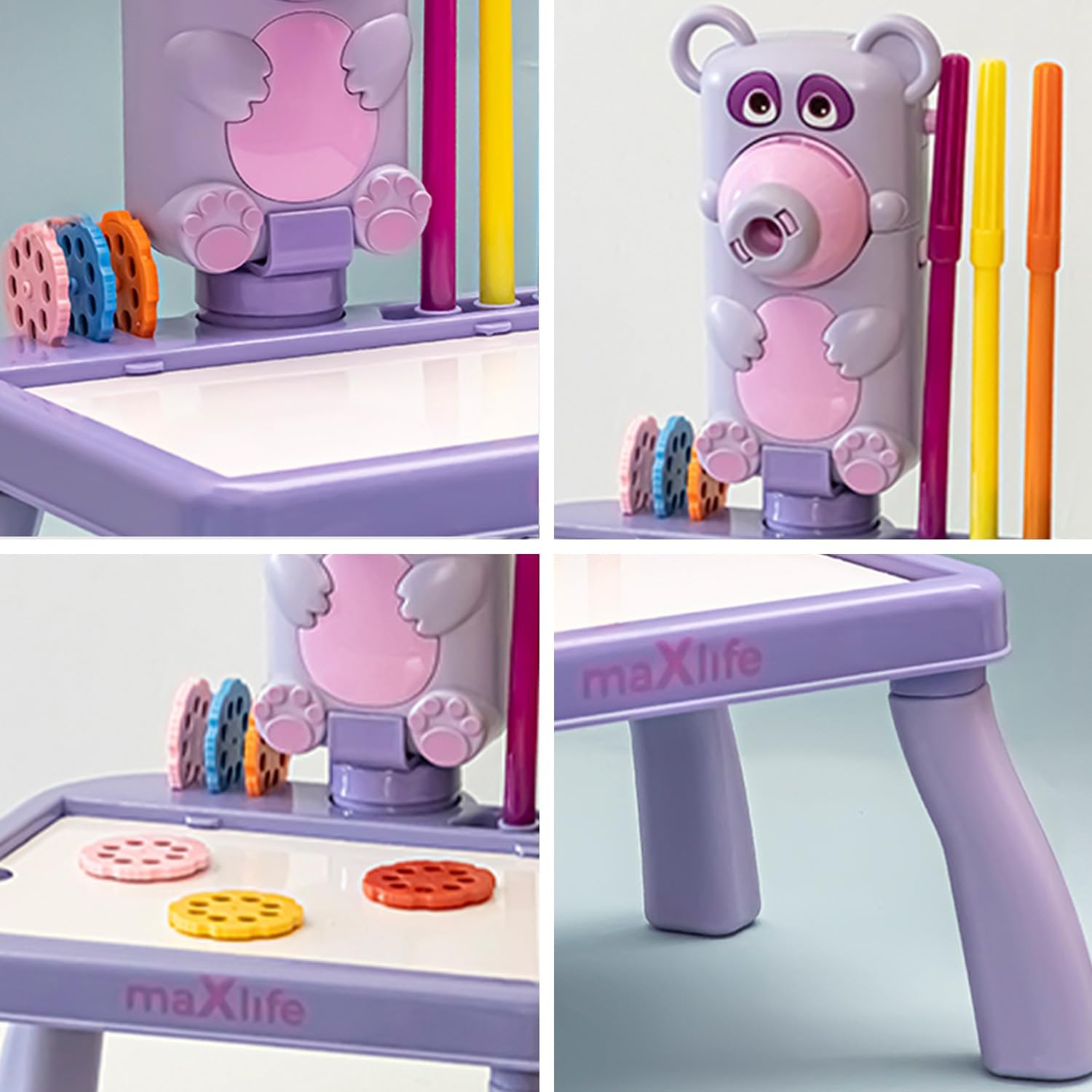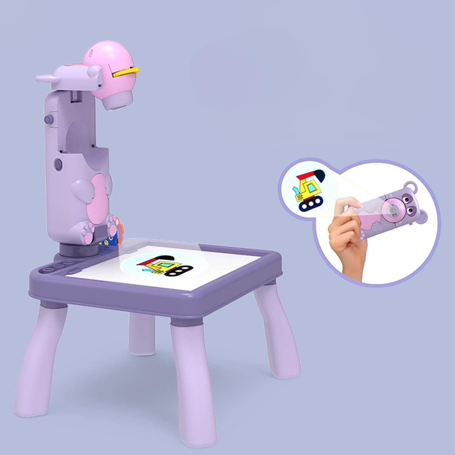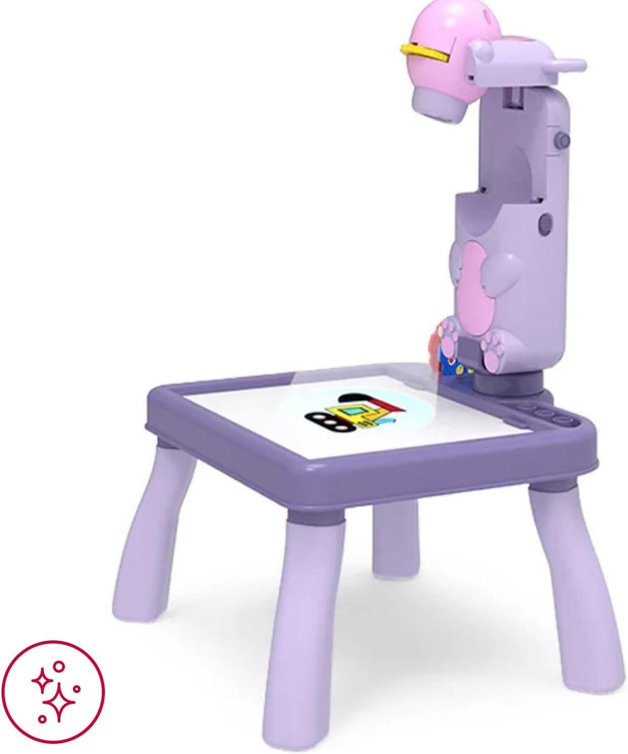 Risveglia la creatività di tuo figlio con il proiettore con tavolo da disegno per bambini! Perfetto per i giochi dai 3 anni, favorisce lo sviluppo. Questa lavagna magica con proiettore supporta lo sviluppo delle capacità motorie attraverso il disegno e la pittura precisa con i pennarelli. Con questo proiettore da disegno ogni bambino può facilmente dare vita alle proprie idee su carta. Il Tavolo da Disegno Magico con Proiettore è il regalo ideale per i bambini! Con 6 dischi – 3 con immagini da ricalcare e 3 con foto, per un totale di 48 immagini e 12 matite colorate, questo è il proiettore da disegno perfetto per i bambini, offrendo ore creative piene di gioia. Gli scomparti per matite e fogli sui bordi del tavolo mantengono le cose in ordine e facilitano l'organizzazione. Un elemento essenziale per i giocattoli dei bambini. Tavolo da disegno per bambini e proiettore da disegno tutto in uno! Questo giocattolo per bambini ti permette di disegnare direttamente sul tavolo da disegno magico o su carta. I bambini possono facilmente impostare diverse diapositive e passare da un disegno all'altro. Perfetto come regalo di compleanno per bambini o semplicemente come regalo per una ragazza e un ragazzo per ogni occasione. Questo tavolo da disegno per bambini con proiettore è facile da usare, ha una regolazione della messa a fuoco e il tablet è facile da pulire. Un braccio del proiettore regolabile ti consente di personalizzare l'impostazione per il tuo piccolo artista. Il tavolo da gioco offre tutto ciò di cui i piccoli artisti hanno bisogno: tavolo da disegno per bambini, 48 immagini stimolanti, matite colorate e un libro con modelli. Ogni diapositiva è una nuova avventura che ti aiuta a imparare e a sviluppare la tua immaginazione. Le diapositive contengono immagini come dinosauri, frutti, insetti e molti altri.