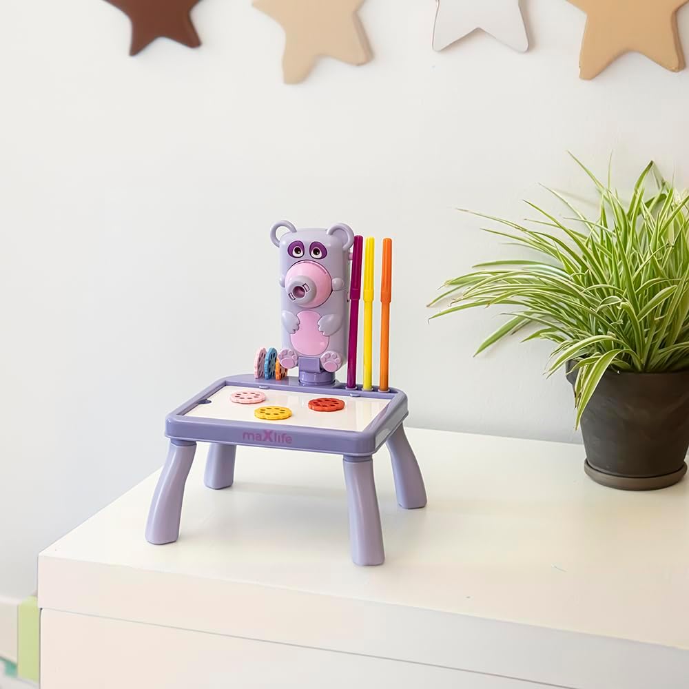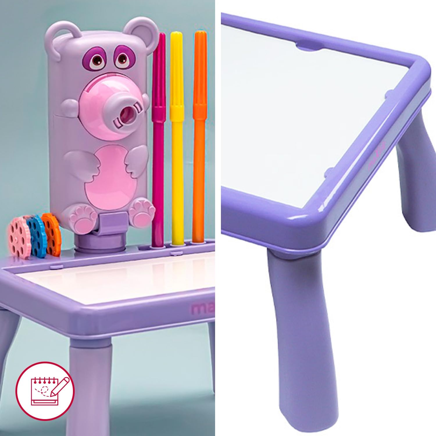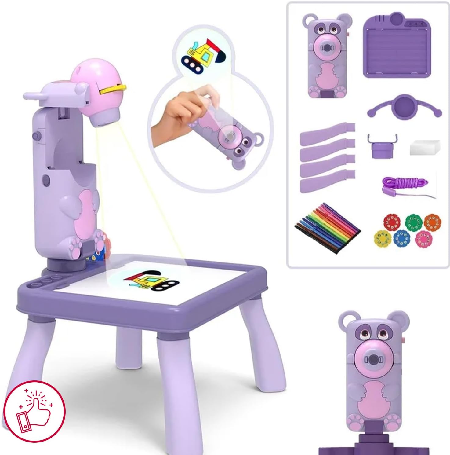 Risveglia la creatività di tuo figlio con il proiettore con tavolo da disegno per bambini! Perfetto per i giochi dai 3 anni, favorisce lo sviluppo. Questa lavagna magica con proiettore supporta lo sviluppo delle capacità motorie attraverso il disegno e la pittura precisa con i pennarelli. Con questo proiettore da disegno ogni bambino può facilmente dare vita alle proprie idee su carta. Il Tavolo da Disegno Magico con Proiettore è il regalo ideale per i bambini! Con 6 dischi – 3 con immagini da ricalcare e 3 con foto, per un totale di 48 immagini e 12 matite colorate, questo è il proiettore da disegno perfetto per i bambini, offrendo ore creative piene di gioia. Gli scomparti per matite e fogli sui bordi del tavolo mantengono le cose in ordine e facilitano l'organizzazione. Un elemento essenziale per i giocattoli dei bambini. Tavolo da disegno per bambini e proiettore da disegno tutto in uno! Questo giocattolo per bambini ti permette di disegnare direttamente sul tavolo da disegno magico o su carta. I bambini possono facilmente impostare diverse diapositive e passare da un disegno all'altro. Perfetto come regalo di compleanno per bambini o semplicemente come regalo per una ragazza e un ragazzo per ogni occasione. Questo tavolo da disegno per bambini con proiettore è facile da usare, ha una regolazione della messa a fuoco e il tablet è facile da pulire. Un braccio del proiettore regolabile ti consente di personalizzare l'impostazione per il tuo piccolo artista. Il tavolo da gioco offre tutto ciò di cui i piccoli artisti hanno bisogno: tavolo da disegno per bambini, 48 immagini stimolanti, matite colorate e un libro con modelli. Ogni diapositiva è una nuova avventura che ti aiuta a imparare e a sviluppare la tua immaginazione. Le diapositive contengono immagini come dinosauri, frutti, insetti e molti altri.