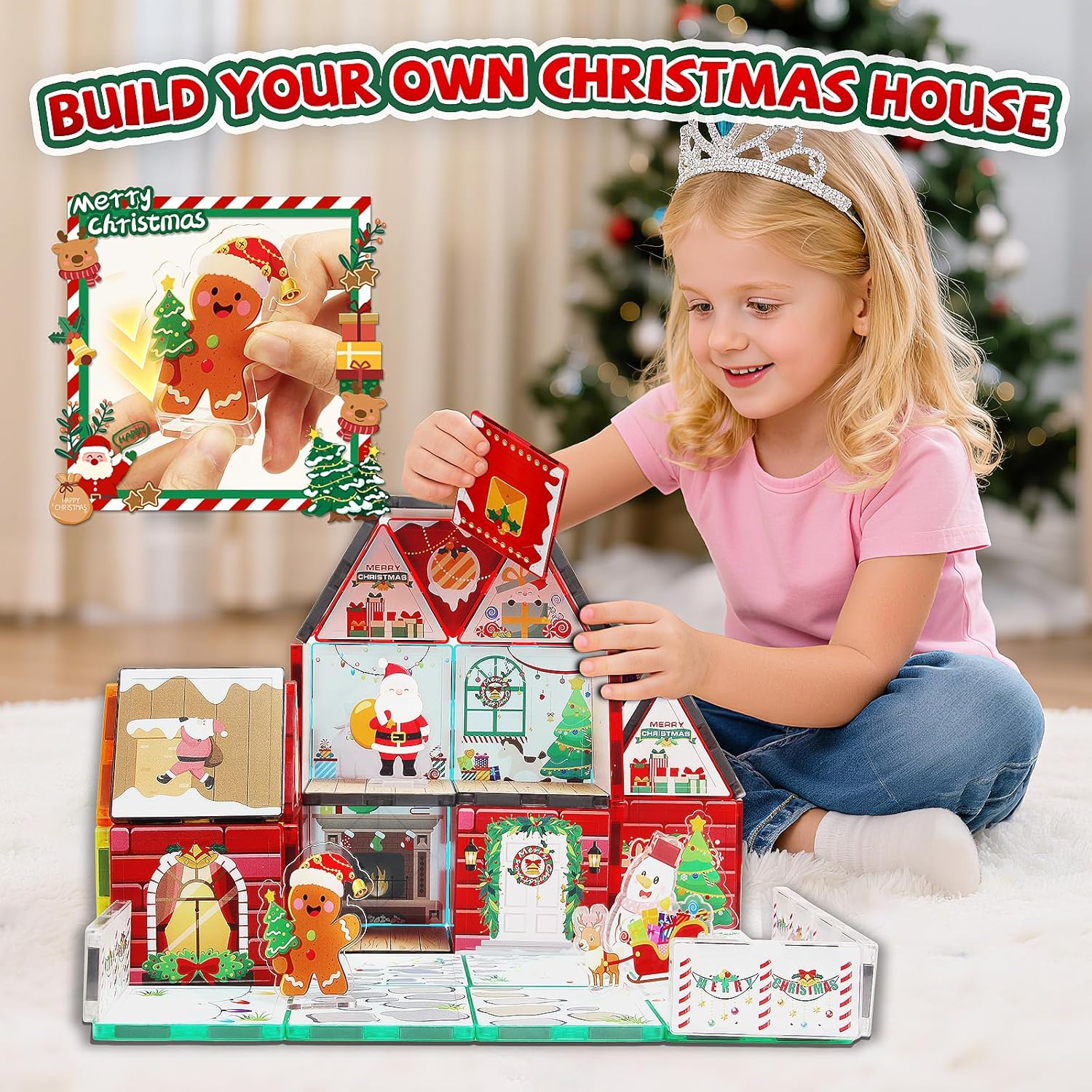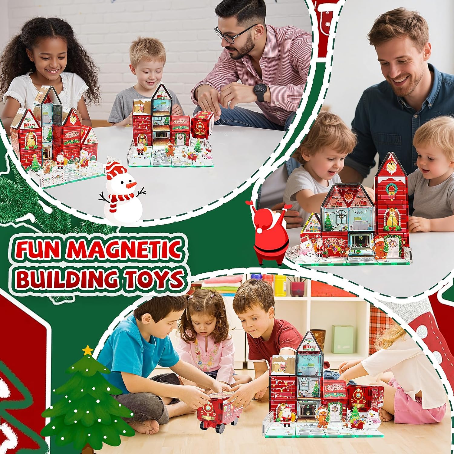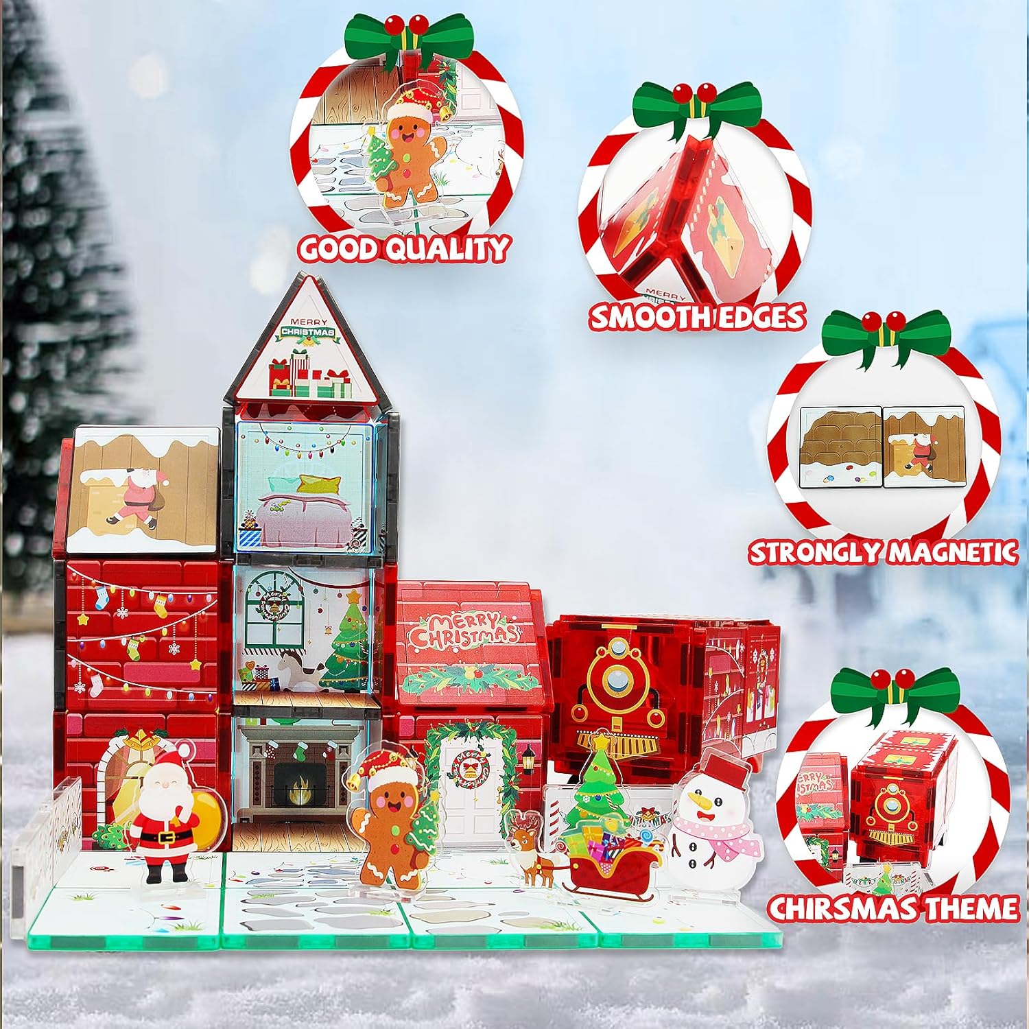MAYAPHILOS 60 pezzi mattoncini magnetici da costruzione con 1 auto, Babbo Natale, rotolo, pupazzo di neve, mattoncini magnetici, mattoncini magnetici, mattoncini montessori, giocattoli per bambini e ragazze di 3+ anni