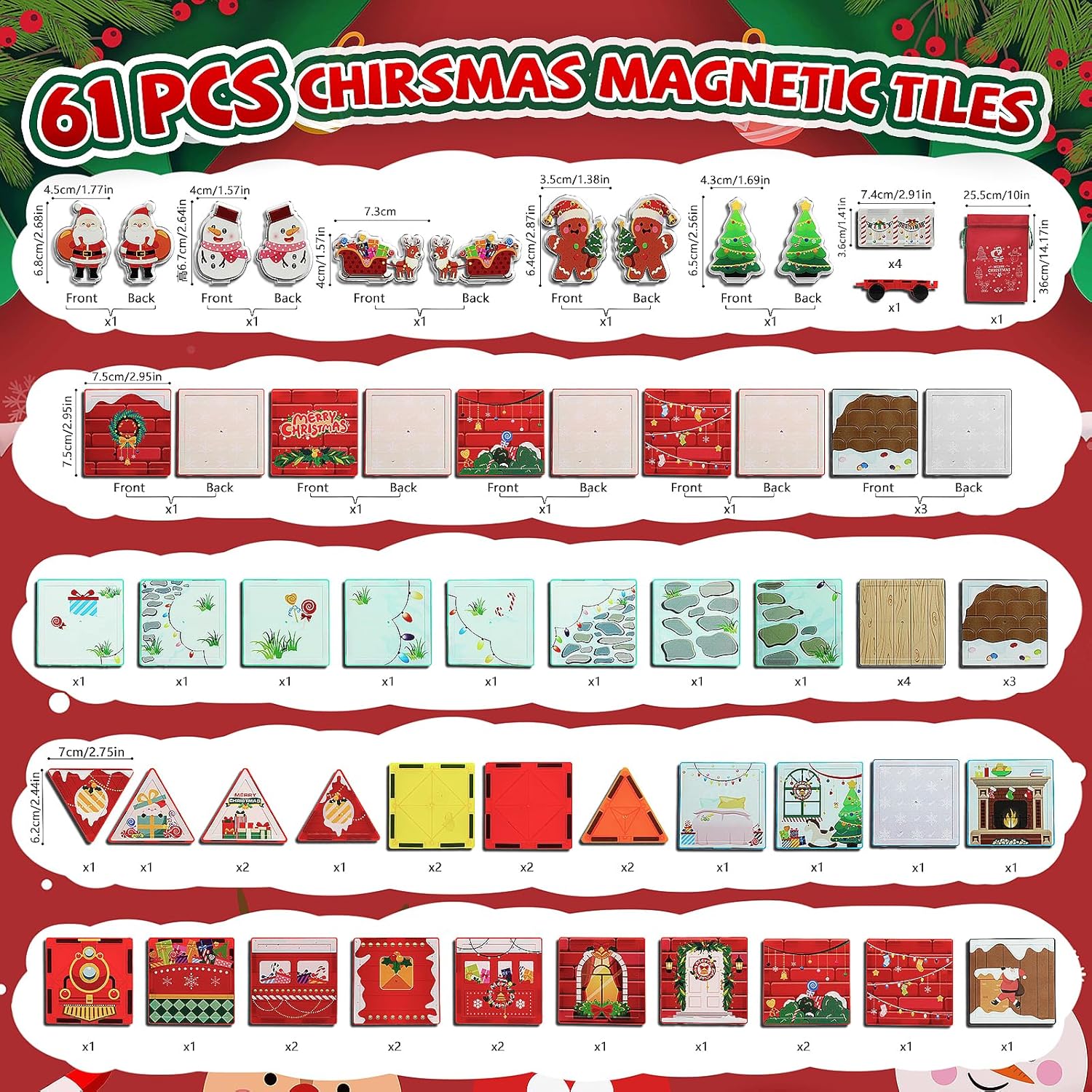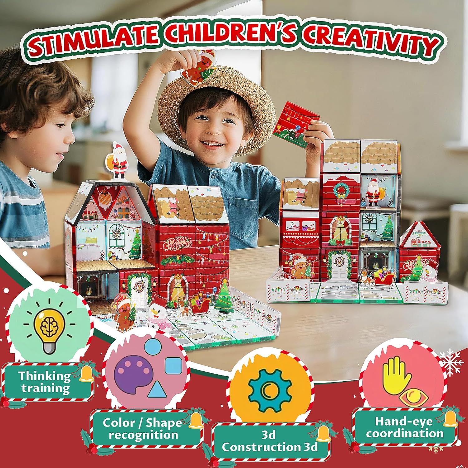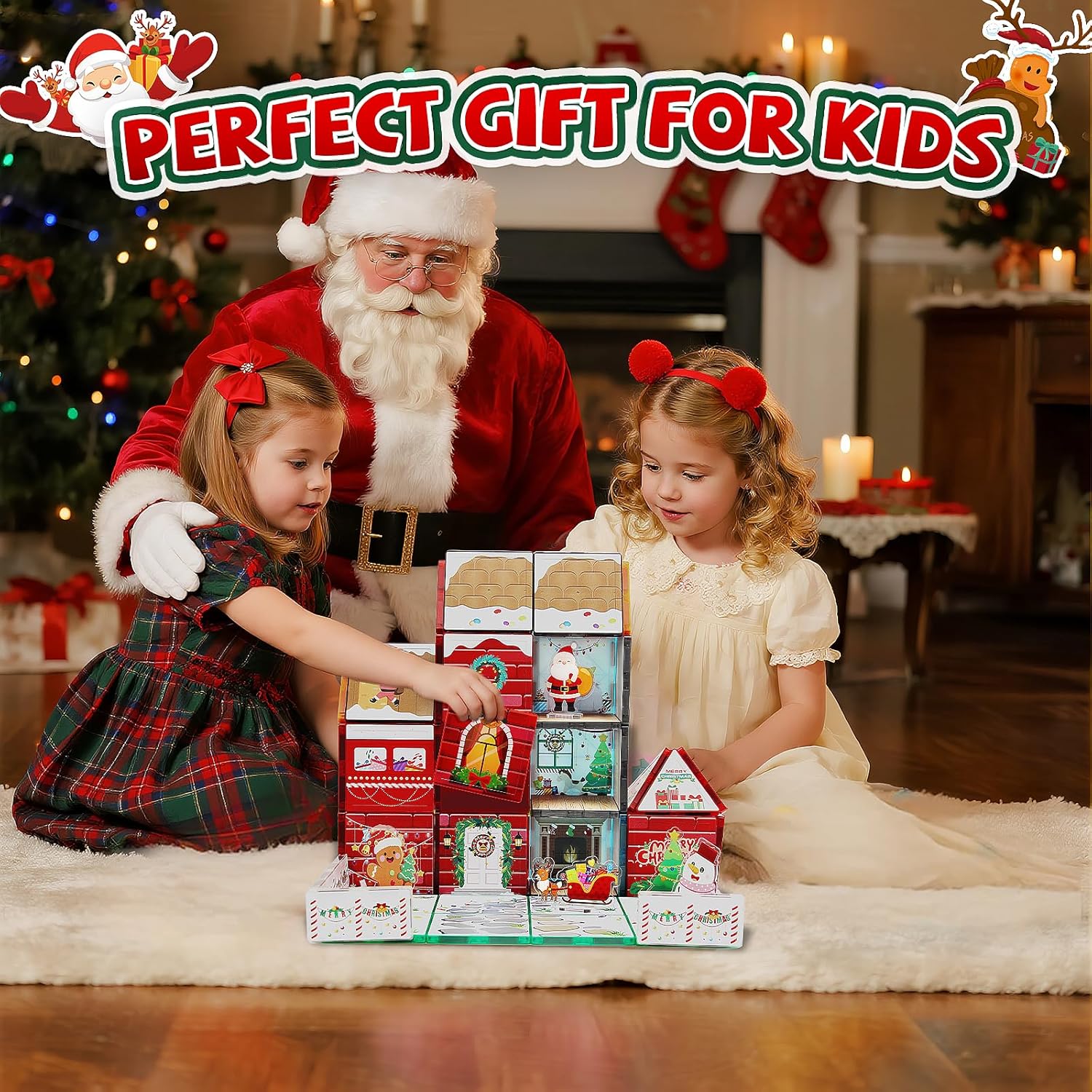 MAYAPHILOS 60 pezzi mattoncini magnetici da costruzione con 1 auto, Babbo Natale, rotolo, pupazzo di neve, mattoncini magnetici, mattoncini magnetici, mattoncini montessori, giocattoli per bambini e ragazze di 3+ anni