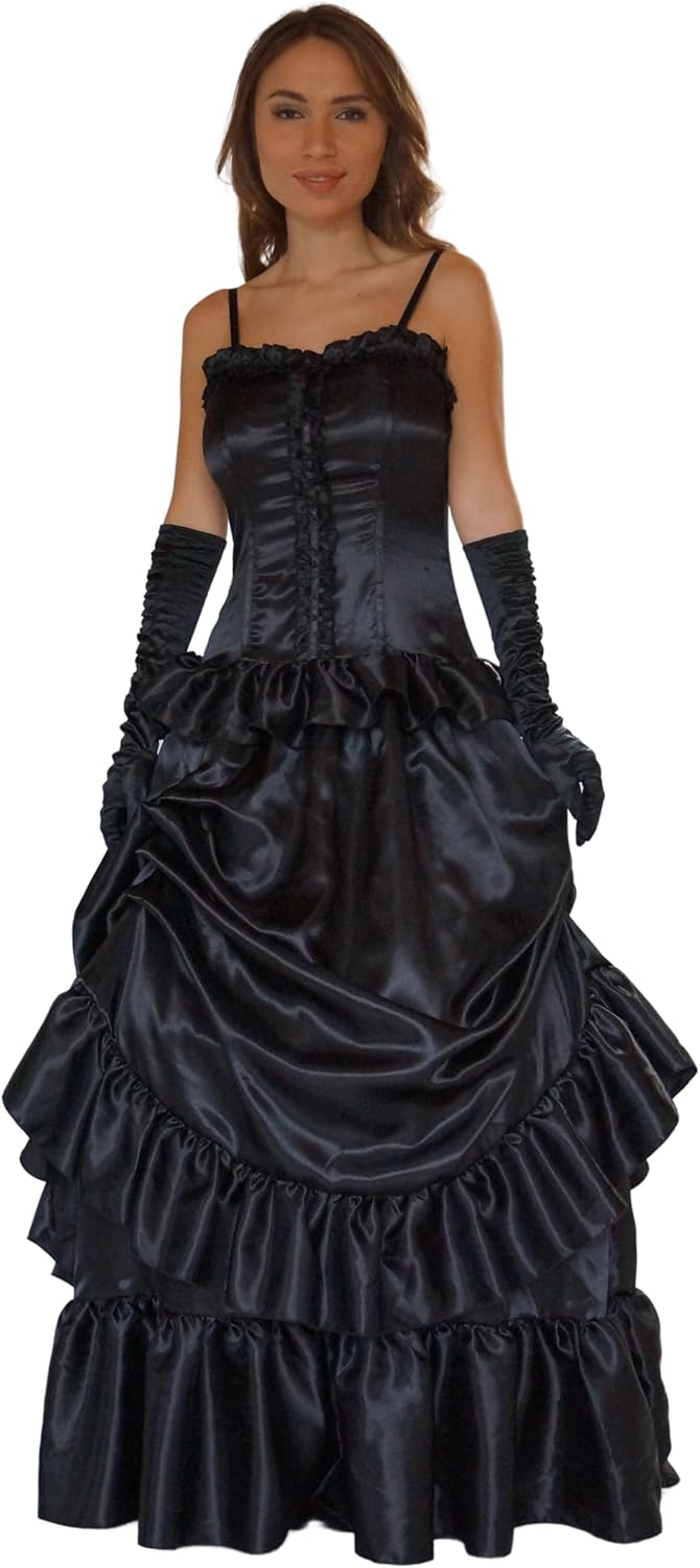 Adorabile costume da vampiro per una ruggente notte di ballo di ballo da vampiro. Il raso nero profondo e scintillante con tante volant, volant asimmetrici e una gonna in crinolina incorporata fa risaltare i tempi passati. Guanti neri eleganti. Spalline regolabili, cerniera laterale e materiale elastico sul retro garantiscono un comfort ottimale e una vestibilità comoda. Perfetto per feste a tema Carnevale e Halloween. Costume da vampiro composto da un vestito con guanti. La taglia S corrisponde approssimativamente alla taglia 36/38. La taglia M corrisponde circa alla taglia 38/40 La taglia L corrisponde circa alla taglia 40/42. La taglia XL corrisponde circa alla taglia 42/44 cm. 100% poliestere.