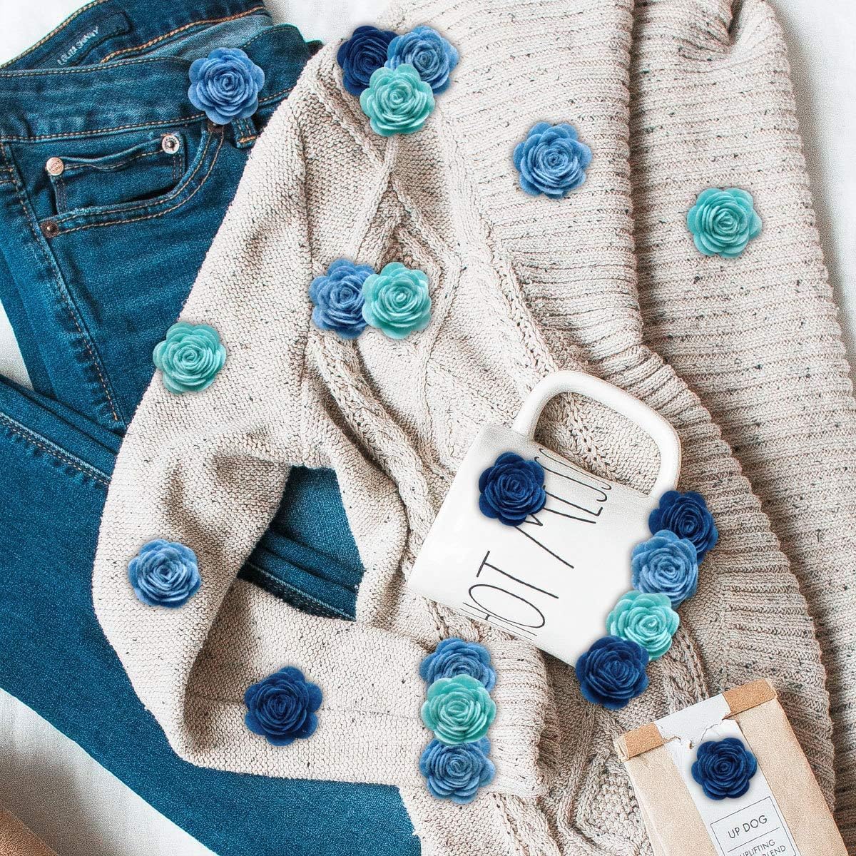 Ogni fiore ha un diametro di circa 3 cm Realizzato in tessuto non tessuto. Il tessuto in feltro non sbiadisce facilmente e molto resistente, può essere utilizzato a lungo Un set di 24 fiori e 30 adesivi. Contiene tre colori, otto ciascuno Adatto a qualsiasi tipo di artigianato, puoi usarli per fare inviti di compleanno, biglietti, confezioni regalo, scrapbooking, mini ghirlande, cornici per foto e album, poster o qualsiasi altro luogo che desideri decorare È un ottimo accessorio fai da te per regali e decorazioni, usa la tua creatività per creare qualcosa di unico