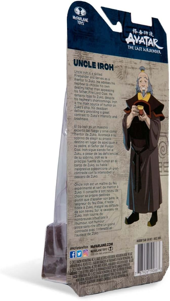 Avatar the Last Airbender figurina: Questo giocattolo McFarlane Uncle Iroh action figure è incredibilmente dettagliato e basato sulla serie Nickleodeon. La figura è descritta nel suo abbigliamento militare Firebender e viene fornita con un pezzo schiarente. Dimensioni da 12,7 cm: la statuetta Avatar the Last Airbender è la dimensione di pinta divertente perfetta da esporre in qualsiasi stanza, armadio o armadio di tua scelta. Con un'articolazione ultra, puoi giocare o semplicemente posare la statuetta come preferisci. Zio Iroh: Un abile pompiere e serve come mentore di Zuko. Consiglia a suo nipote di scegliere il proprio destino piuttosto che placare suo padre, Fire Lord Ozai. Avatar TLAB tema: La figura è presentata in un Avatar the Last Airbender a tema blister. Se lo tieni nella scatola come collezionista, avrai comunque l'atmosfera di Manga. Compatibile con tutte le figure collezionistiche: sblocca l'azione della serie Avatar the Last Airbender a partire dalla statuetta dello zio Iroh. Raccogli tutte le figurine McFarlane Avatar TLAB!
