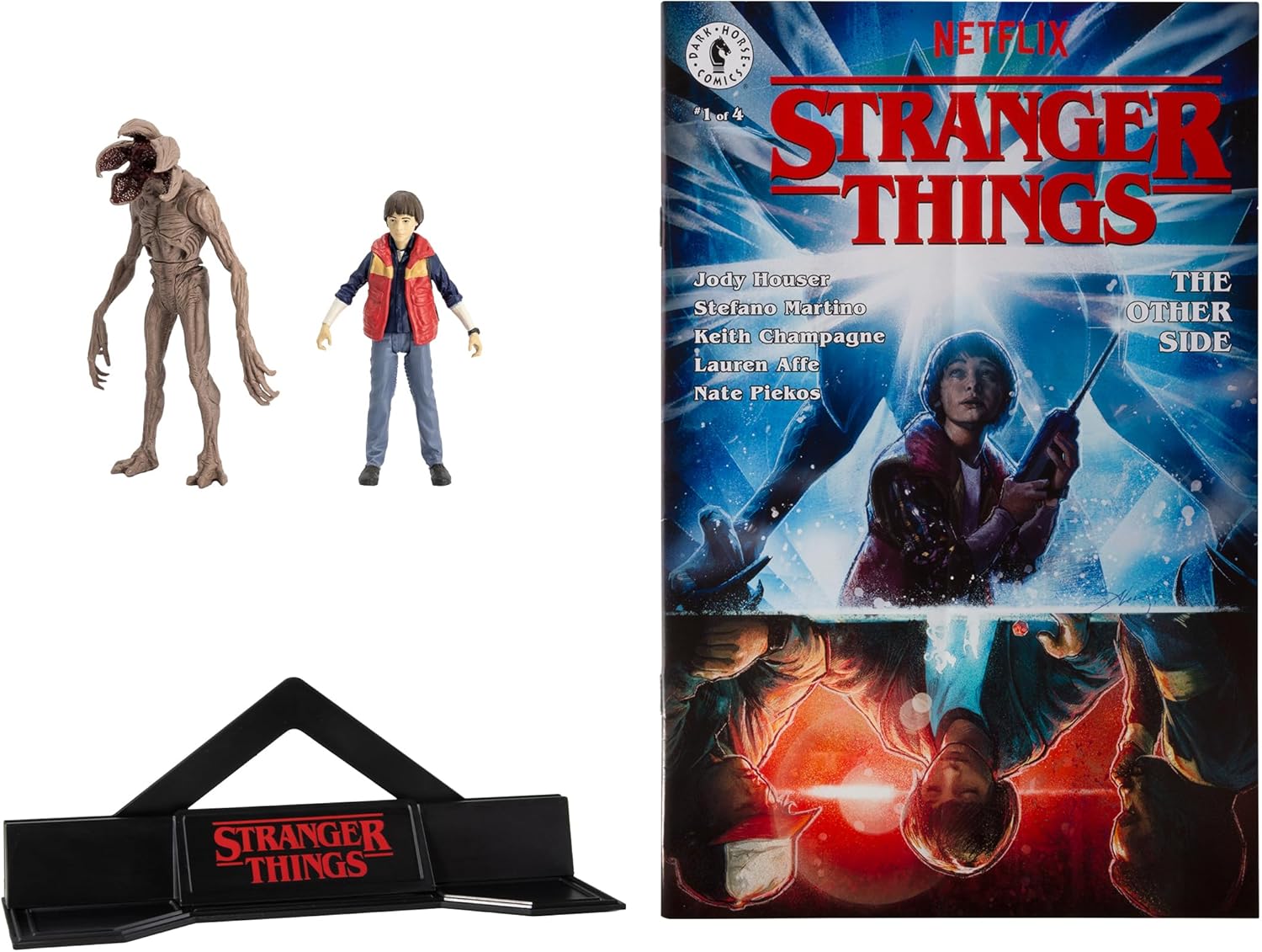 Action figure tascabili: scopri il mondo di Stranger Things con action figure tascabili in scala da 3 pollici con Will Byers e il minaccioso Demogorgone. Perfetto per appassionati e collezionisti. Mysterious Connection of Will Byers: Rivivi gli eventi del 6 novembre 1983, quando Will Byers scomparve nella dimensione alternativa nota come UPSIDE DOWN. Il suo salvataggio lo lasciò con una misteriosa connessione con il regno alternativo. Demogorgon's Havoc: The Demogorgon, proveniente da una dimensione alternativa, semina il caos non solo nel SOTTO GIÙ ma anche nella città di Hawkins, Indiana. Ricrea scene emozionanti con questa creatura iconica. Espositore a fumetto: confezionato in un blister a conchiglia, questa confezione da 2 include una ristampa solo inglese di STRANGER THINGS #1 e un espositore per fumetti. Immergiti nell'universo di Stranger Things. Figure di perforatori per pagine da collezione: Will Byers e Demogorgon si basano sul loro aspetto come descritto in STRANGER THINGS di DARK HORSE COMICS. Raccogli tutte le figure McFarlane Toys Page Punchers per un set completo.