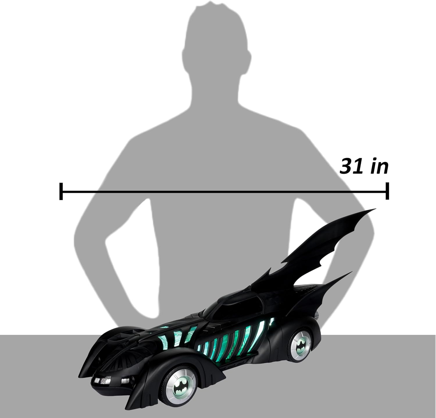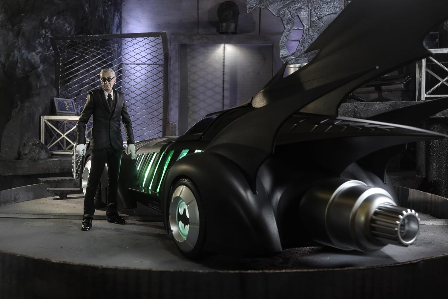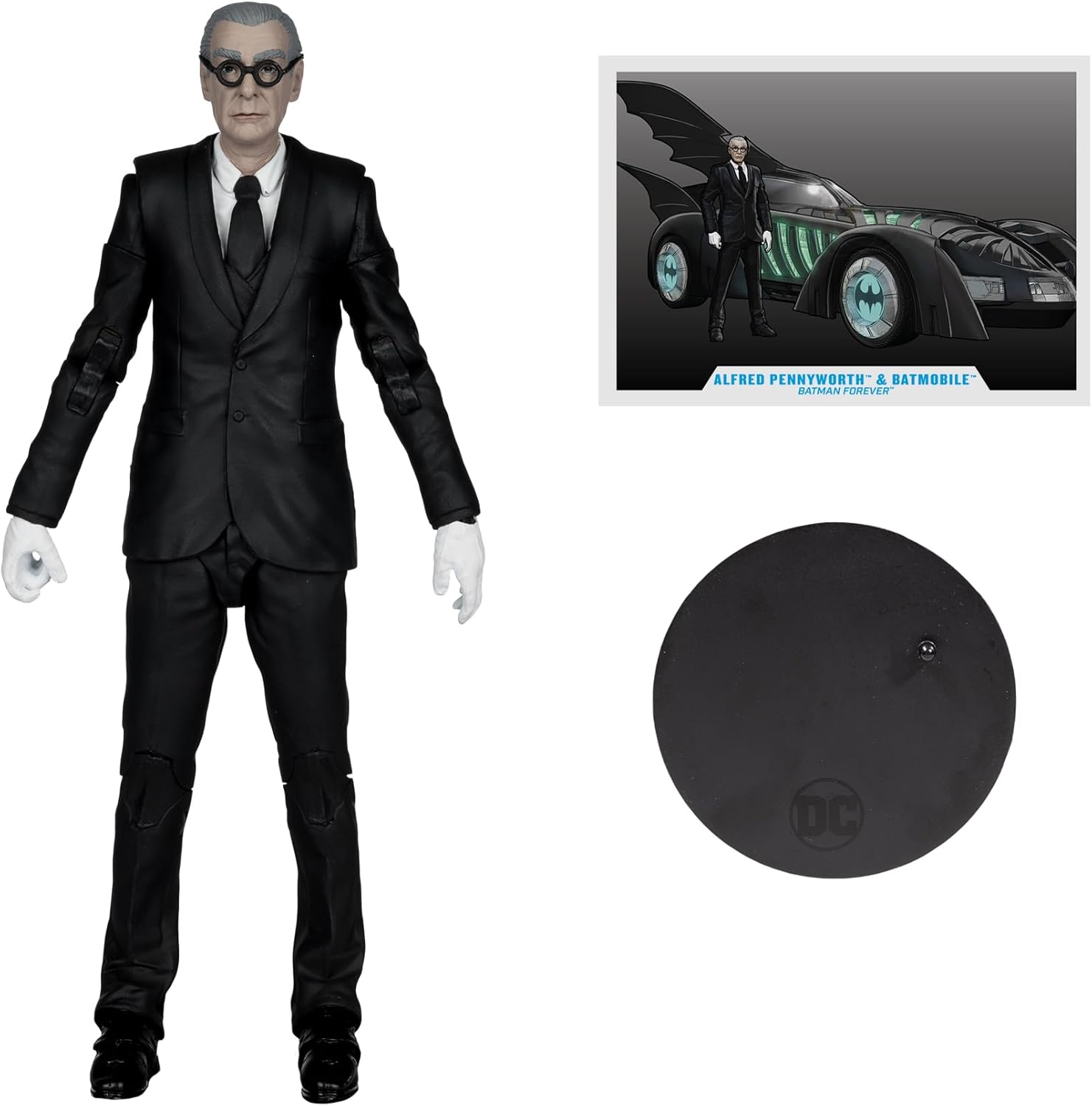 BATMOBILE e ALFRED PENNYWORTH nel film teatrale BATMAN FOREVER Include veicolo BATMOBILE e action figure ALFRED PENNYWORTH, base espositiva, carta d'arte da collezione Alfred progettato con Ultra Articulation con un massimo di 22 parti mobili per una gamma completa di posa e gioco Batmobile dispone di luci e suoni. Il veicolo richiede 3 batterie AAA non incluse. * Figura Batman venduta separatamente