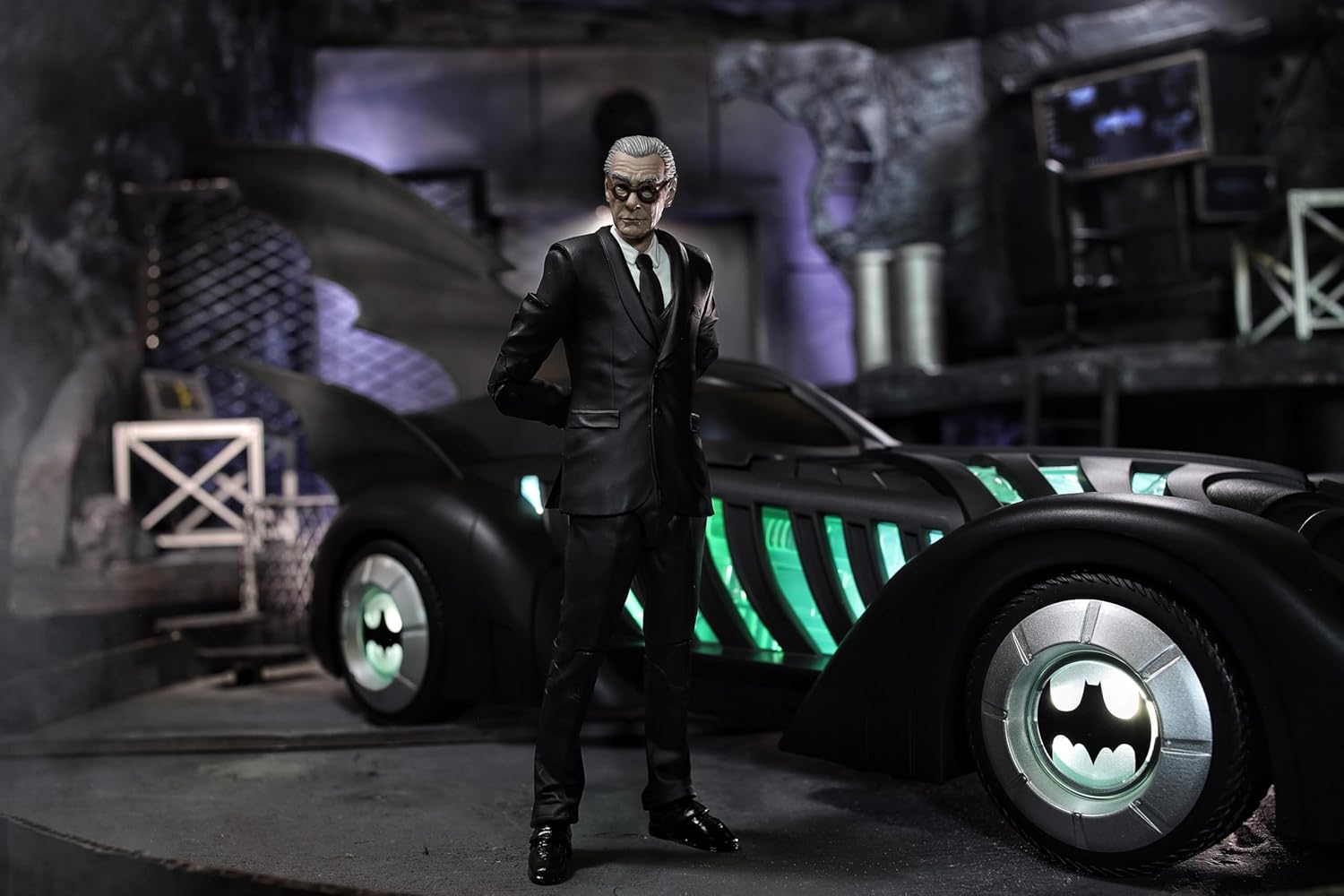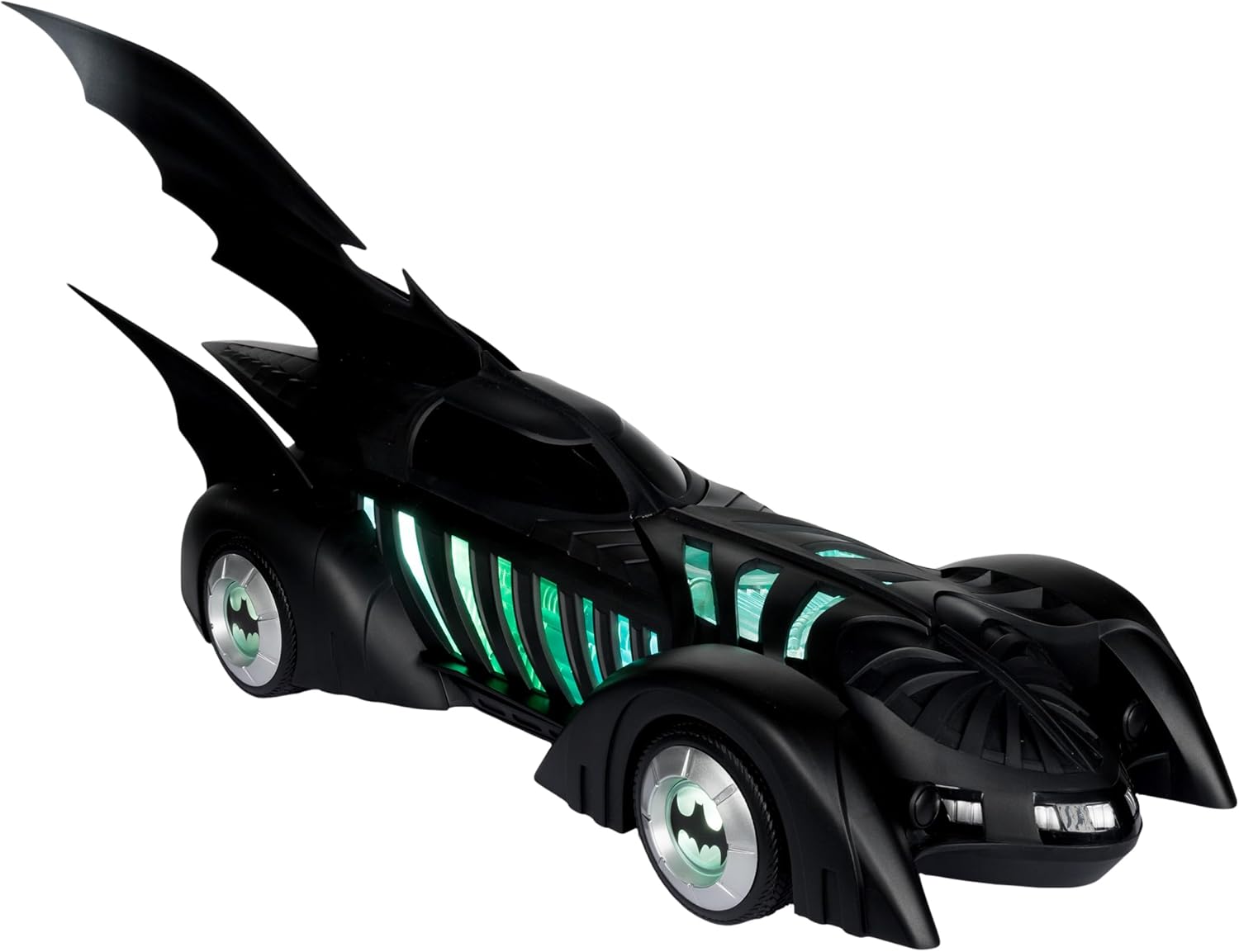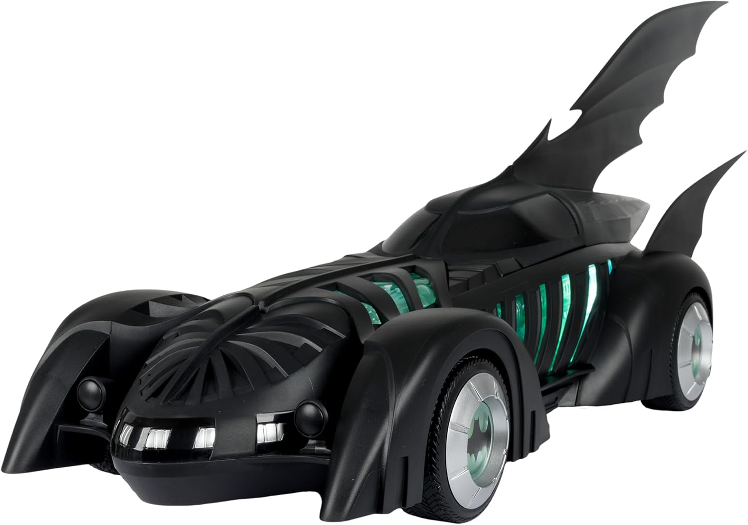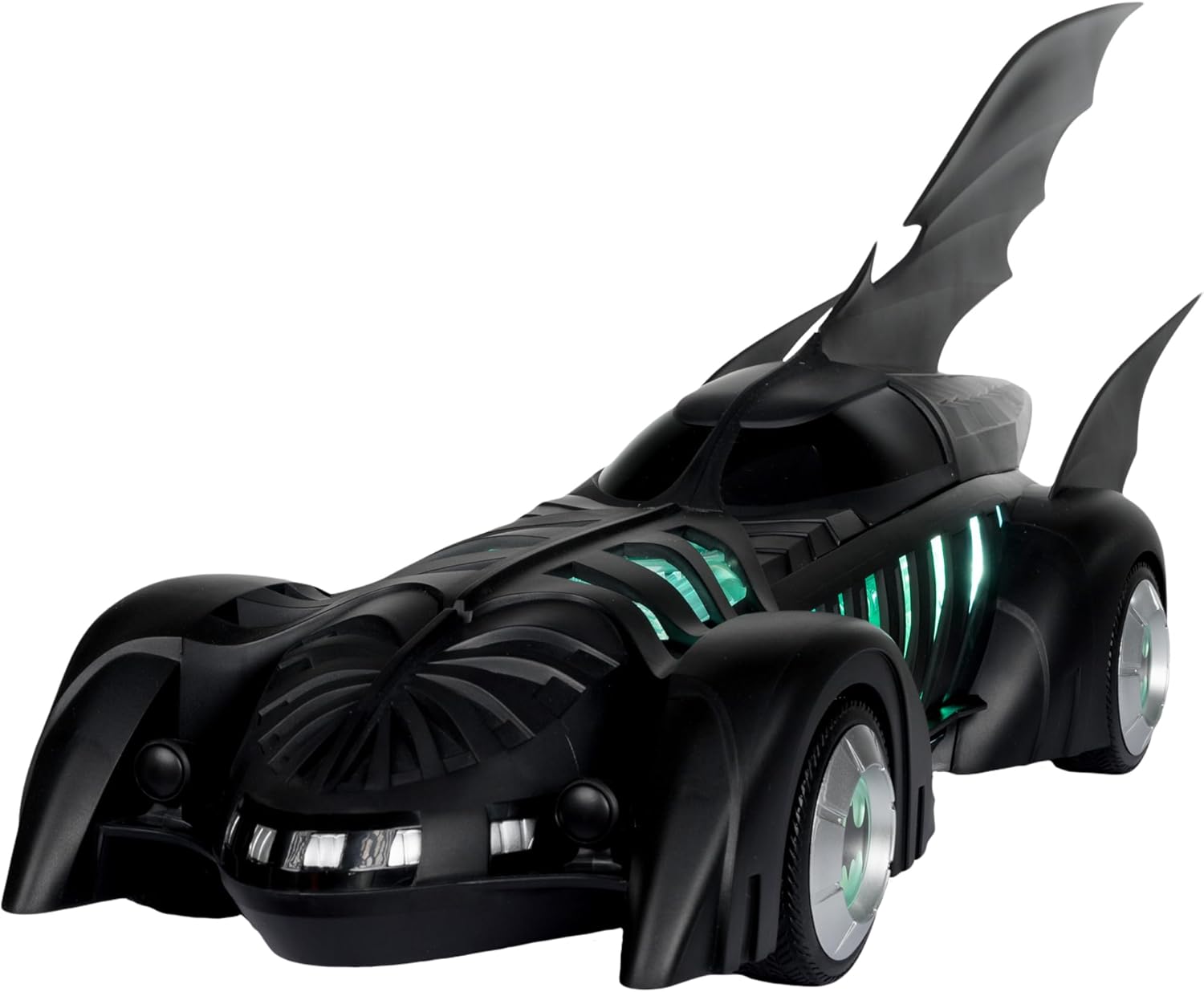 BATMOBILE e ALFRED PENNYWORTH nel film teatrale BATMAN FOREVER Include veicolo BATMOBILE e action figure ALFRED PENNYWORTH, base espositiva, carta d'arte da collezione Alfred progettato con Ultra Articulation con un massimo di 22 parti mobili per una gamma completa di posa e gioco Batmobile dispone di luci e suoni. Il veicolo richiede 3 batterie AAA non incluse. * Figura Batman venduta separatamente
