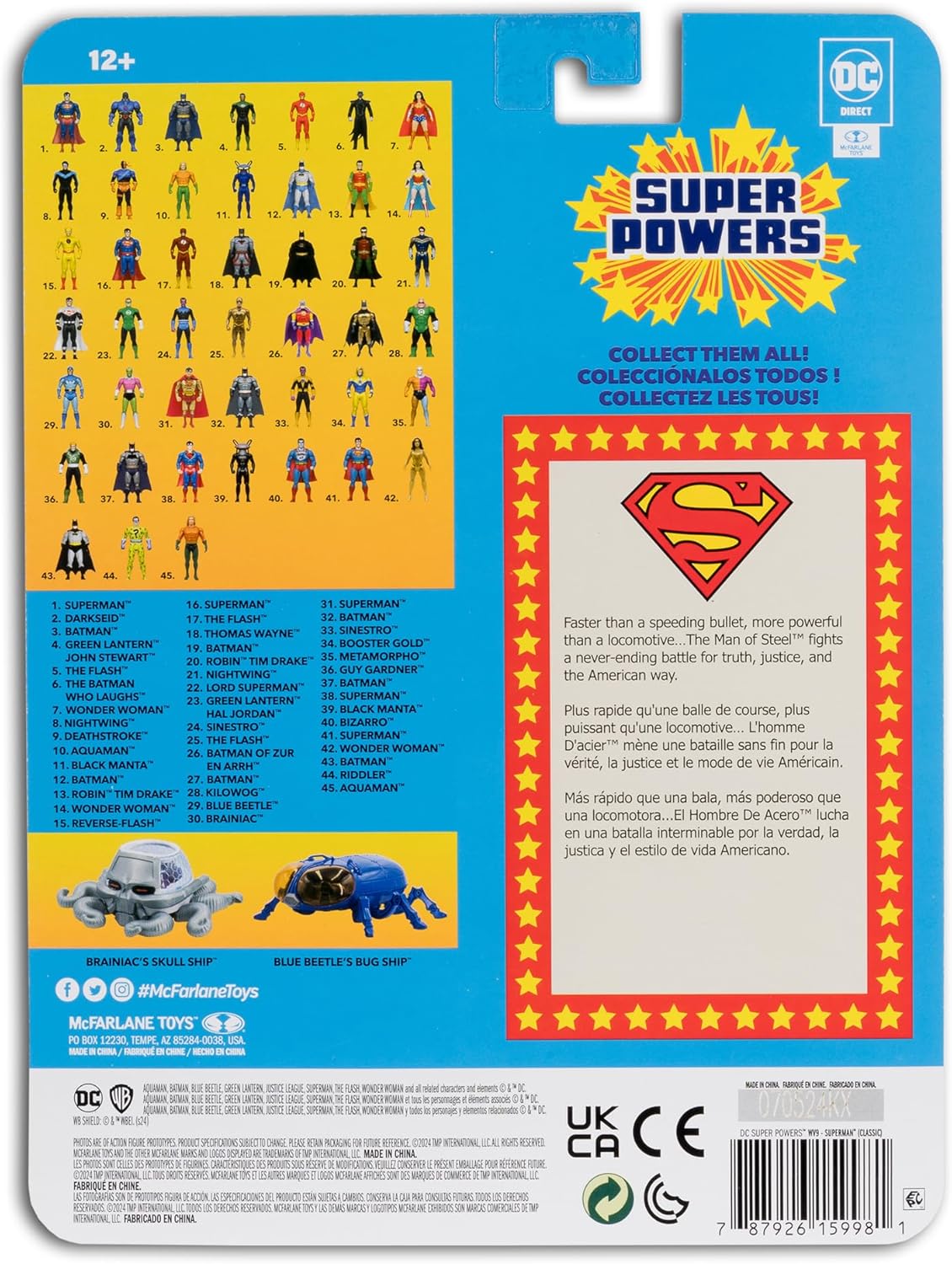 Classica figura DC SUPER POWERS in scala 4.5″ con articolazione Continuando l'eredità dell'amata linea DC SUPER POWERS arriva un nuovissimo lotto dei tuoi eroi e cattivi preferiti SUPERMAN è presentato in confezione blister a tema DC SUPER POWERS Colleziona tutte le figure e i veicoli McFARLANE TOYS DC SUPER POWERS