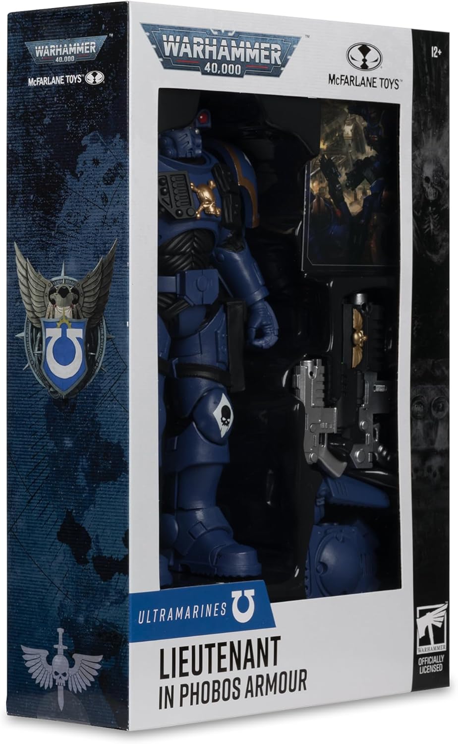 Figura in scala da 7 pollici incredibilmente dettagliata basata sul franchise Warhammer 40,000 Progettato con Ultra Articolazione con fino a 22 parti mobili per una gamma completa di posa e gioco Include pistola bullone, coltello da combattimento, carabina bullone, power pack, carta d'arte da collezione e base da esposizione Figura è in vetrina in Warhammer 40,000 a tema finestra confezione scatola Raccogli tutti i personaggi McFarlane Toys Warhammer 40.000
