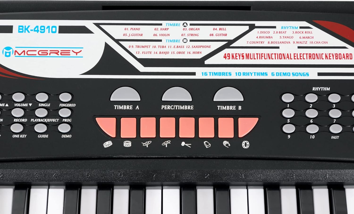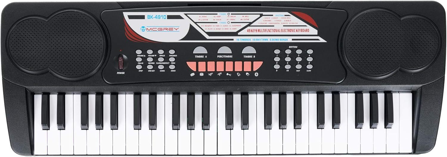 IDEALE PER PRINCIPIANTI - Il BK-4910 è un keyboard per principianti, in particolare per bambini, che offre funzioni complete, 16 suoni, 10 ritmi, 8 suoni extra di percussione e 6 brani demo! 16 suoni selezionabili: il keyboard per bambini offre 16 timbri diversi, dal pianoforte classico a sax, violino e altri, per un divertimento senza fine. 10 RITMI DI ACCOMPAGNAMENTO - Grazie ai 10 ritmi integrati, soprattutto i principianti trovano subito il groove giusto! Dal disco al bossa nova fino al valzer classico, è offerta una grande varietà che contribuisce a un rapido successo nell’apprendimento! CUFFIE PER BAMBINI - Cuffie cablate over ear per bambini con limitatore di volume a 85 dB che protegge le orecchie dei più piccoli - morbida imbottitura in schiuma nell’archetto INCLUSO MICROFONO PER CANTARE INSIEME - Il set include un microfono. Il keyboard funziona con alimentatore o 6 batterie AA, rendendolo portatile per esibizioni ovunque, anche in giardino!