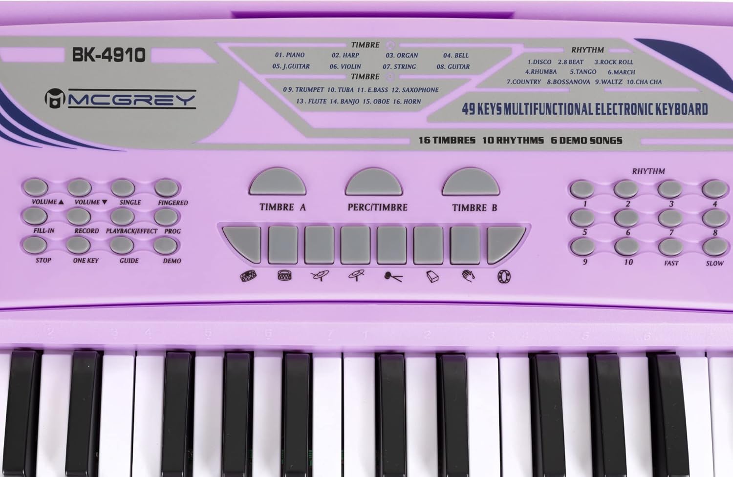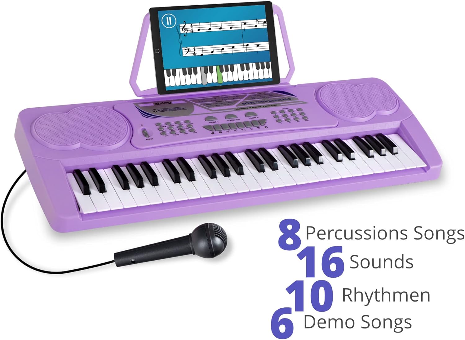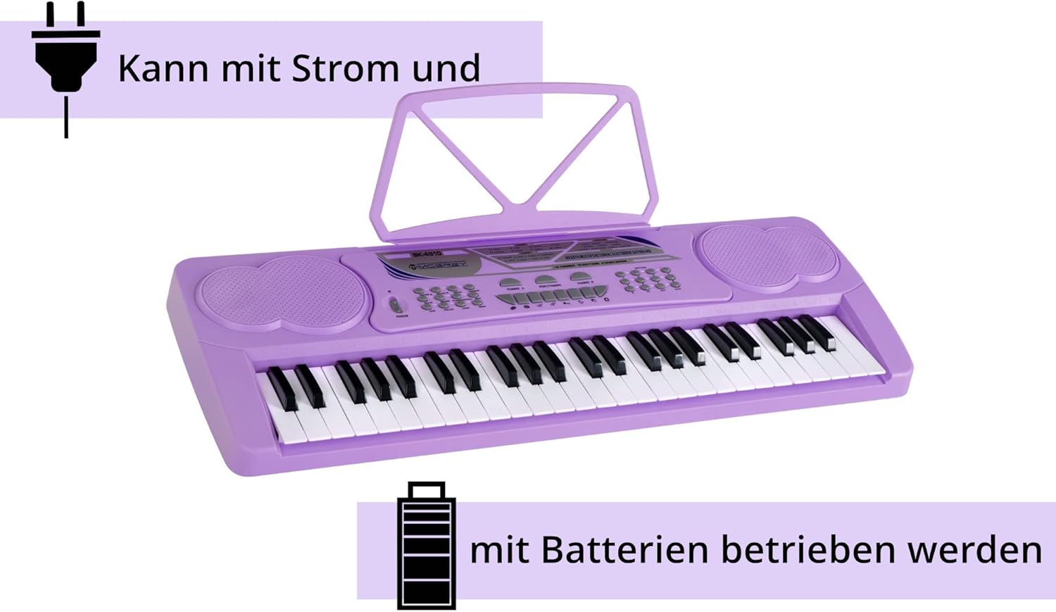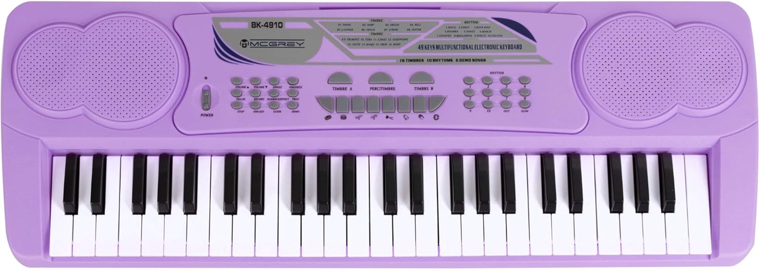 IDEALE PER PRINCIPIANTI - Il BK-4910 è una tastiera per principianti, in particolare per bambini, che offre funzioni complete, 16 suoni, 10 ritmi, 8 suoni extra di percussioni e 6 brani demo! 16 suoni selezionabili: la tastiera per bambini offre timbri vari, dal pianoforte classico a sax, violino e altri, per un divertimento senza fine. 10 ritmi di accompagnamento integrati aiutano i principianti a trovare subito il groove giusto! Da disco a bossa nova e valzer classico, la varietà offerta favorisce un rapido successo nell’apprendimento. CUFFIE PER BAMBINI - Cuffie over ear cablate con limitatore di volume a 85 dB per proteggere le orecchie dei bambini - morbida imbottitura in schiuma nell’archetto INCLUSO MICROFONO PER CANTARE INSIEME - Il set include un microfono. La tastiera funziona con alimentatore incluso o 6 batterie AA, rendendola portatile per esibizioni ovunque, anche in giardino!