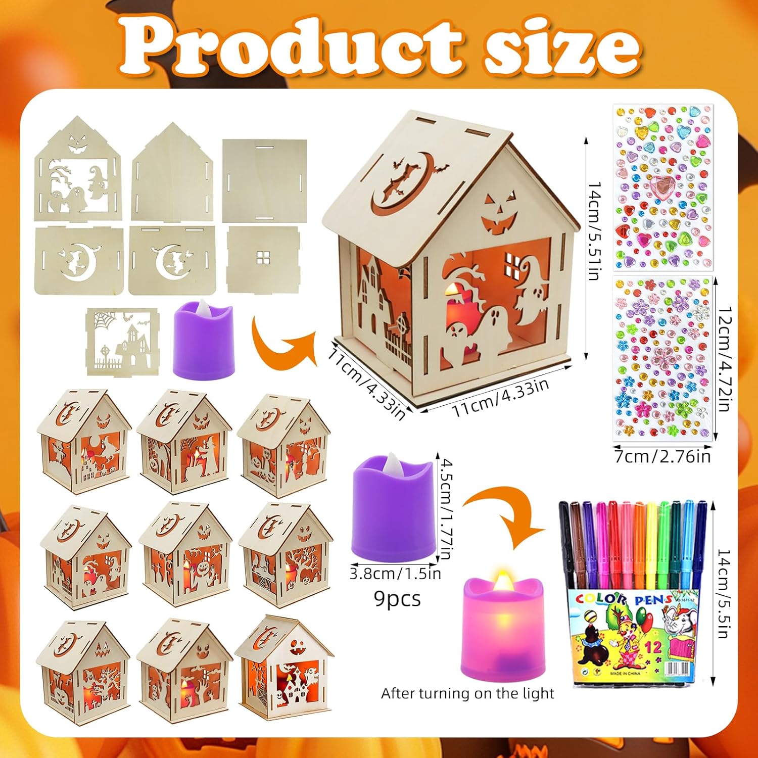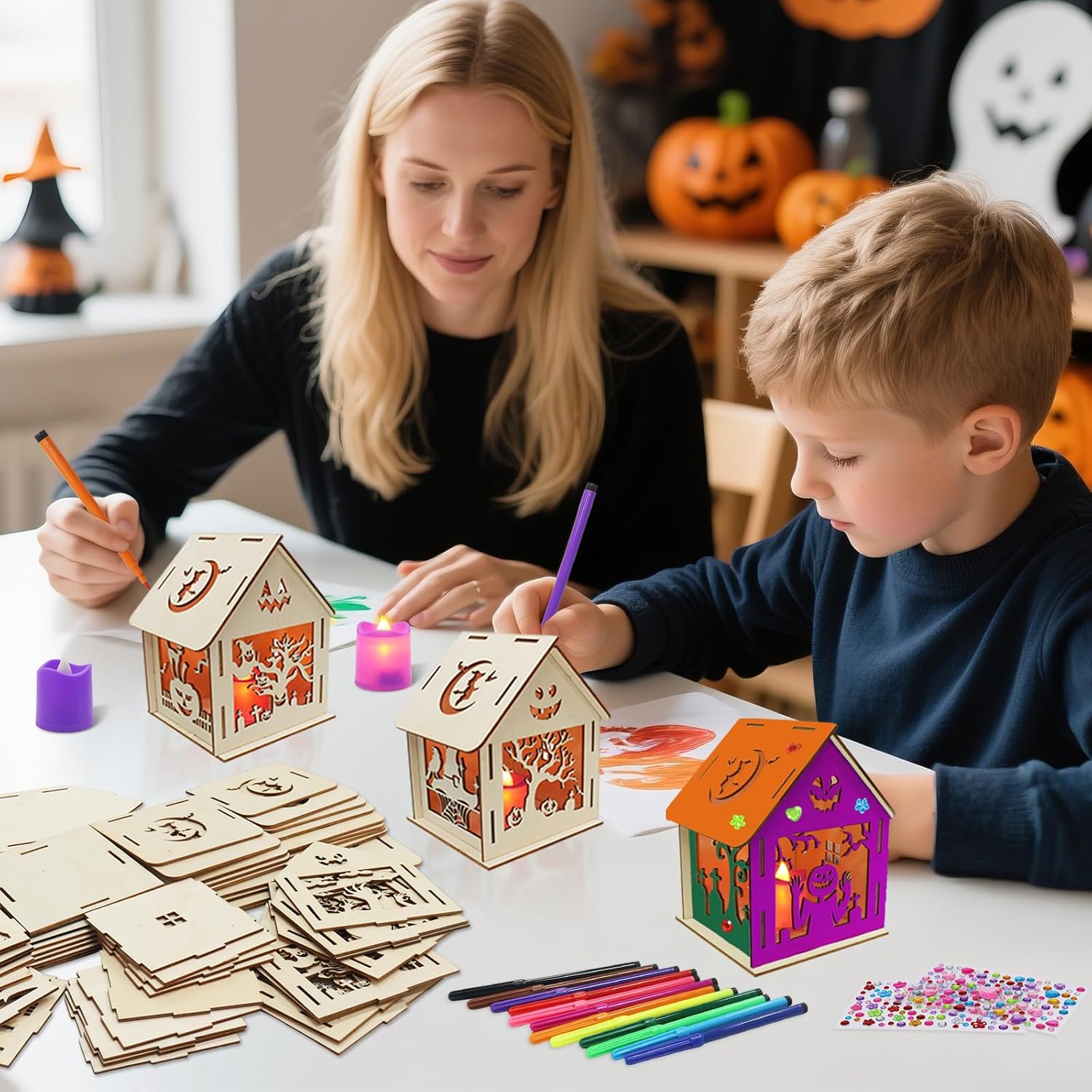 【Set fai da te per la casa di Halloween】 Riceverai 9 casa di Halloween in legno in diversi design (63 pezzi di legno) + 12 matite colorate ad acqua + 9 candele LED + 2 adesivi con diamanti. Crea insieme ai tuoi bambini la tua decorazione personale di Halloween. Alta qualità: il kit per bricolage è realizzato in legno di alta qualità, ogni pezzo di legno è già pre-tagliato e dotato di fessure, quindi non sono necessari attrezzi. È ecologico e resistente, ha bordi lisci che non causano lesioni. (Alimentazione: batteria a bottone) 【Kit fai da te per bambini】 Facile da montare, con pochi gesti si possono creare decorazioni 3D. Le decorazioni di Halloween fatte dai bambini avranno un significato molto speciale in questa serata di Halloween. Gioco da colorare: questo set per la casa di Halloween può essere utilizzato anche come set da colorare per bambini. Scatena la tua immaginazione e dipingi la casa di Halloween, ogni set per bricolage in legno deve avere il suo aspetto unico. Regalo per Halloween: il nostro Halloween per bambini è il regalo ideale per bambini di tutte le età. Che si tratti di un compleanno, Natale o semplicemente come regalo a sorpresa, questo set fai da te per la casa di Halloween farà sicuramente sorridere il viso di ogni bambino.