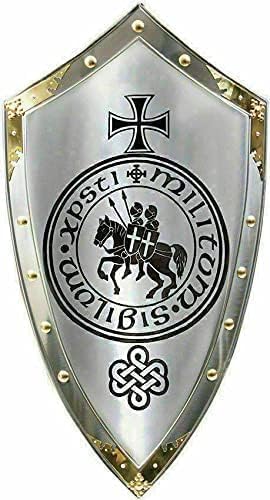 Materiale: costruito in resistente metallo calibro 18 e acciaio, garantendo autenticità e logevita. Peso: Lo scudo pesa circa 2,00 kg. offrendo funzionalità e facilità d'uso. Costruzione robusta: questo scudo è costruito per resistere ai rigori del combattimento, sia sul campo di battaglia che nel bel mezzo di un intenso gioco di ruolo. Dimensioni impressionanti: con un diametro di 61 cm, questo scudo fornisce un'ampia protezione mentre fa una dichiarazione audace, attirando l'attenzione e il rispetto. Versatilità: dotato di due robusti cinturini in pelle, questo scudo è perfetto per giochi di ruolo e come espositore da parete.